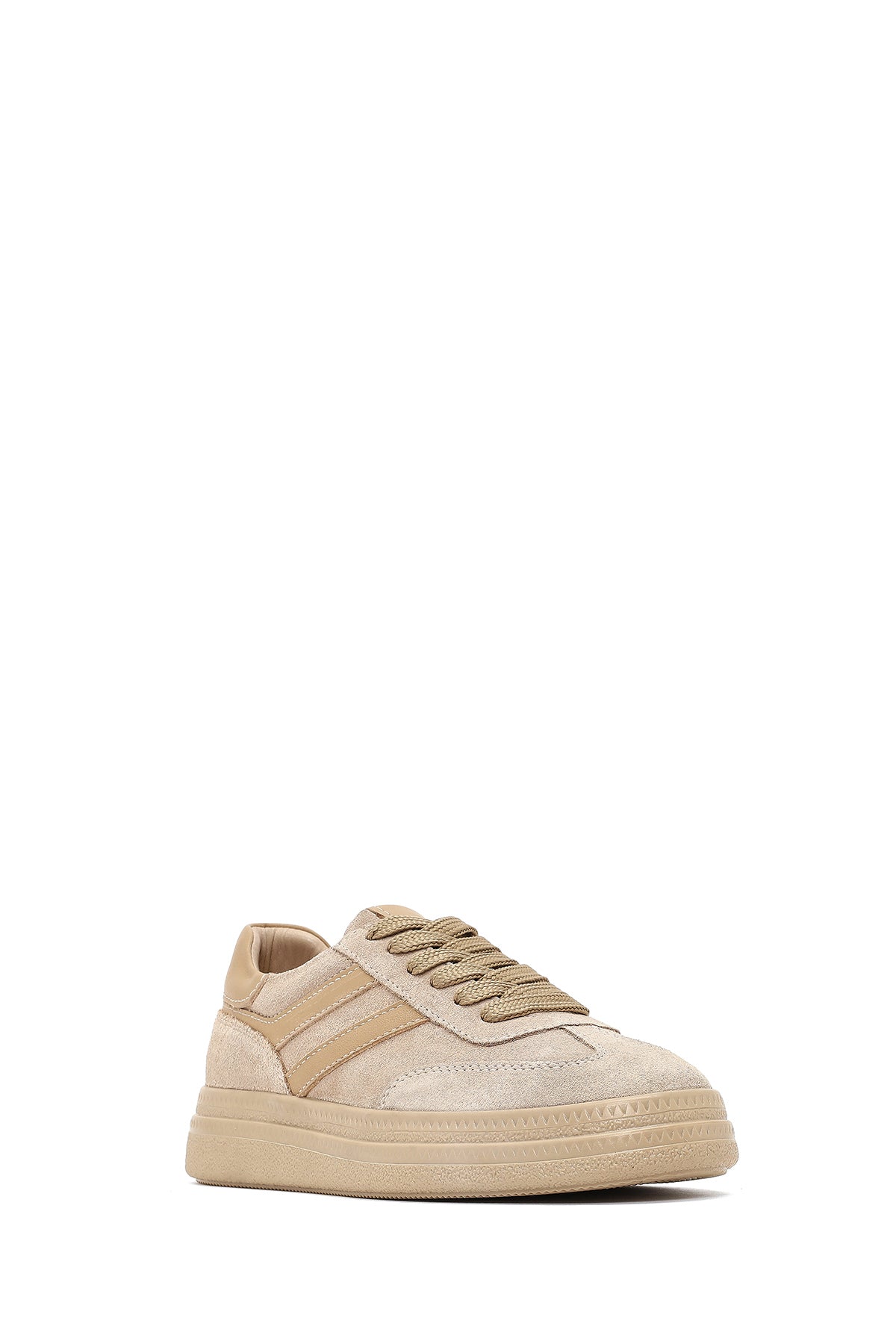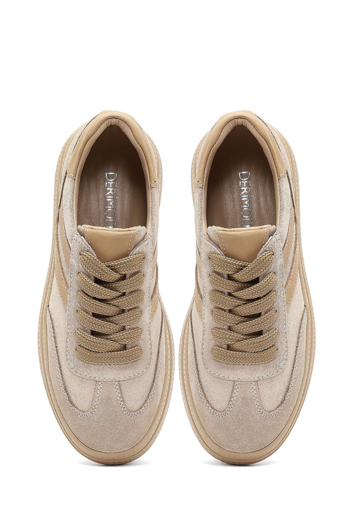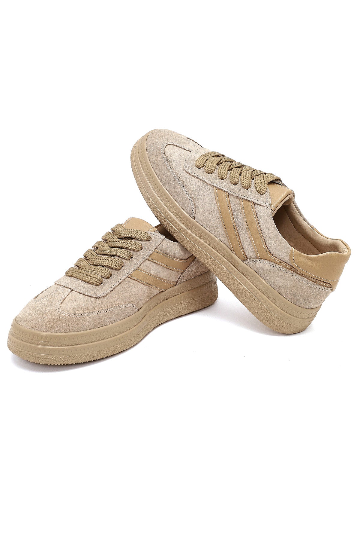 Kadın Bej Bağcıklı Süet Deri Sneaker