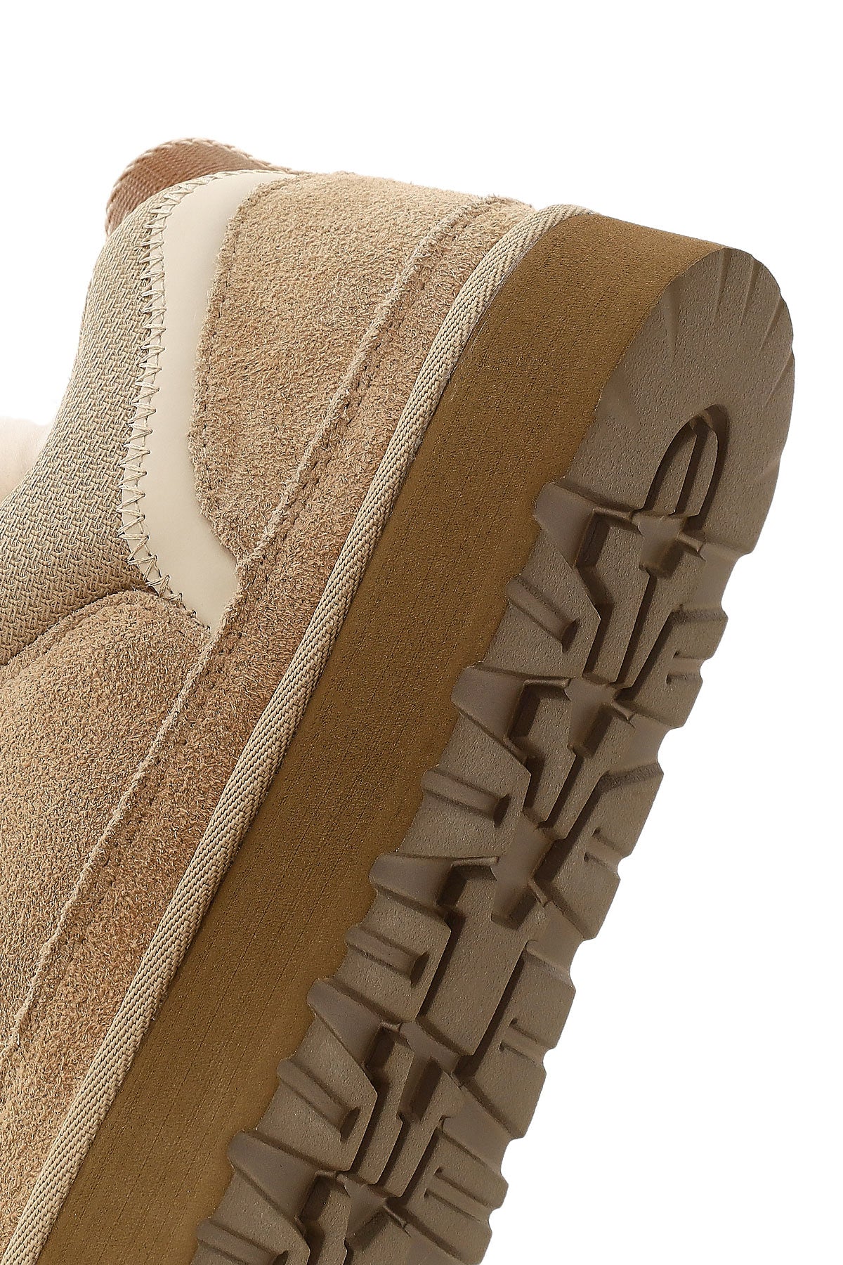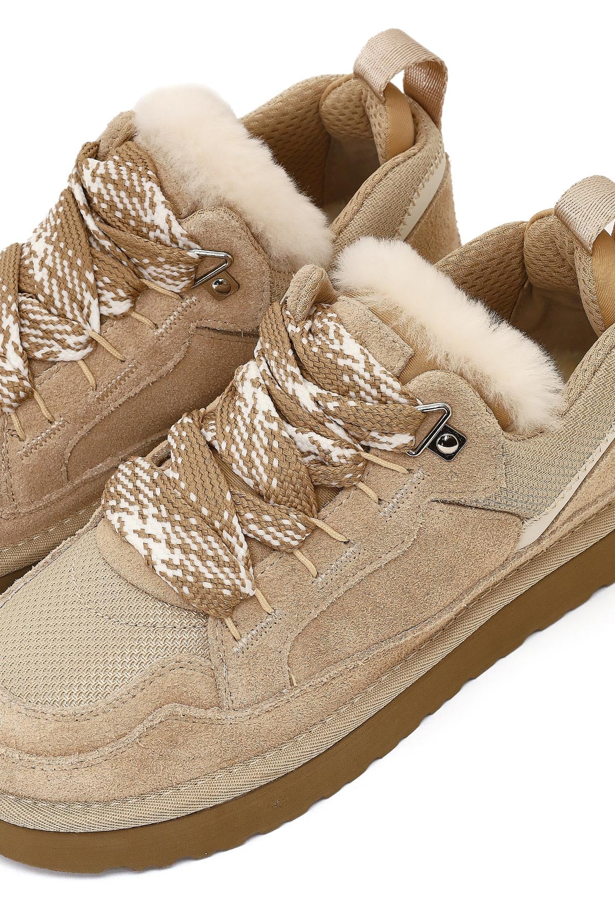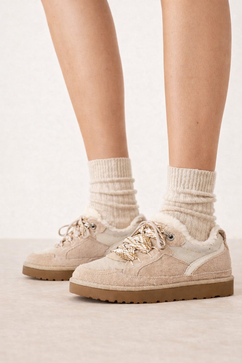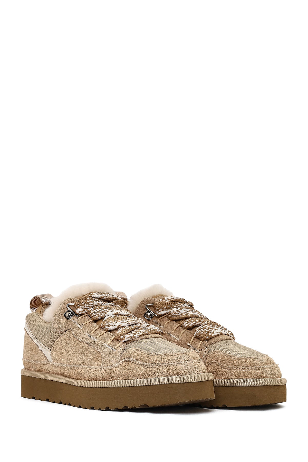 Kadın Bej Bağcıklı Kalın Tabanlı Tüylü Süet Deri Teddy Sneaker