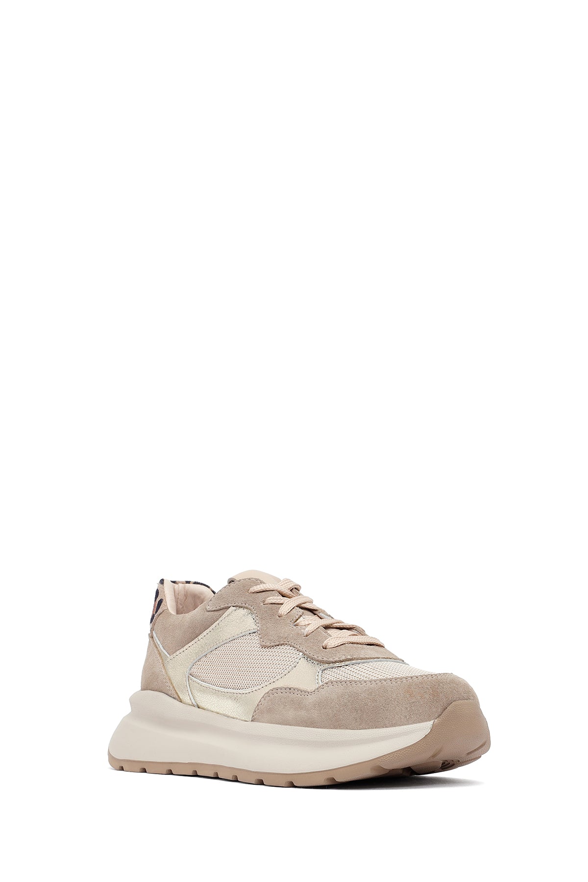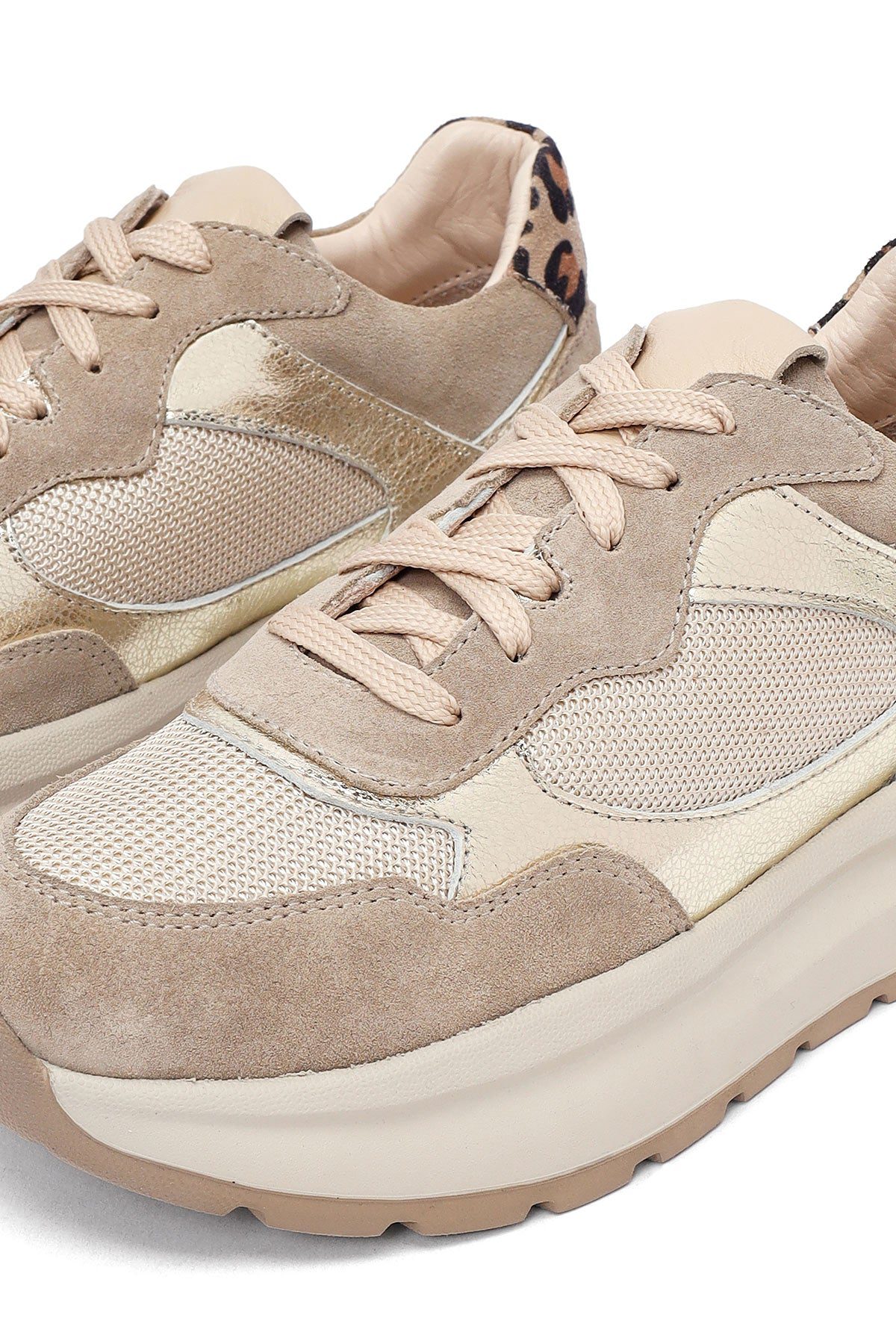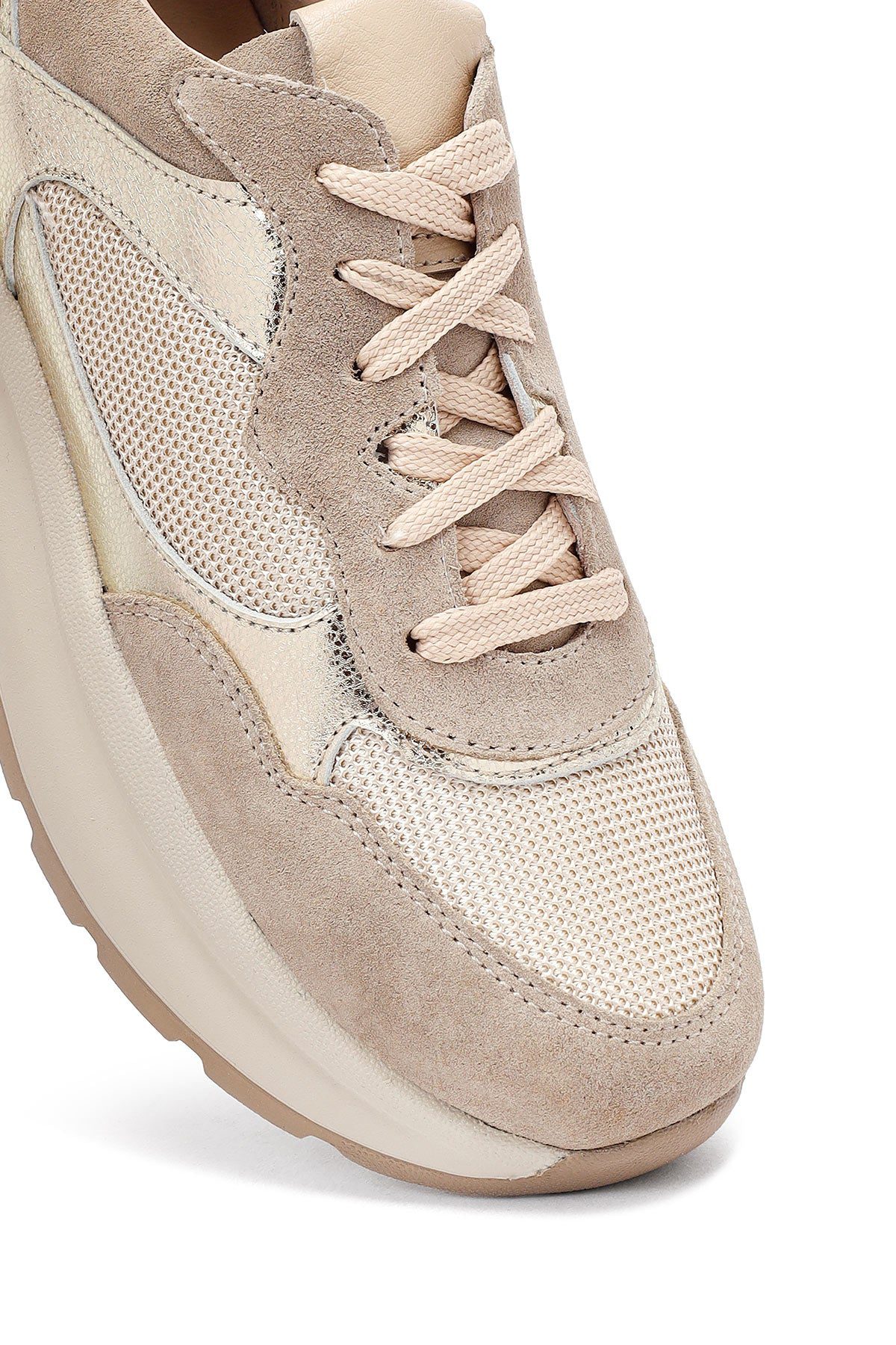 Kadın Bej Bağcıklı Kalın Tabanlı Deri Sneaker