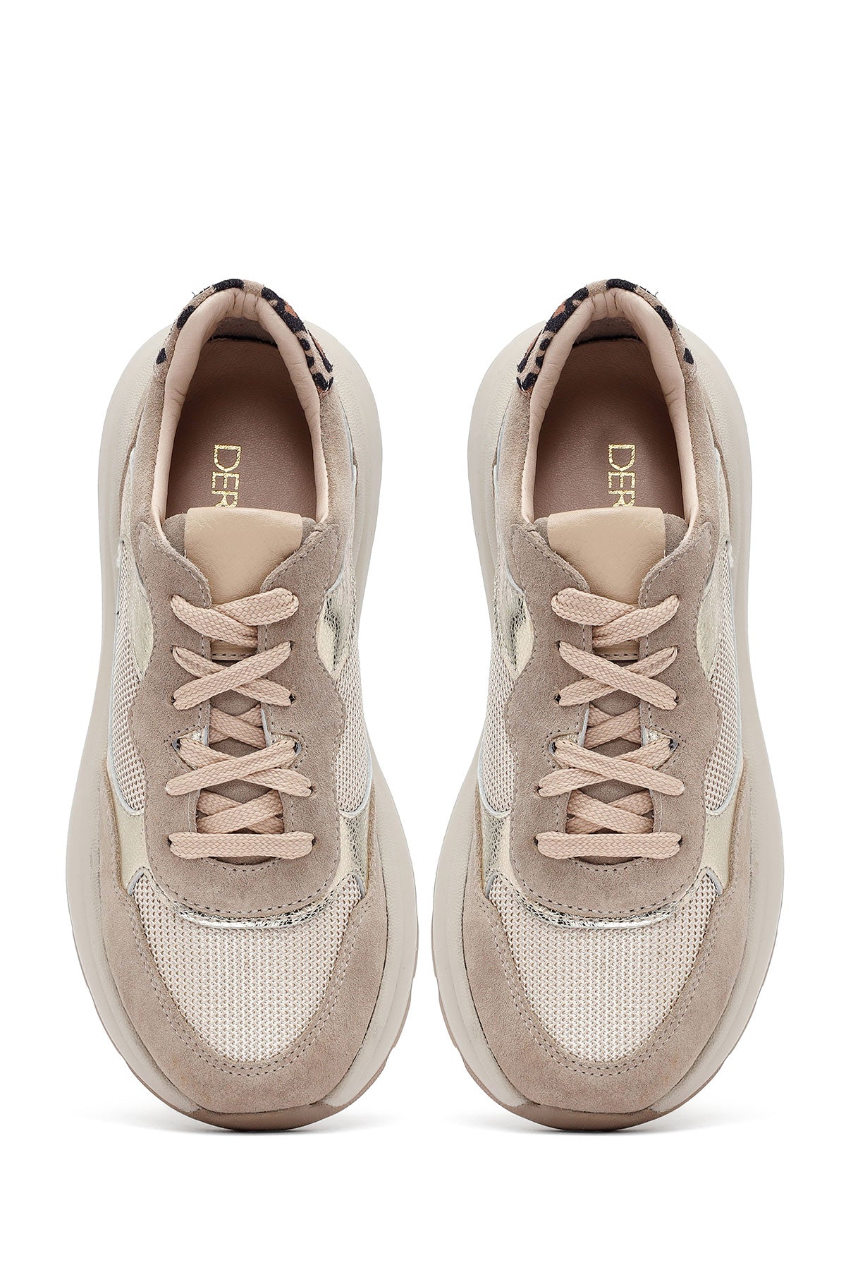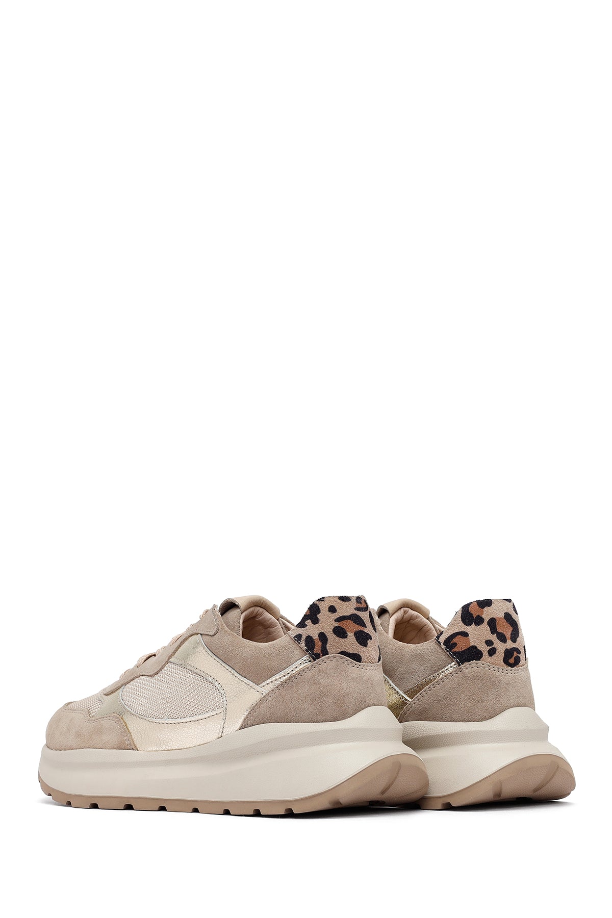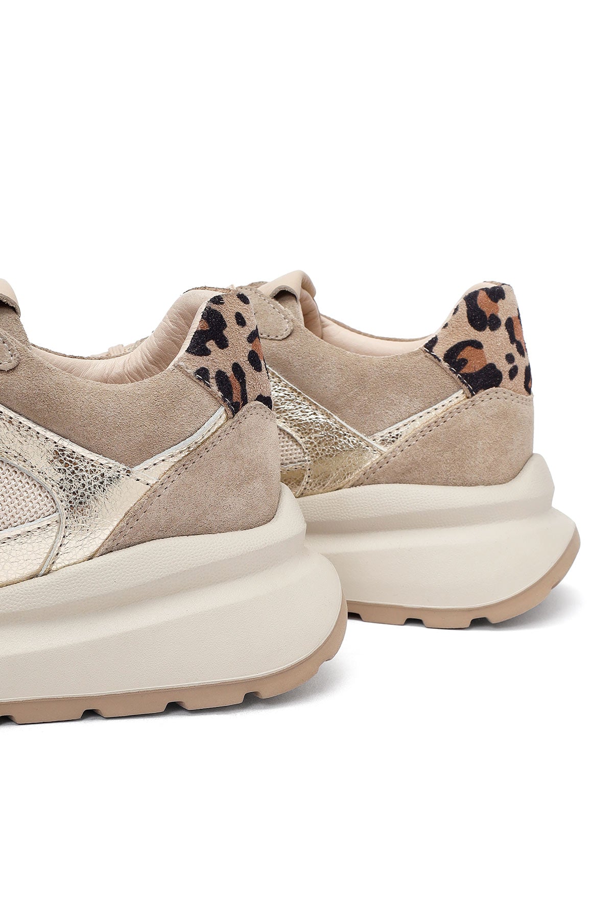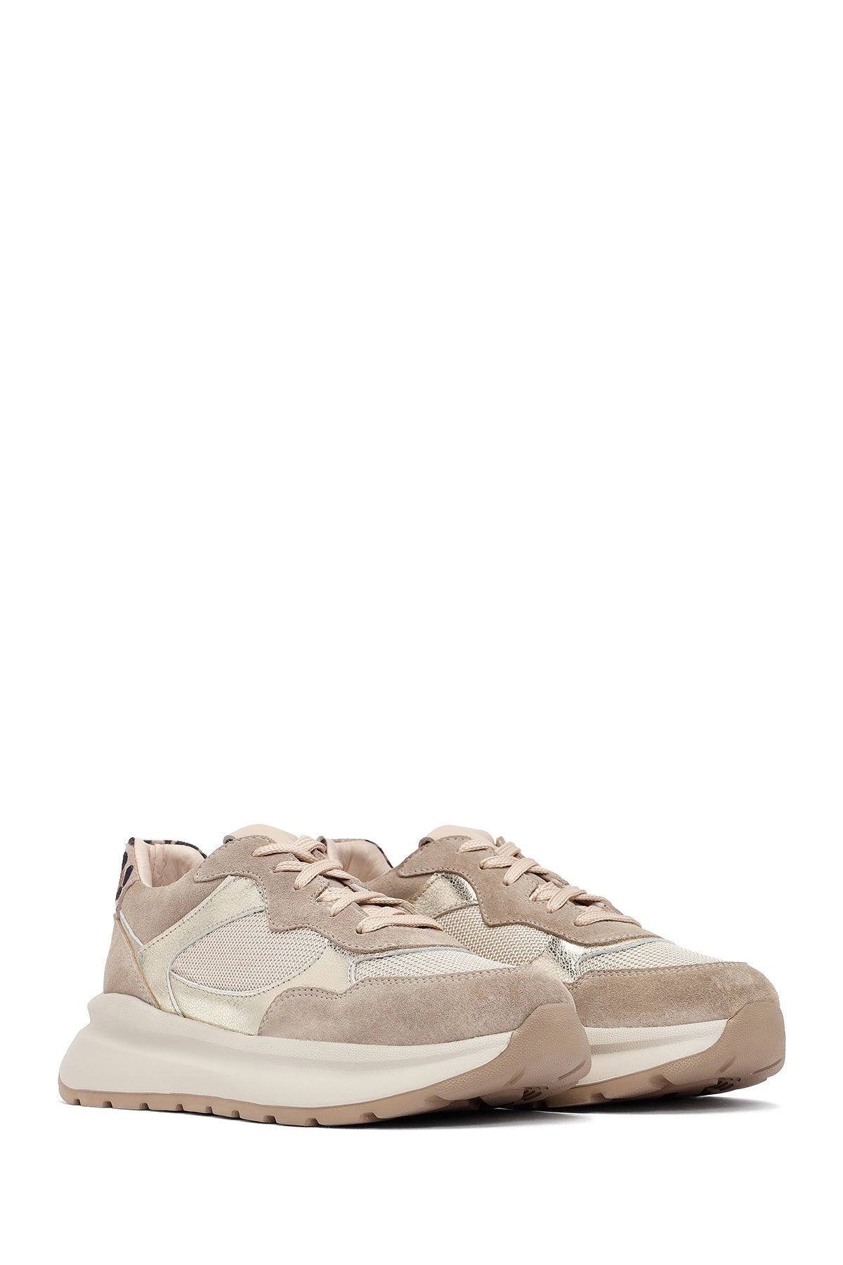 Kadın Bej Bağcıklı Kalın Tabanlı Deri Sneaker