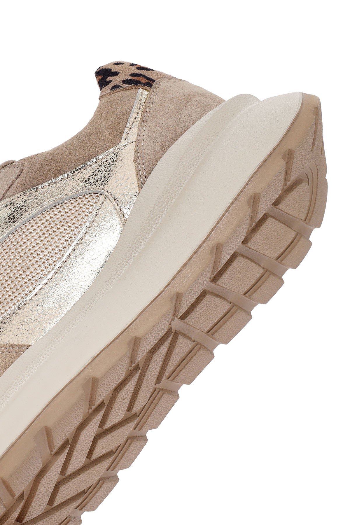 کتونی زنانه چرم بژ بنددار لژدار دری مد