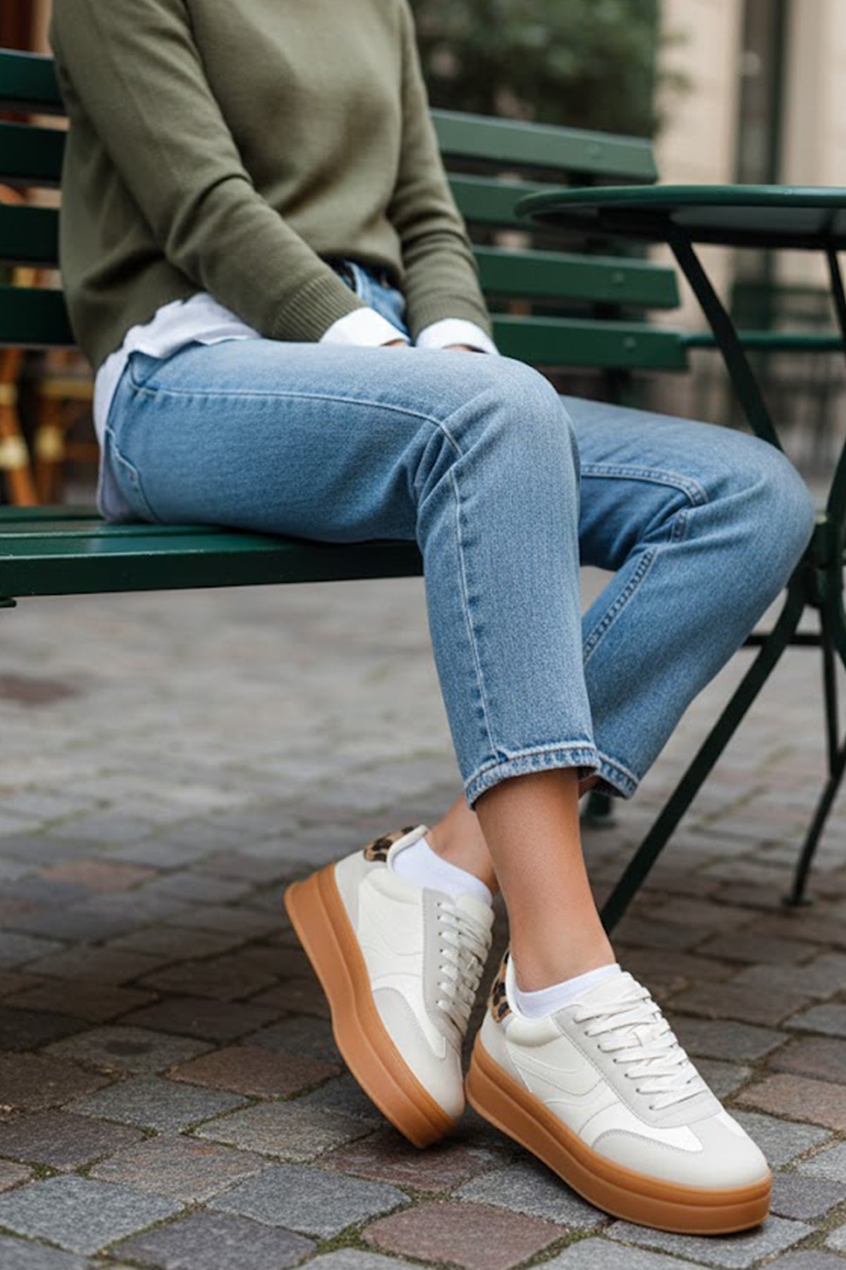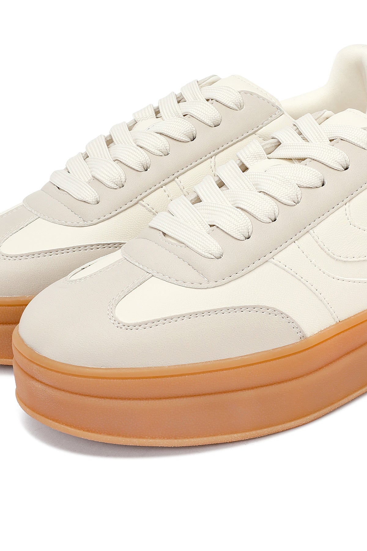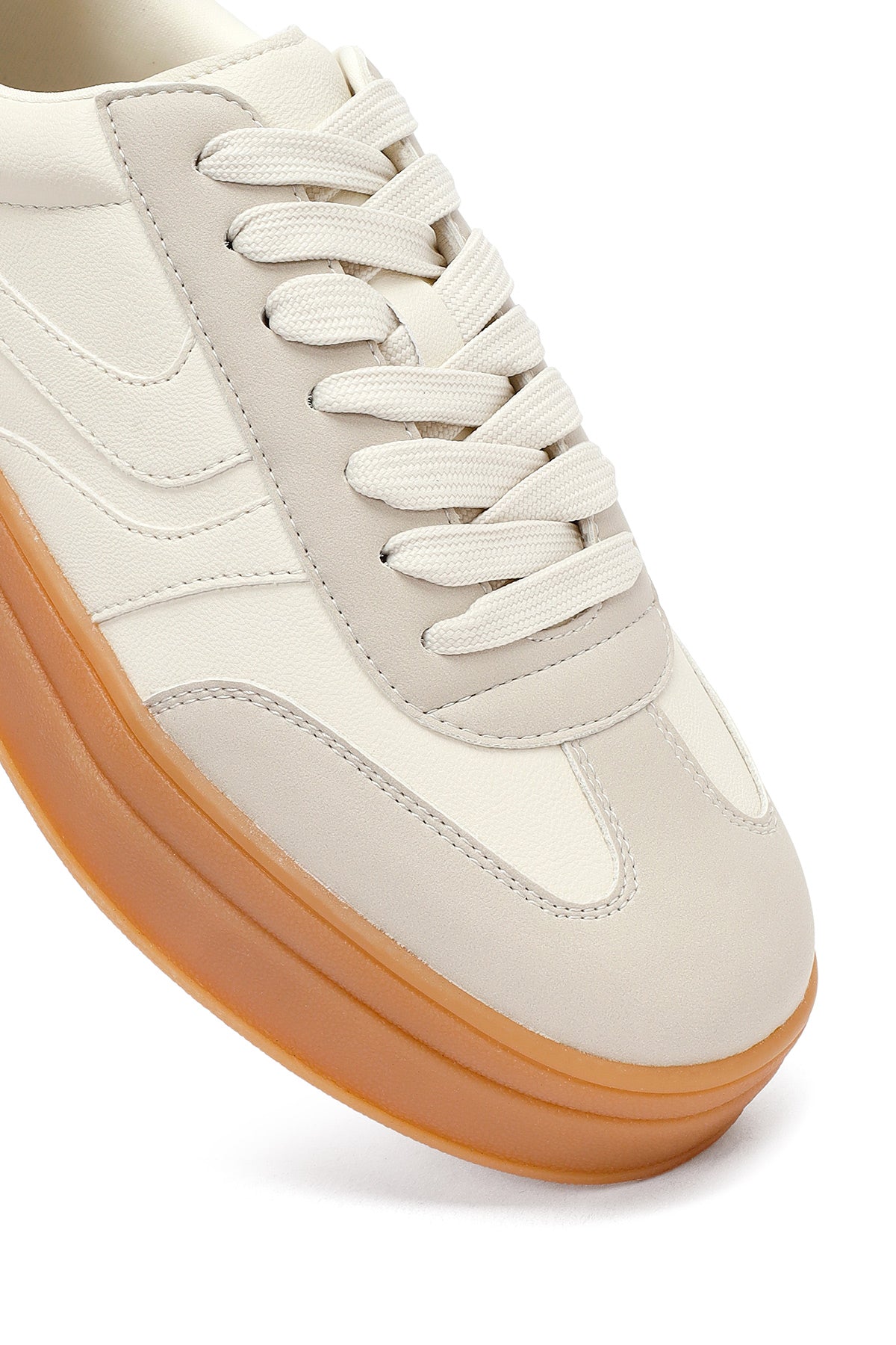 Kadın Bej Bağcıklı Kalın Tabanlı Sneaker