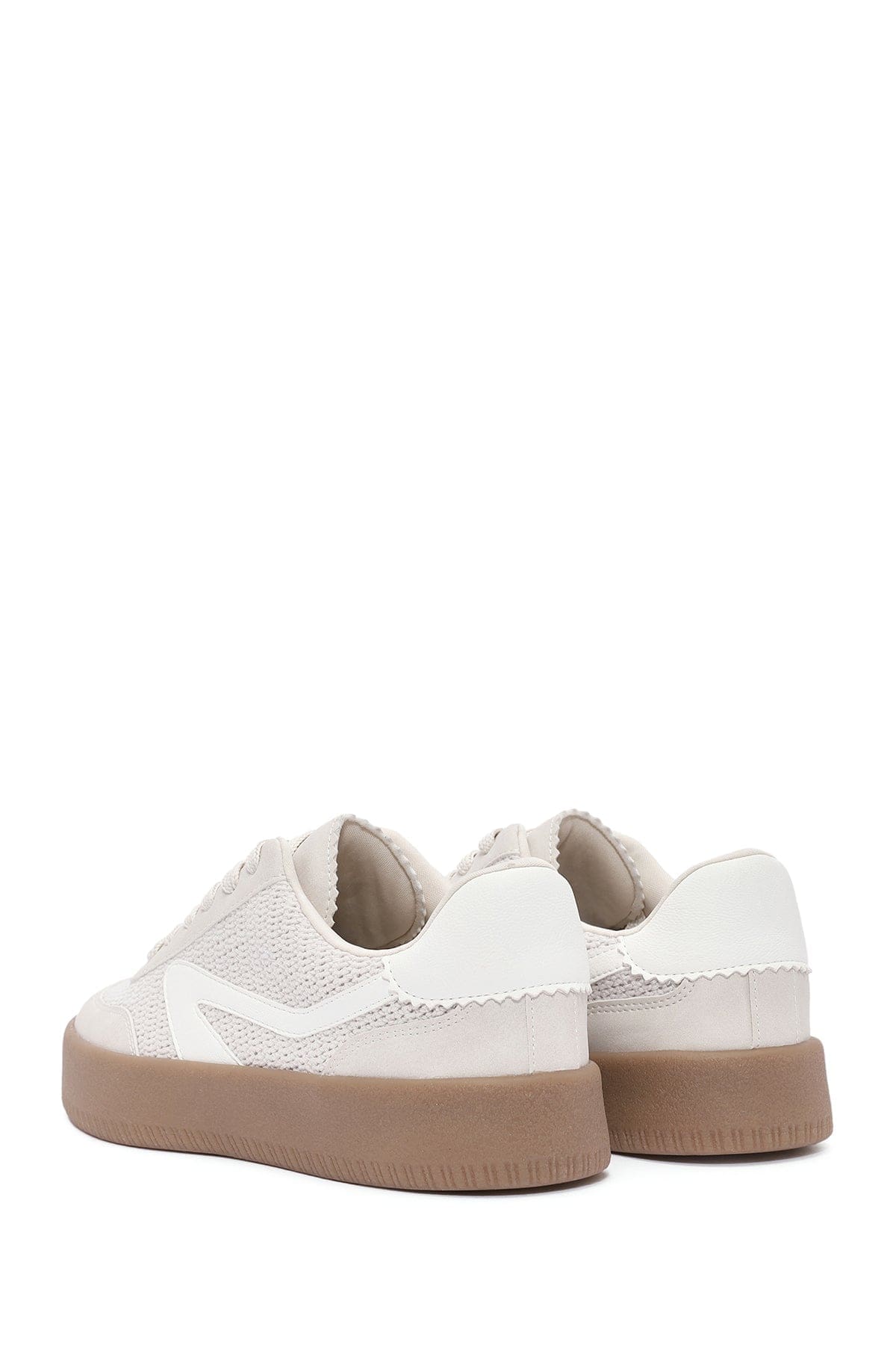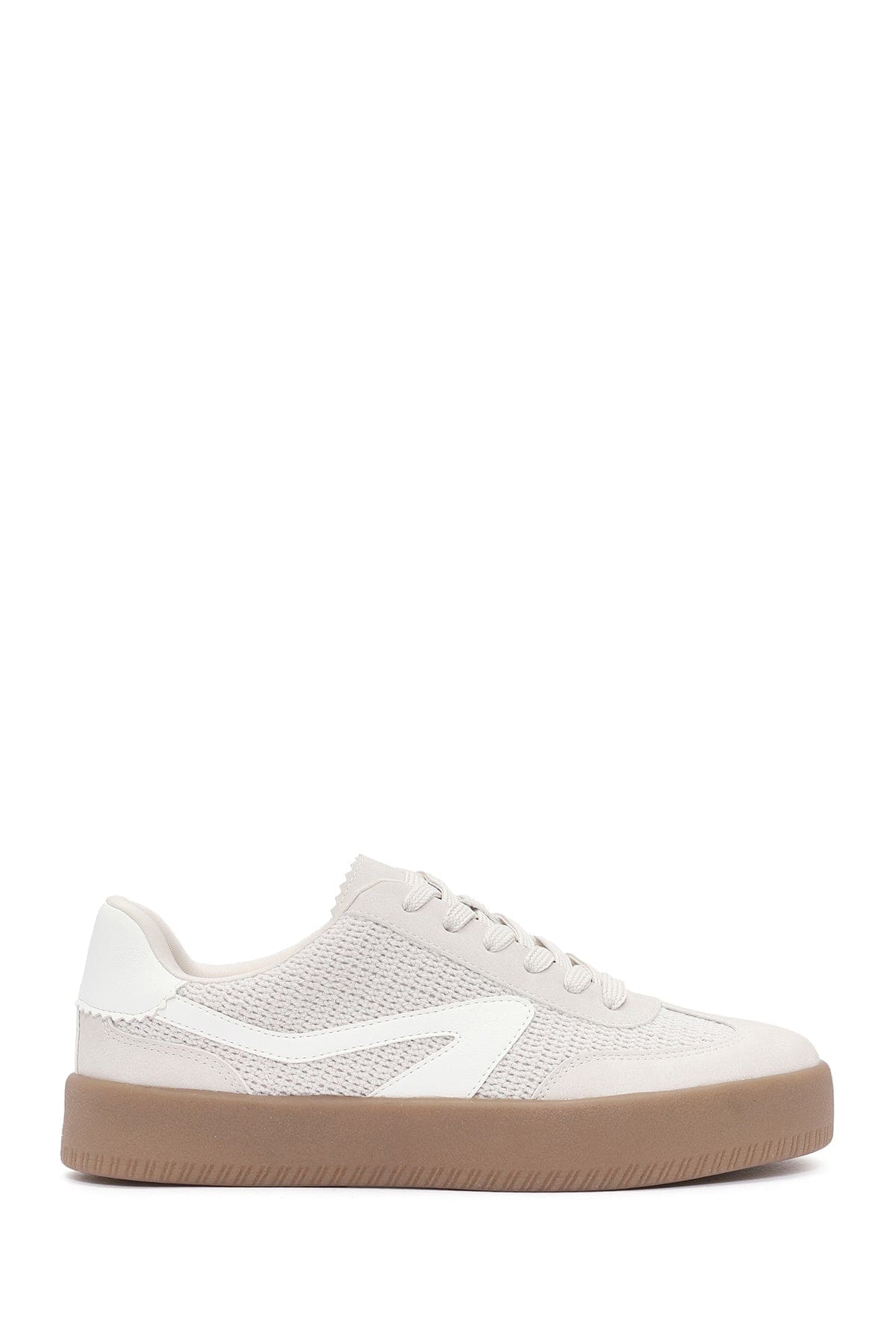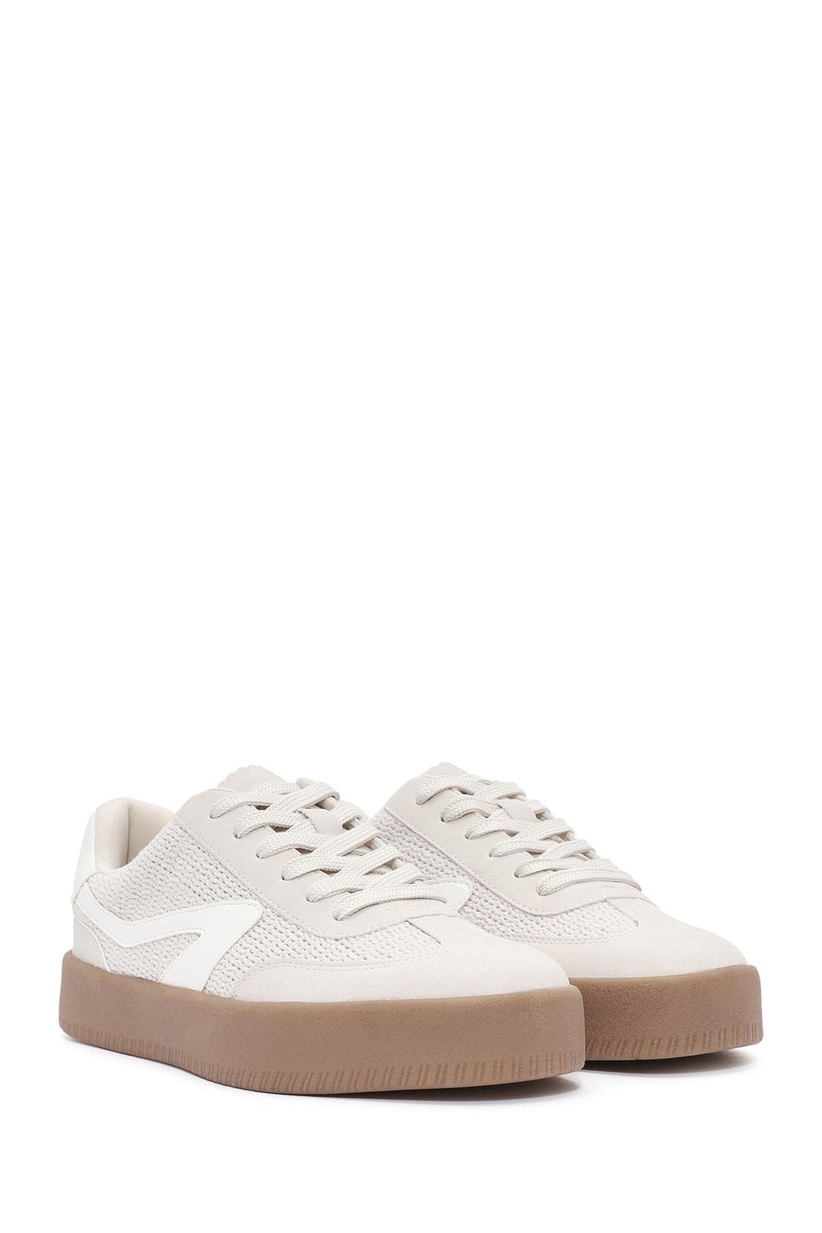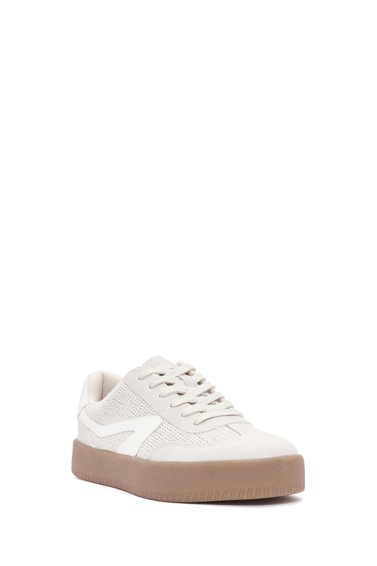 Kadın Bej Bağcıklı Kalın Tabanlı Sneaker