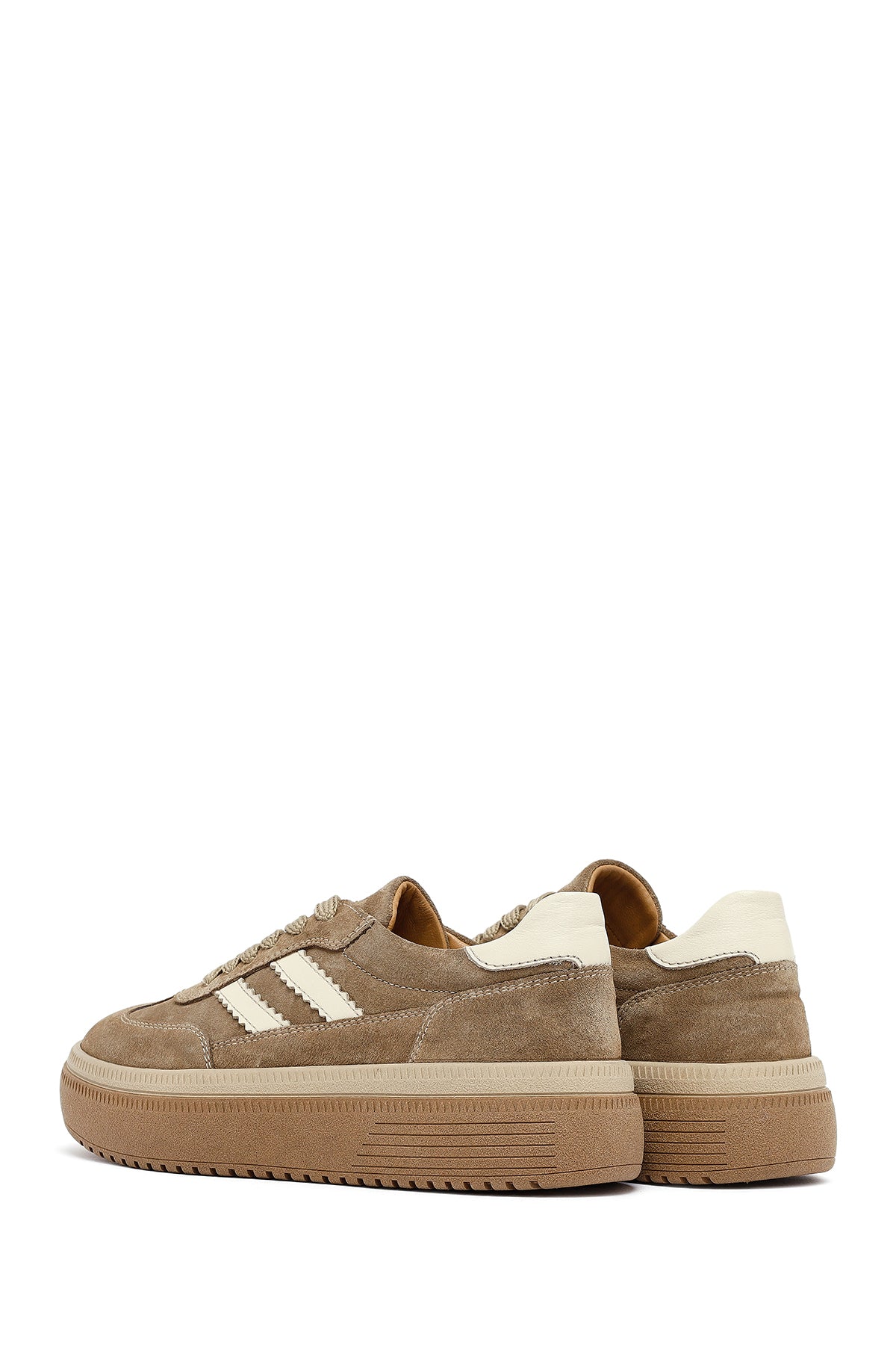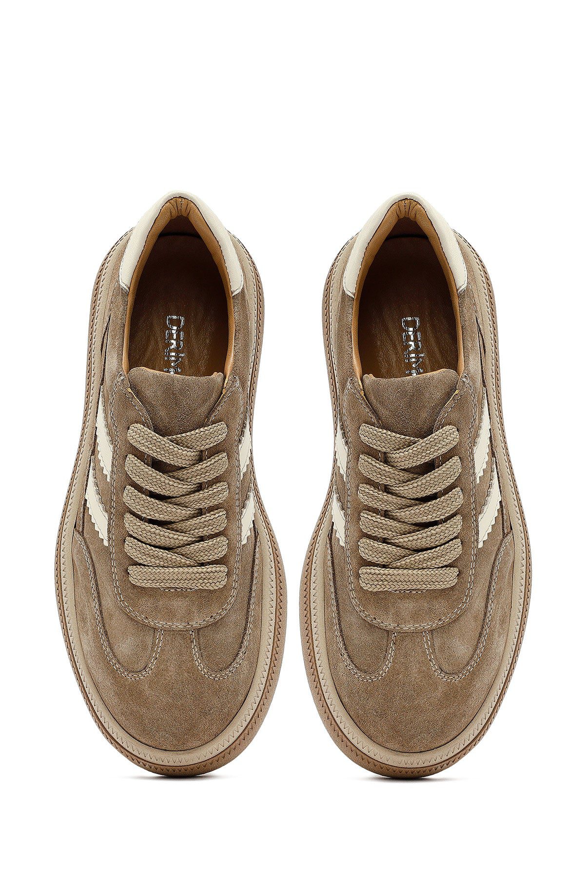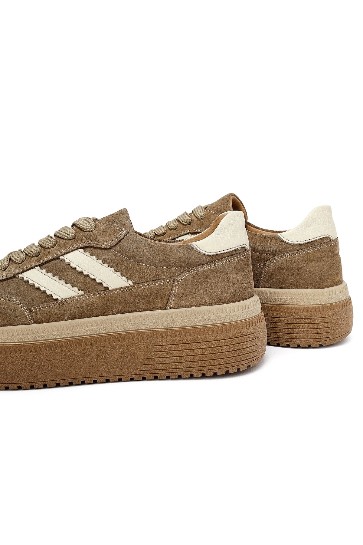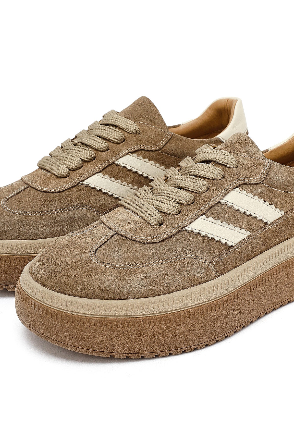 Kadın Bej Bağcıklı Kalın Tabanlı Süet Deri Sneaker