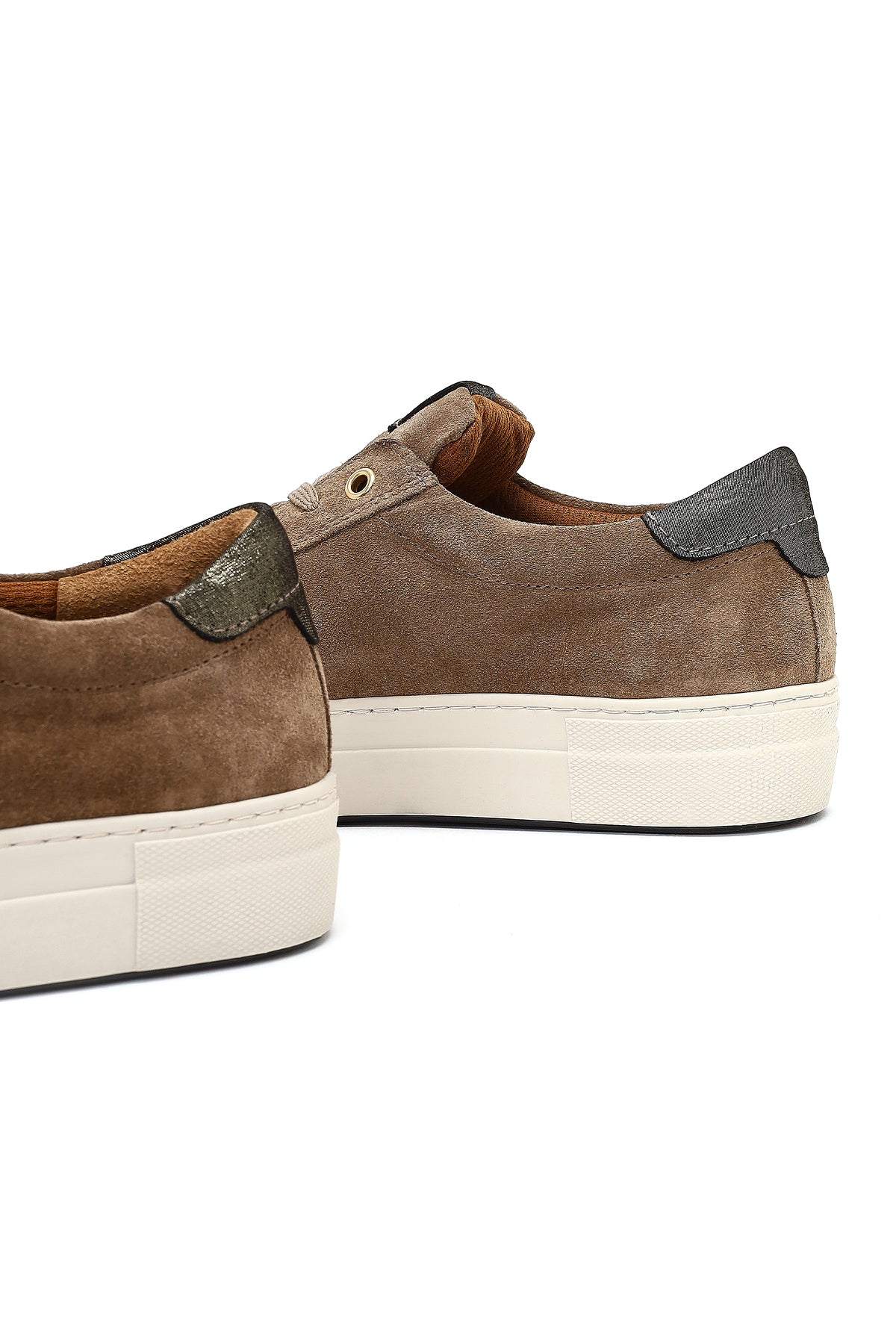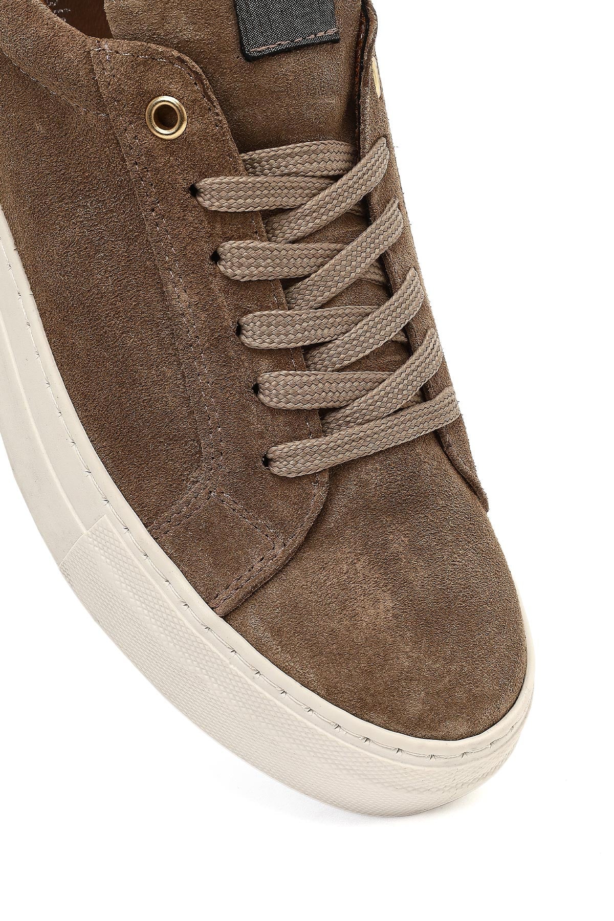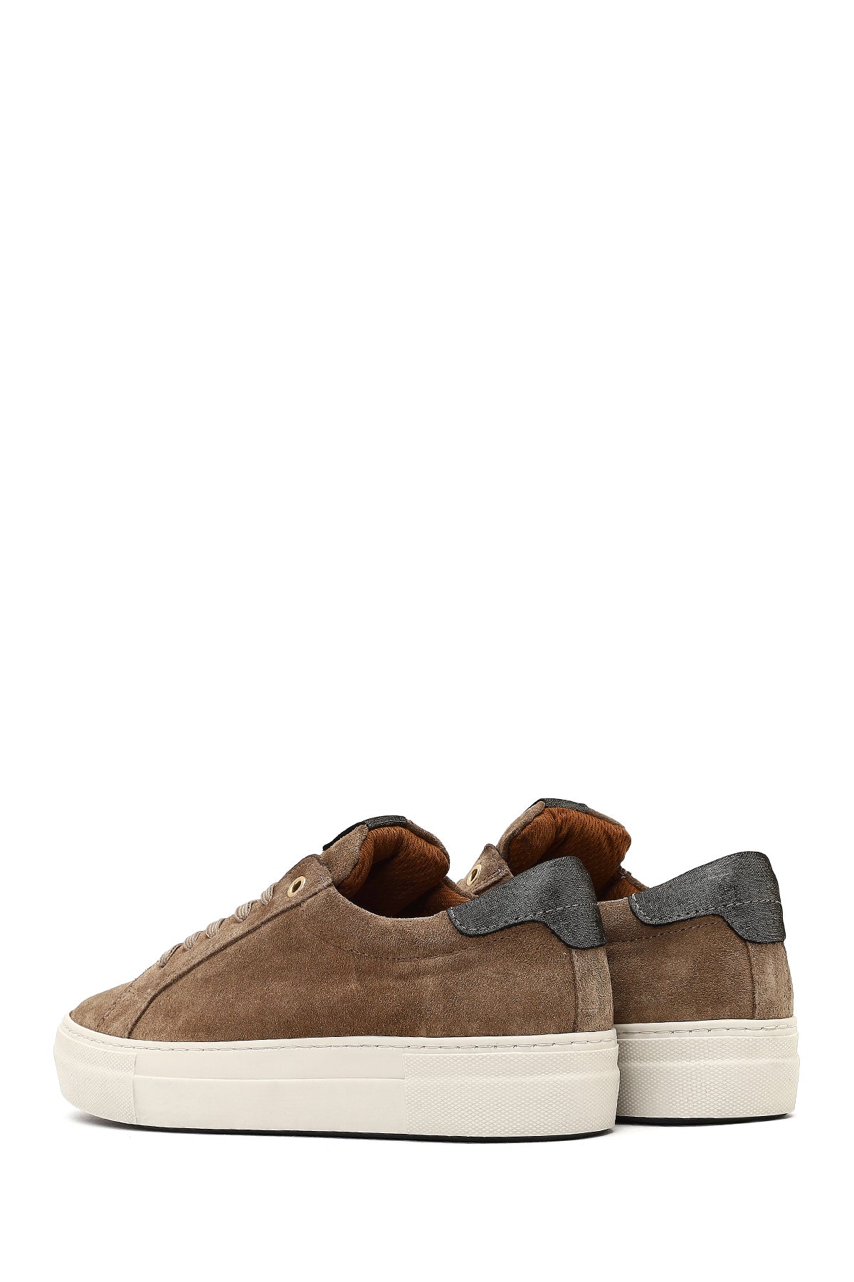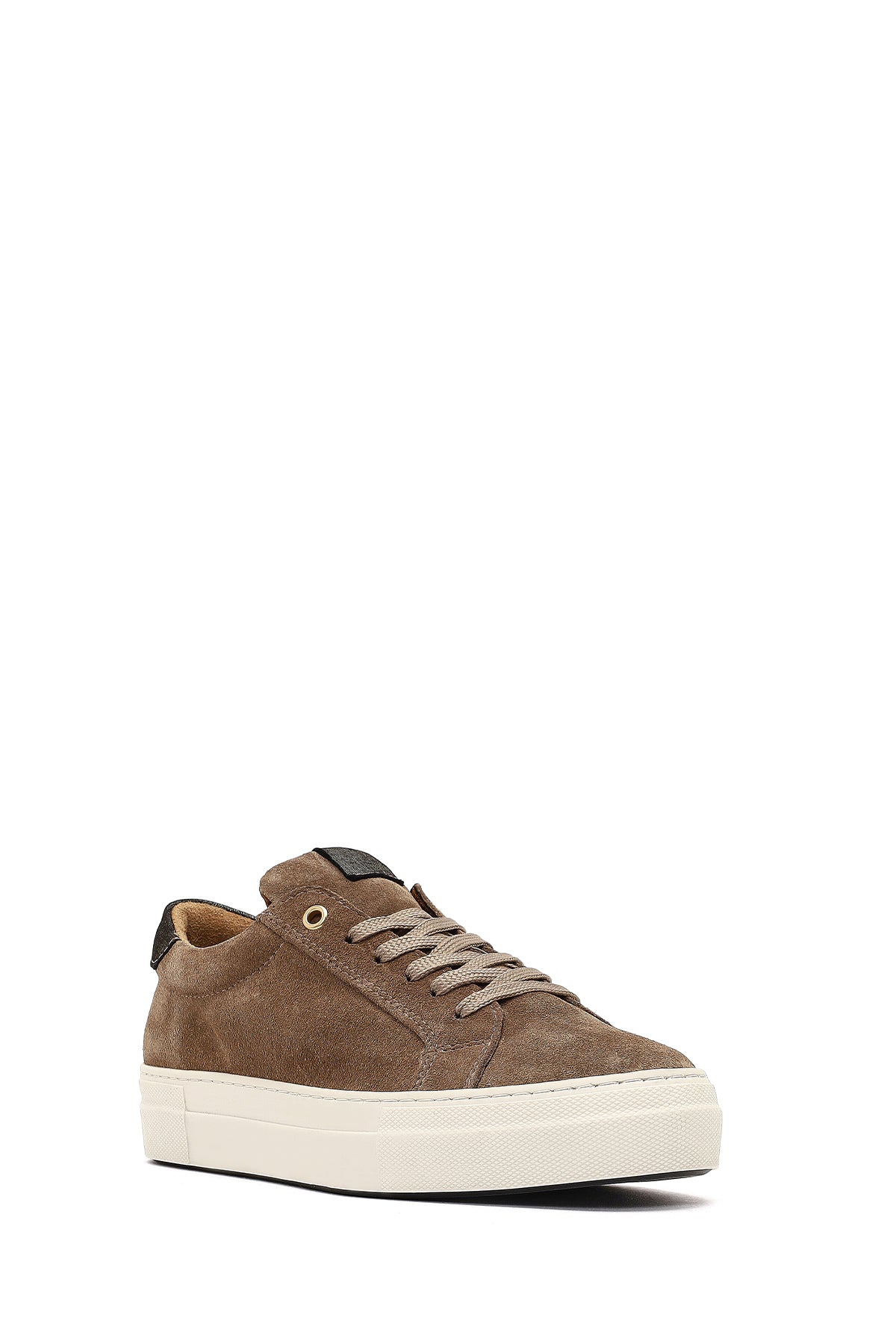 Kadın Bej Bağcıklı Kalın Tabanlı Süet Deri Sneaker