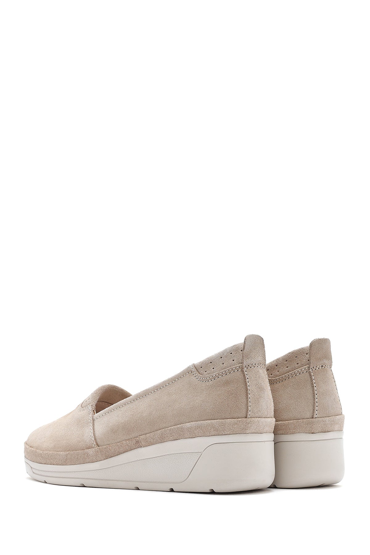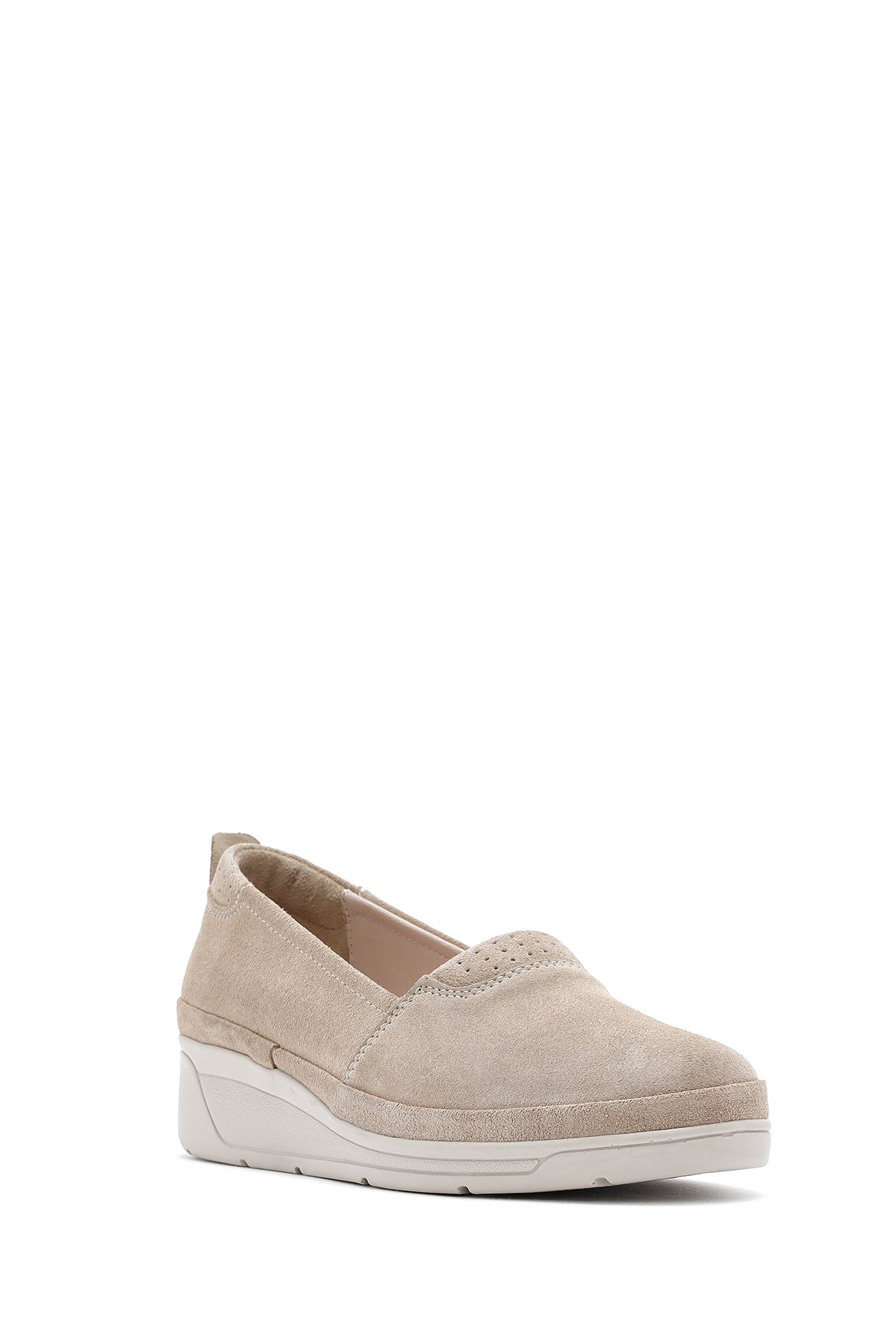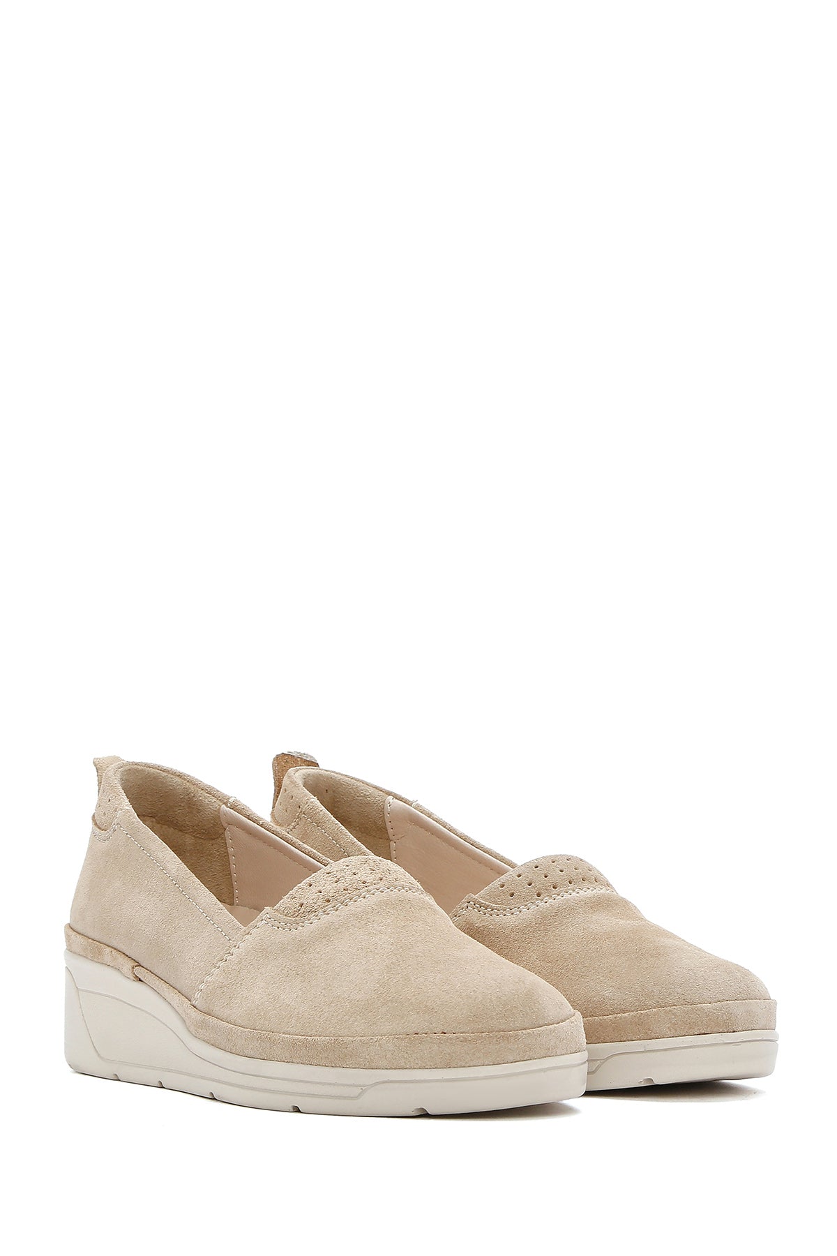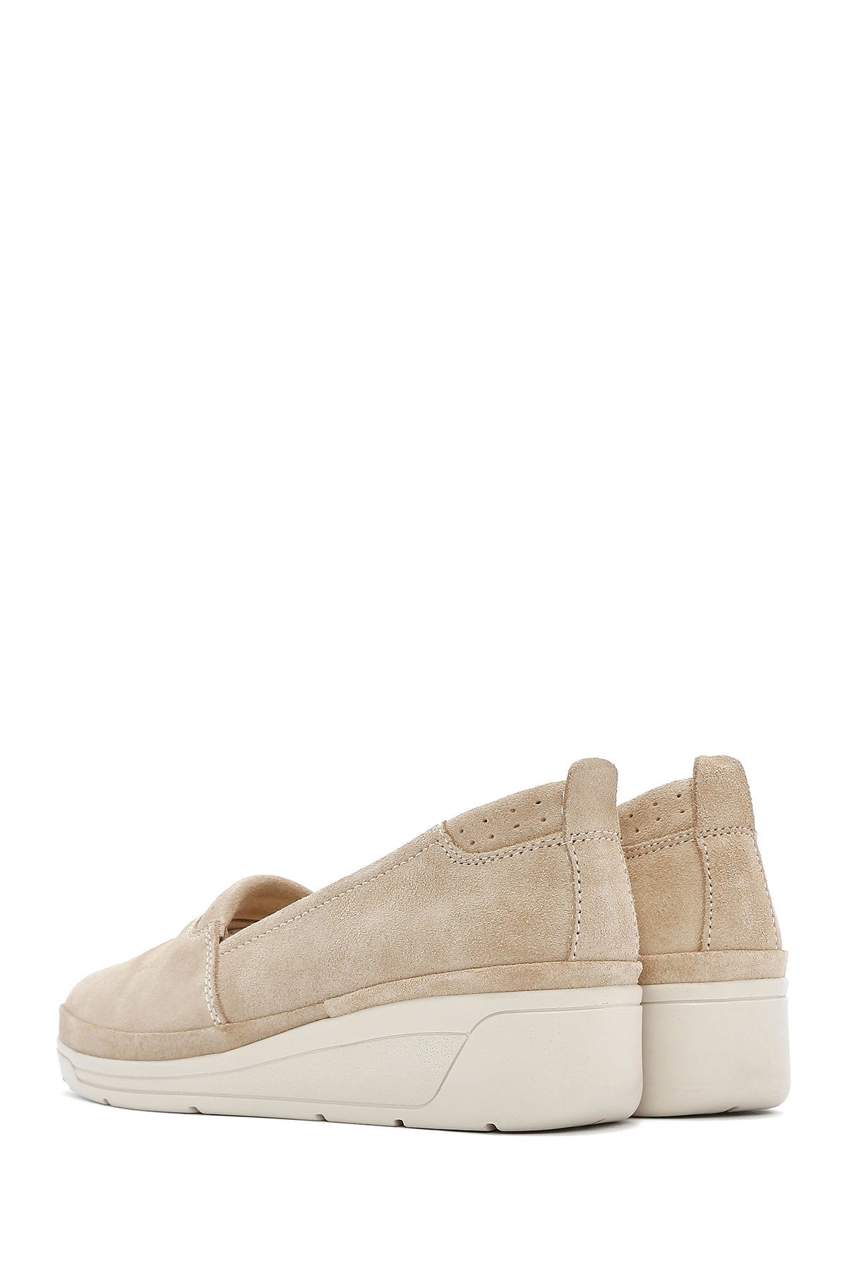 Kadın Bej Dolgu Topuklu Süet Deri Comfort Loafer