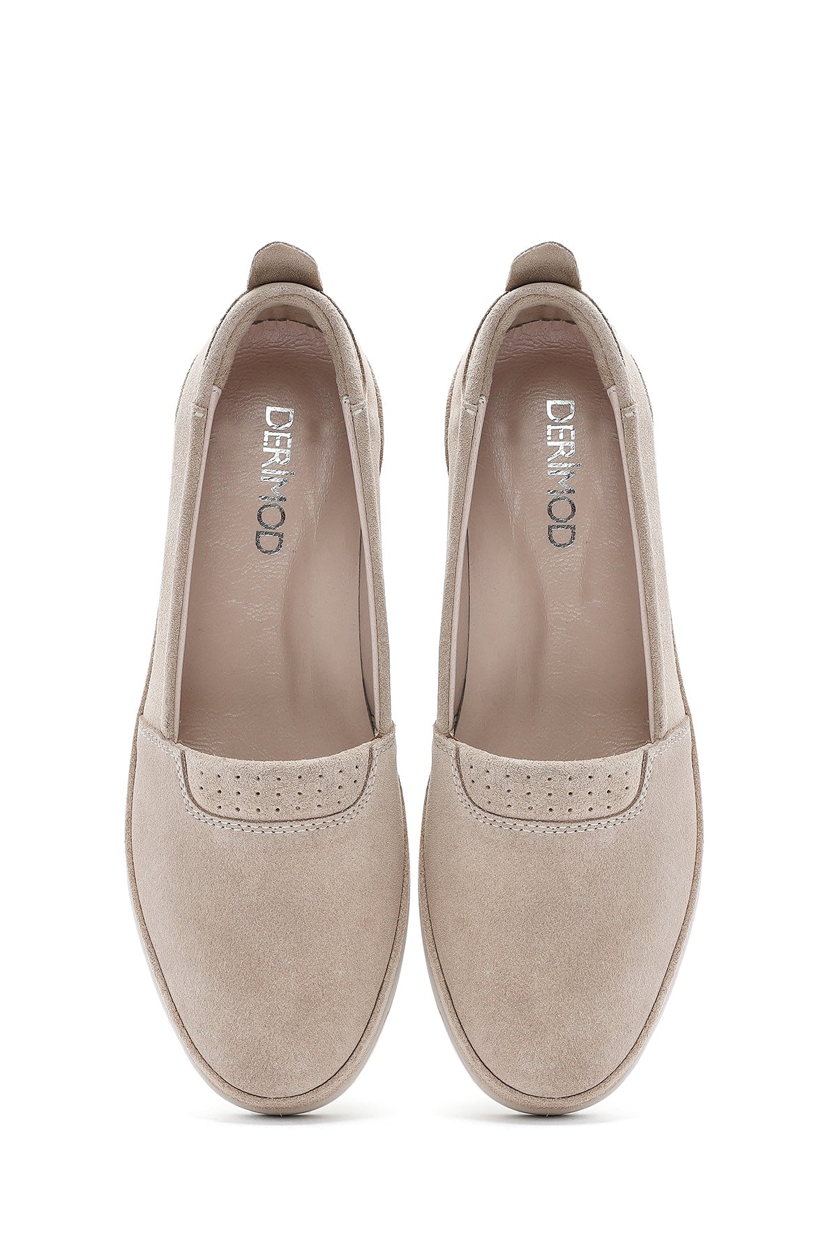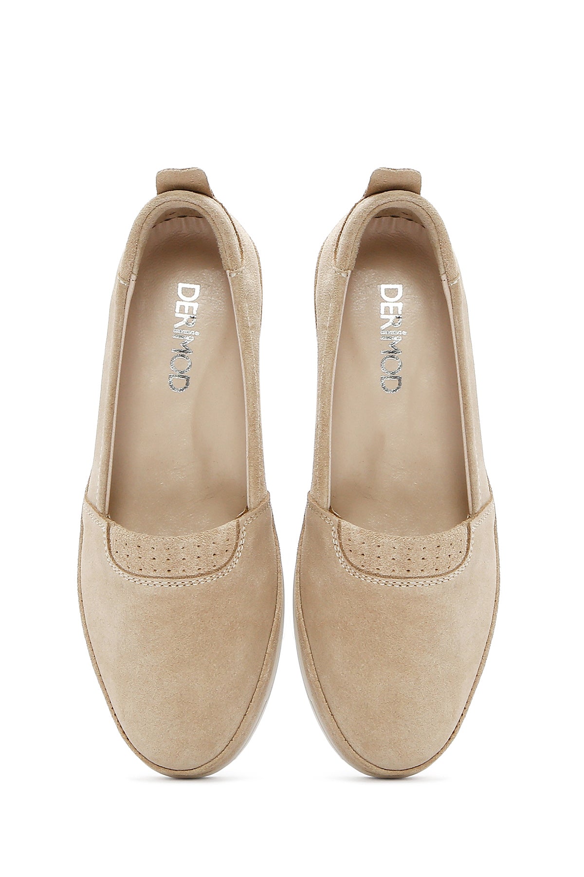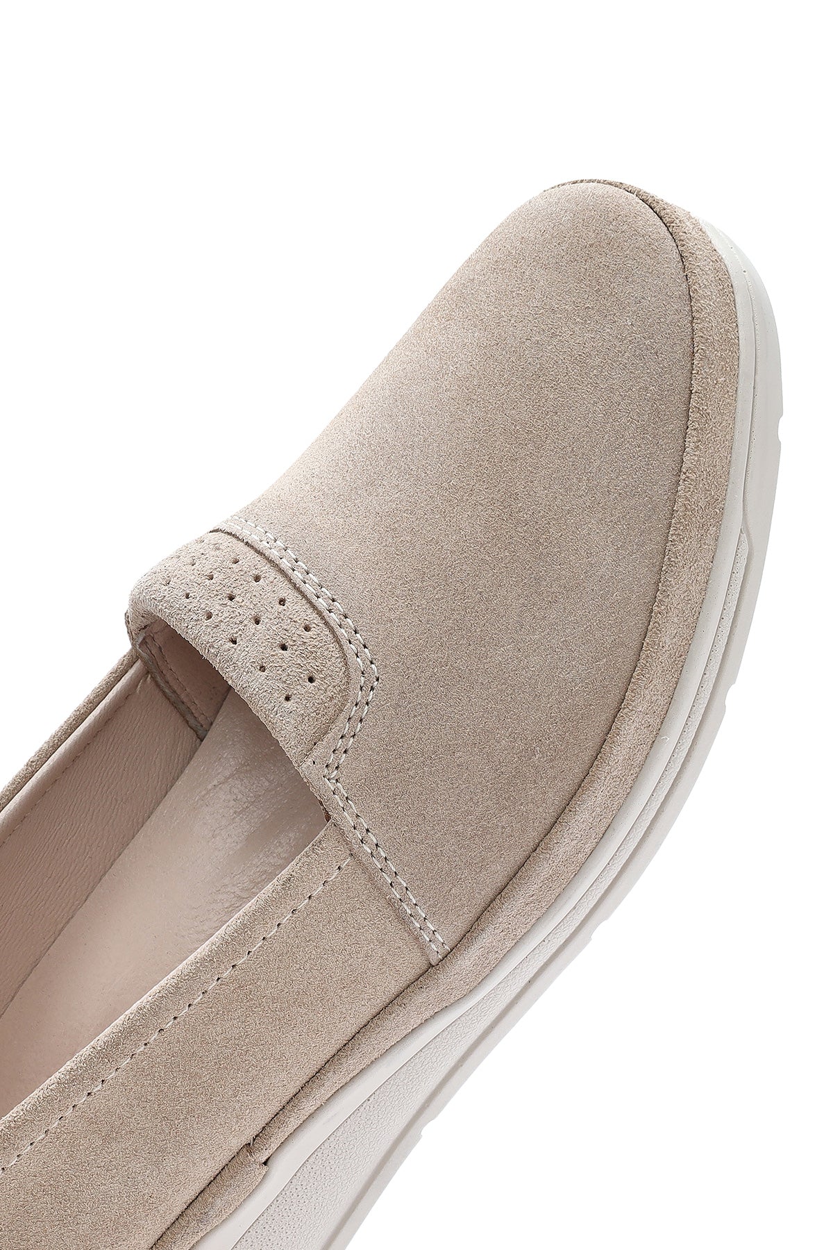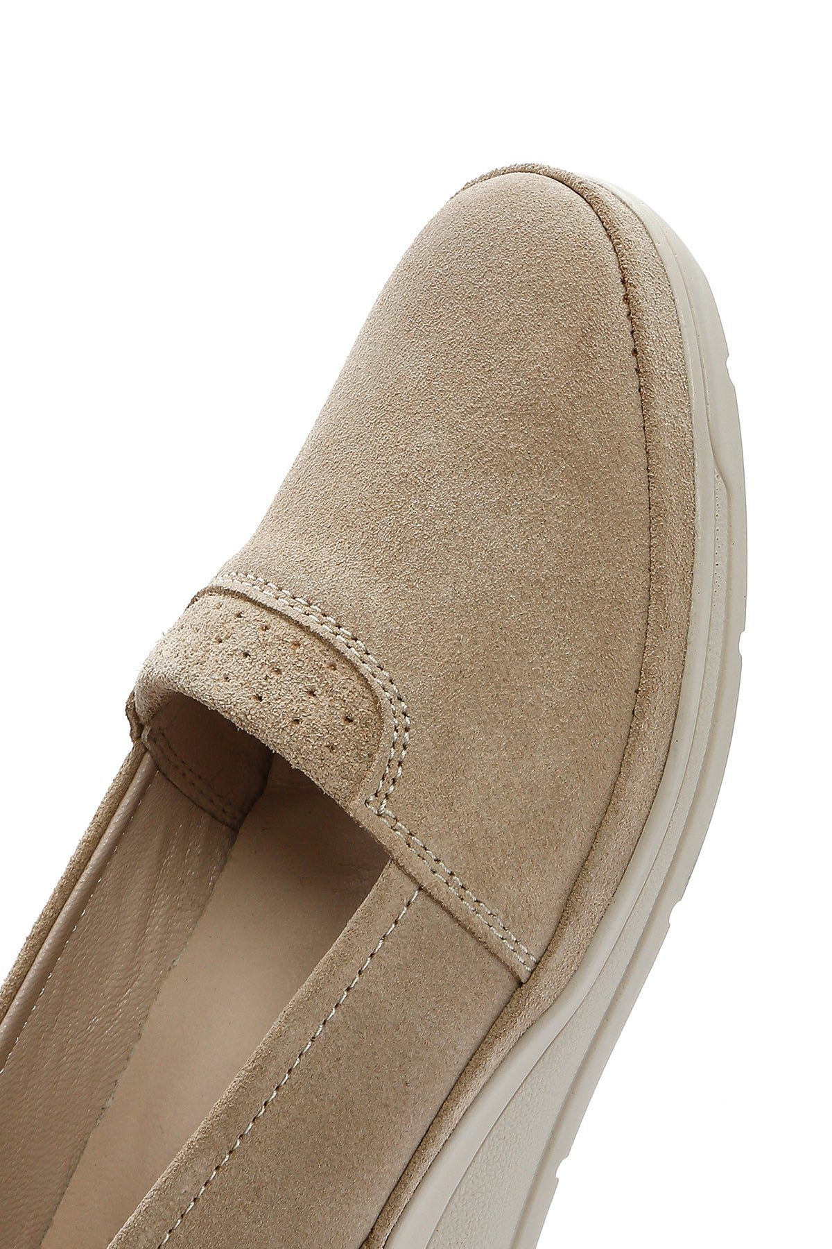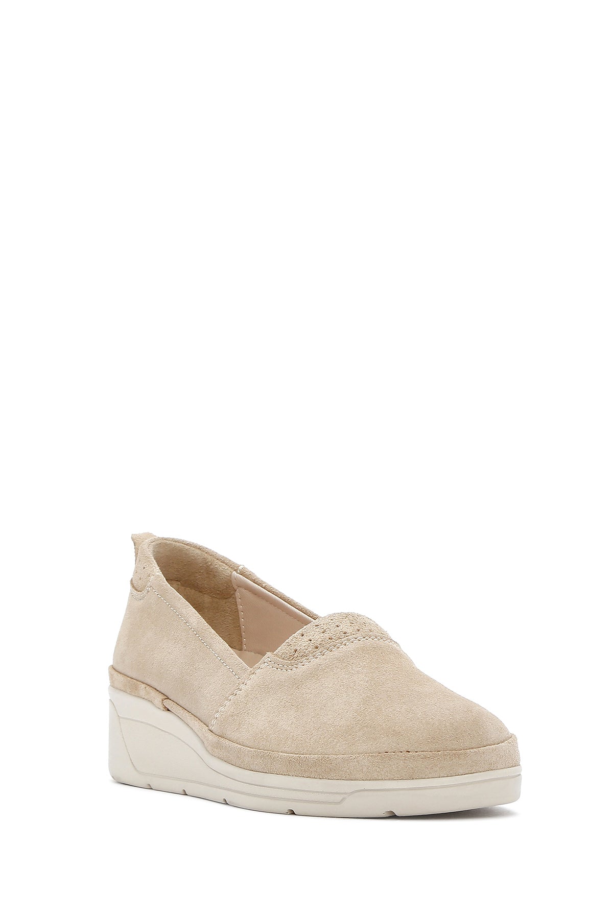 Kadın Bej Dolgu Topuklu Süet Deri Comfort Loafer