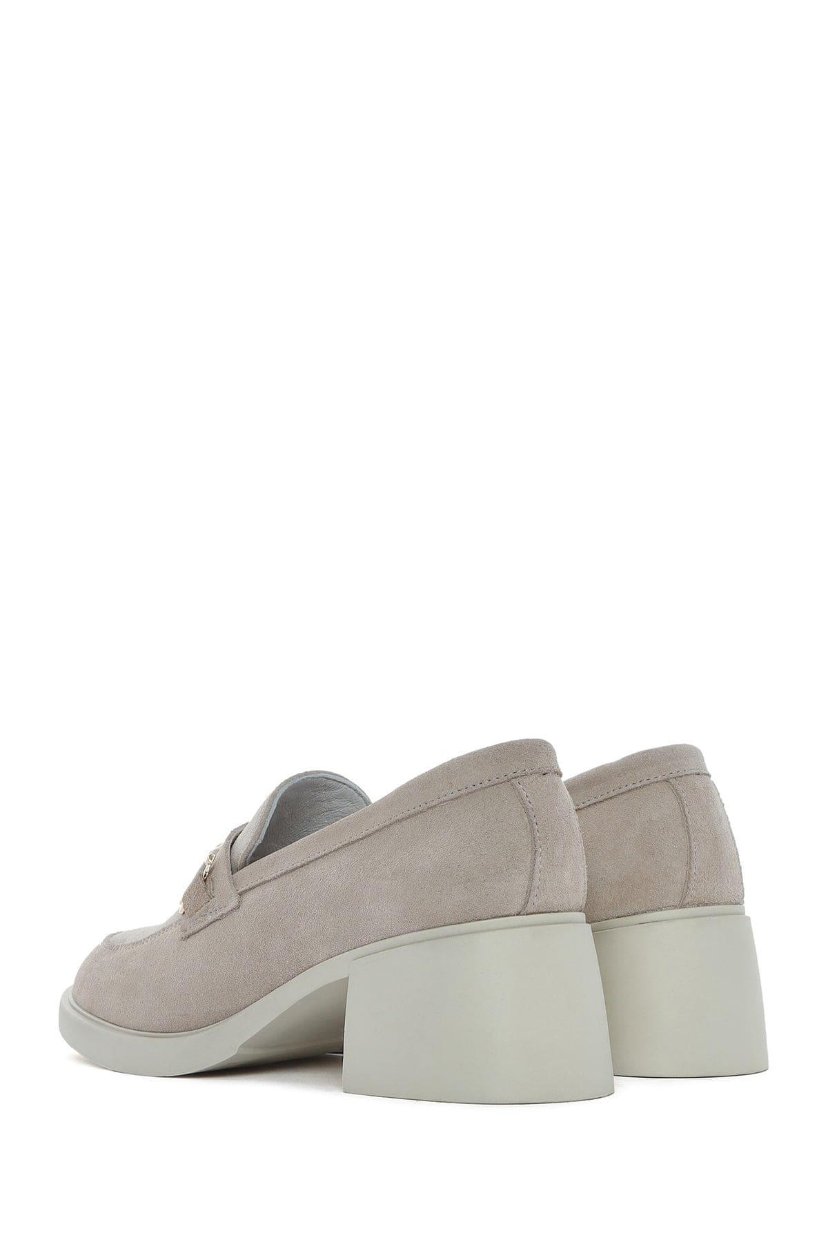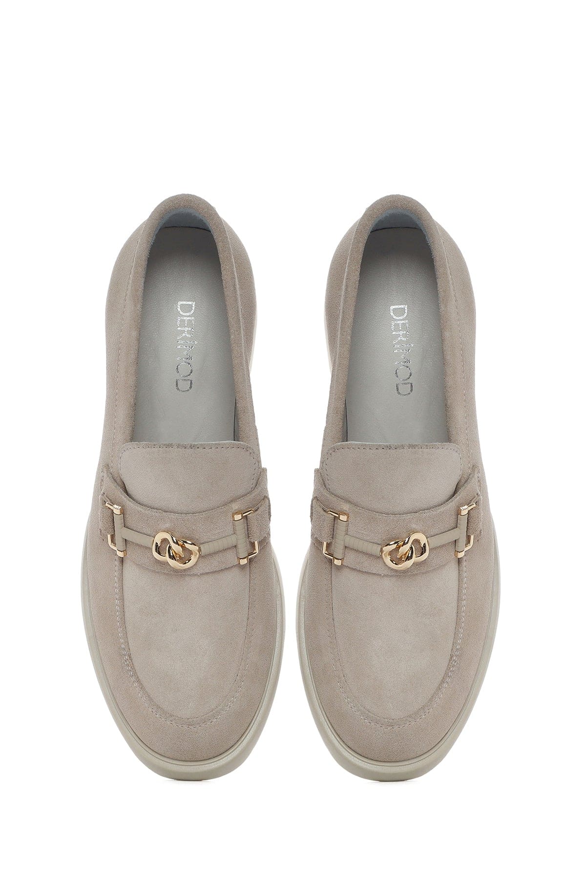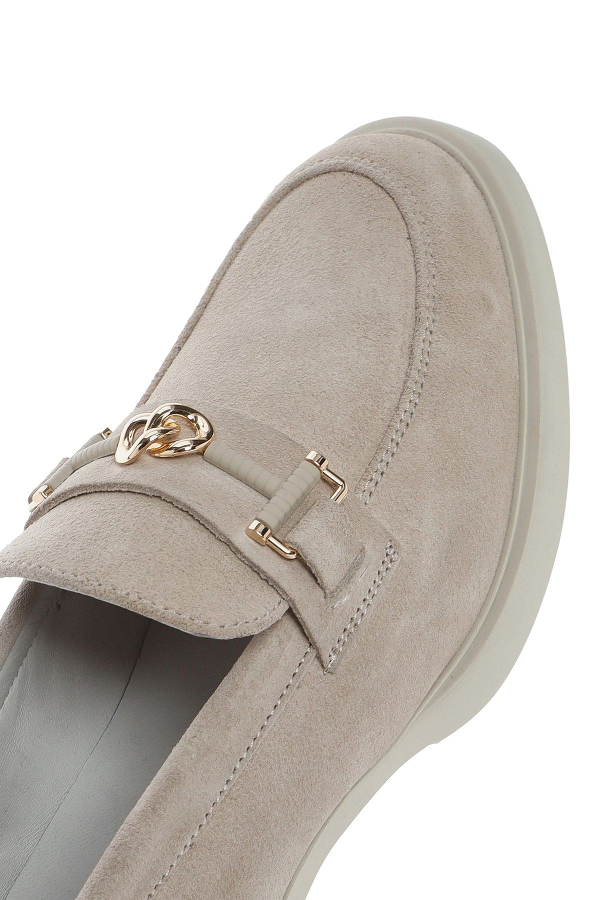 Kadın Bej Tokalı Kalın Topuklu Süet Deri Maskülen Loafer