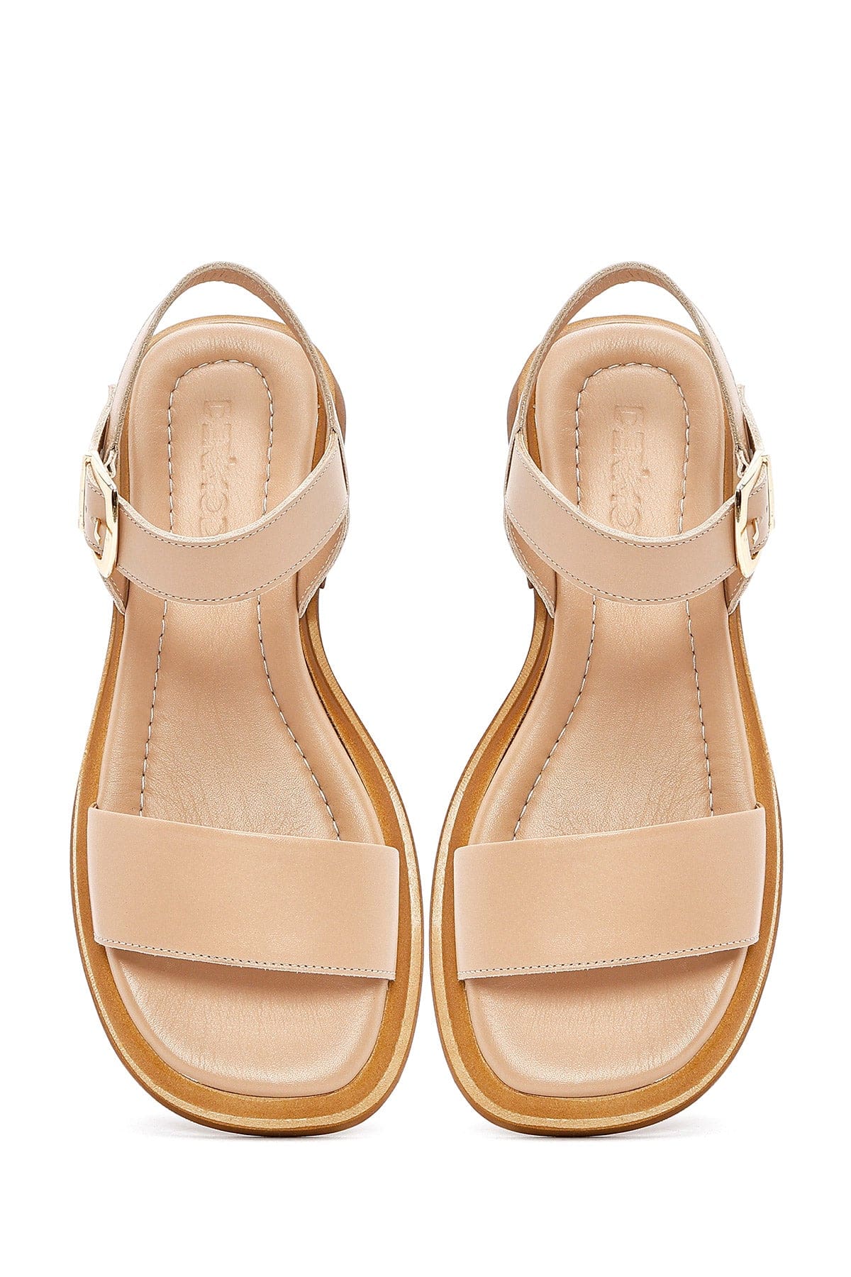 Kadın Bej Bilekten Tokalı Deri Sandalet