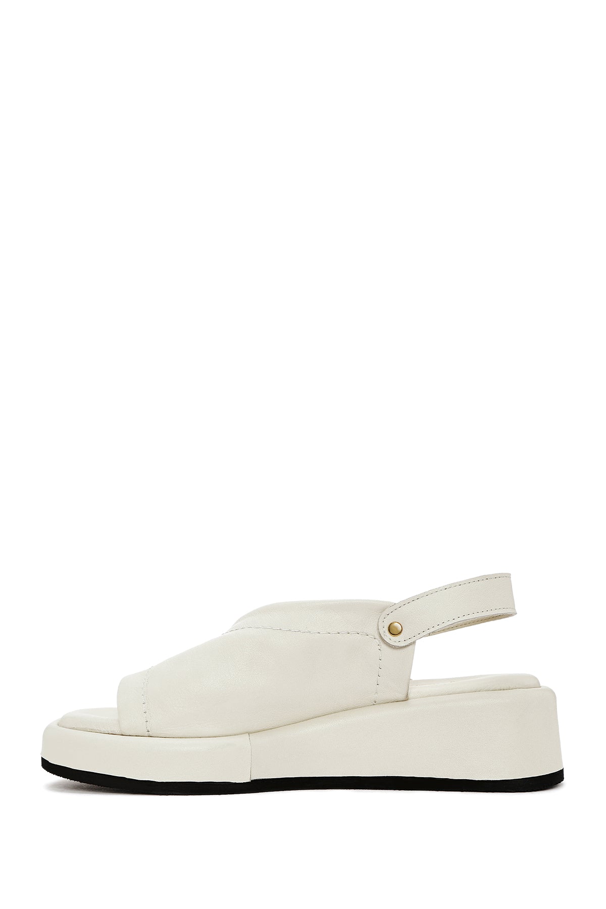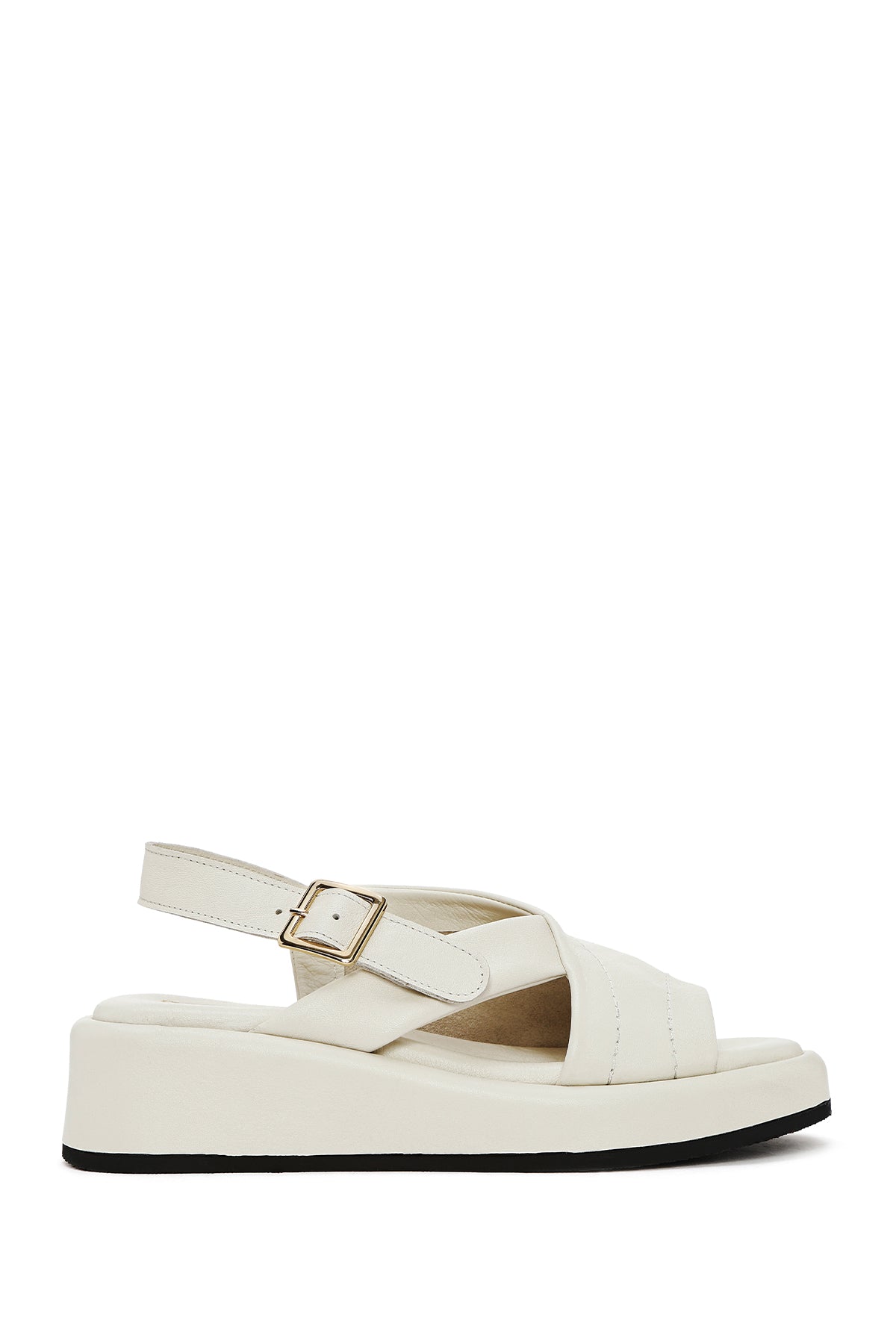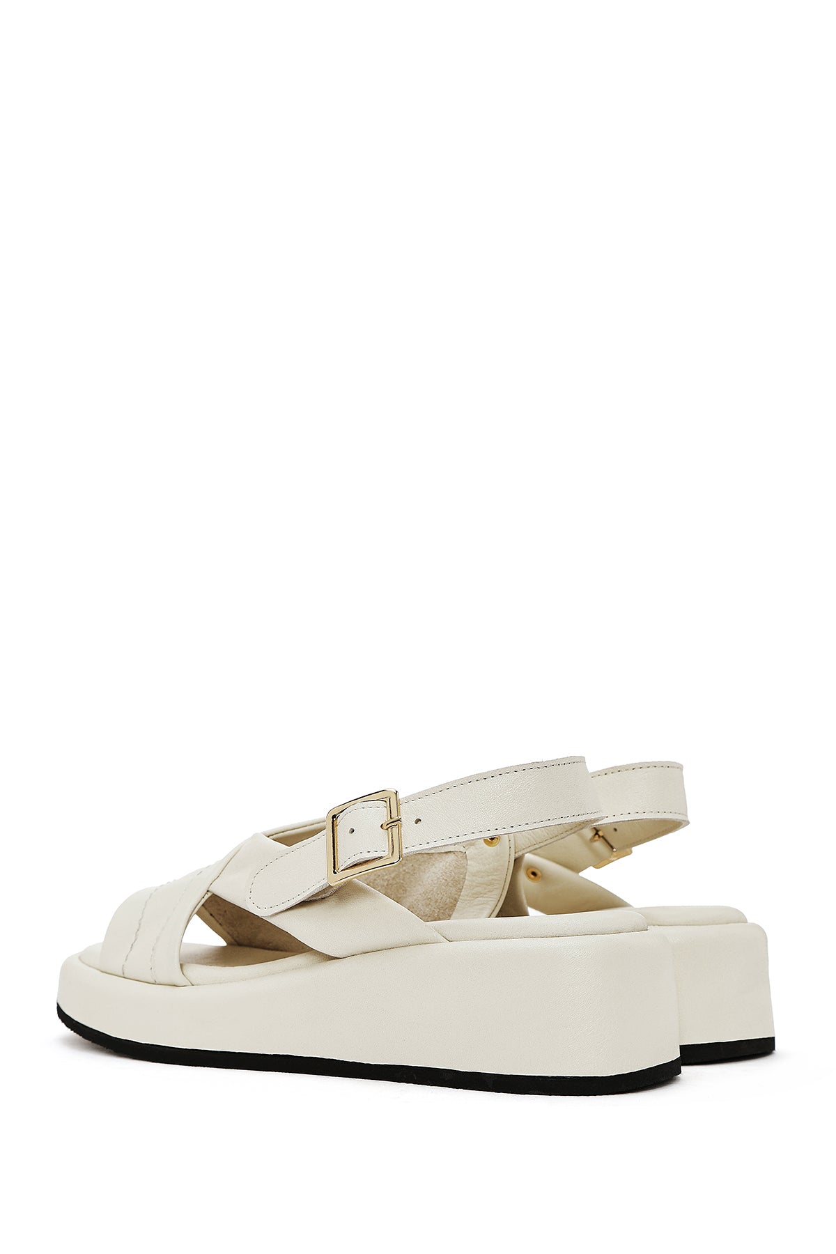 Kadın Bej Bilekten Tokalı Kalın Tabanlı Deri Sandalet