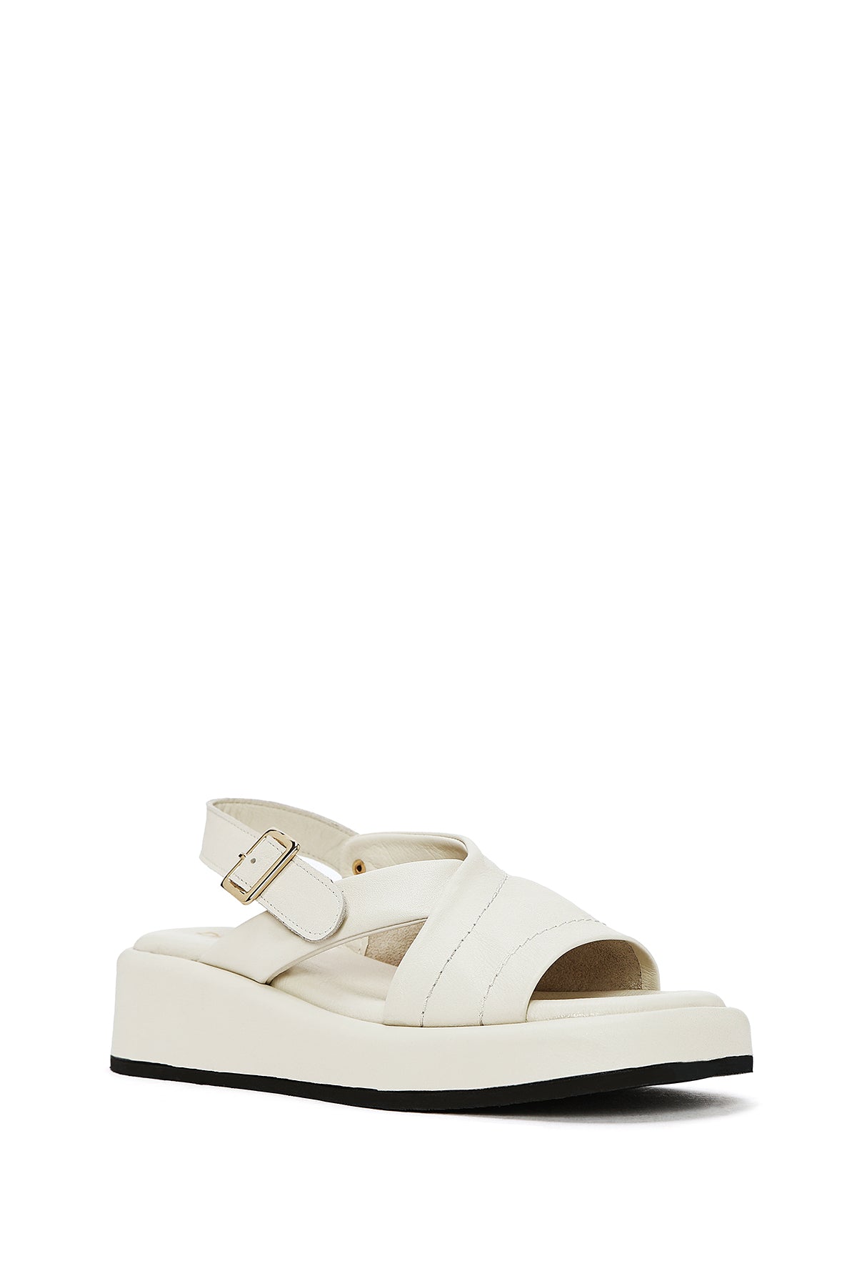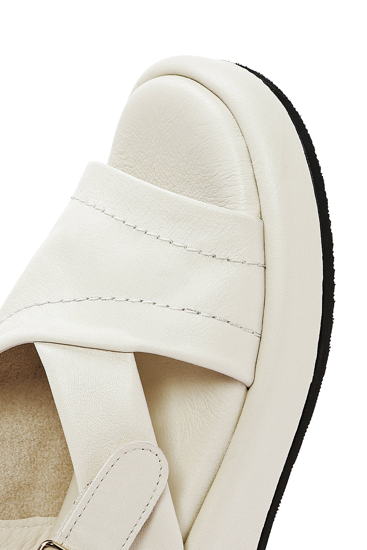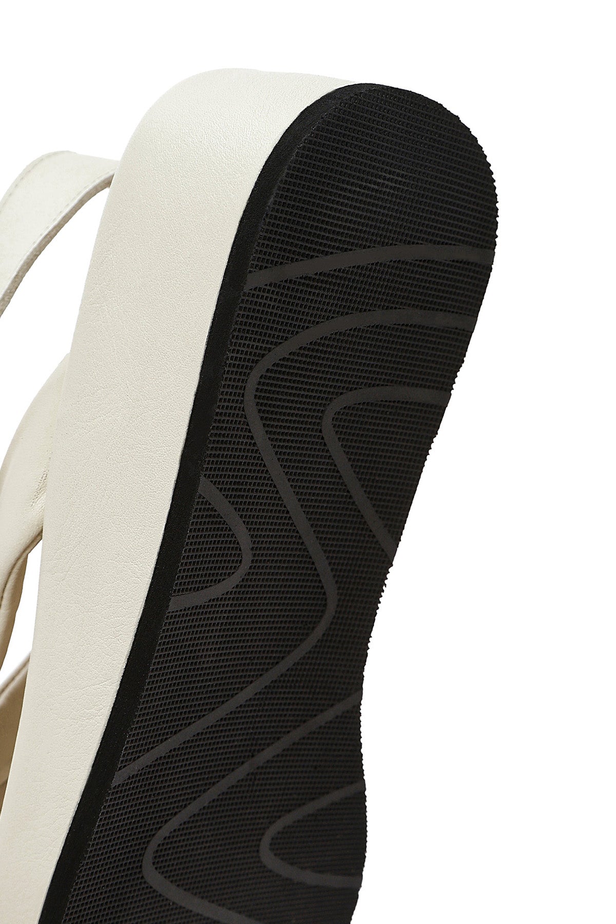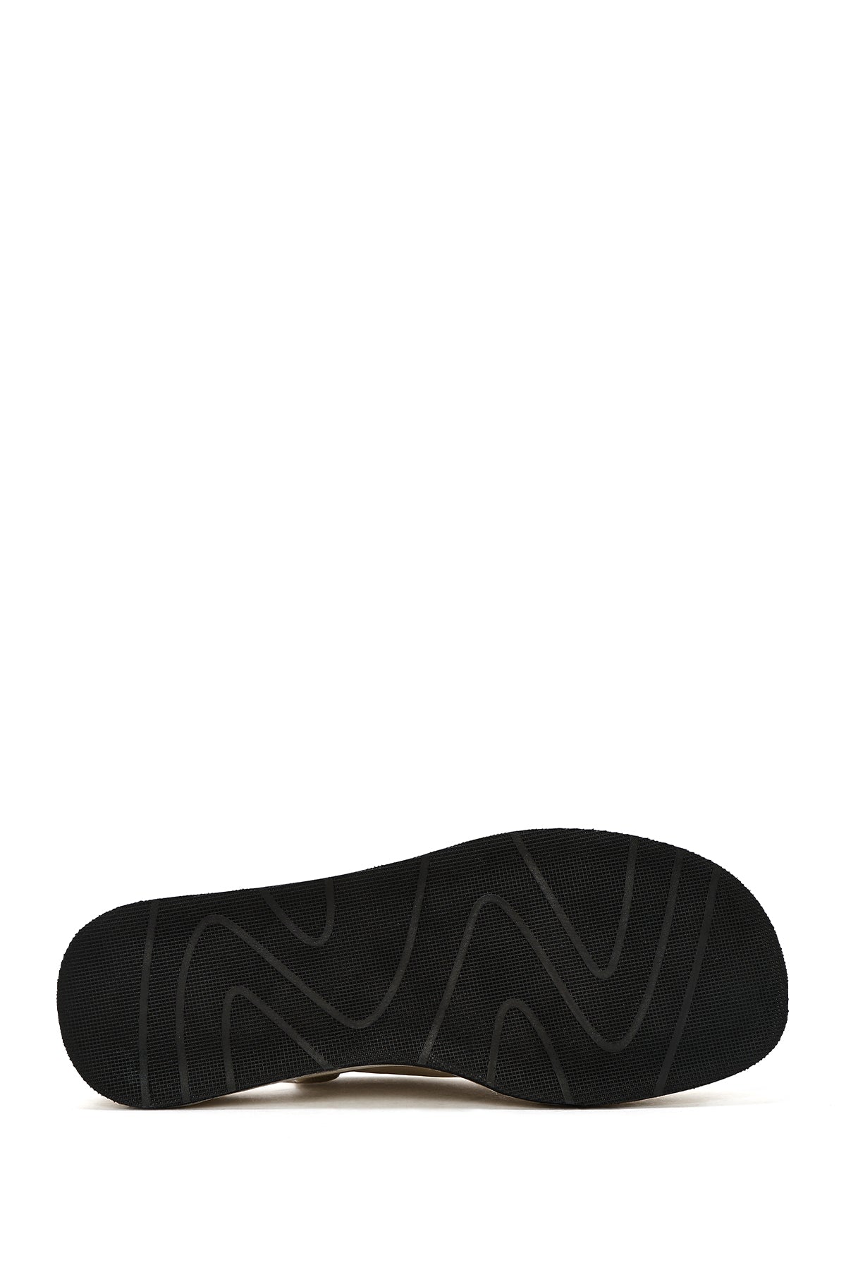 صندل زنانه بژ چرم بنددار تخت ضخیم دری مد