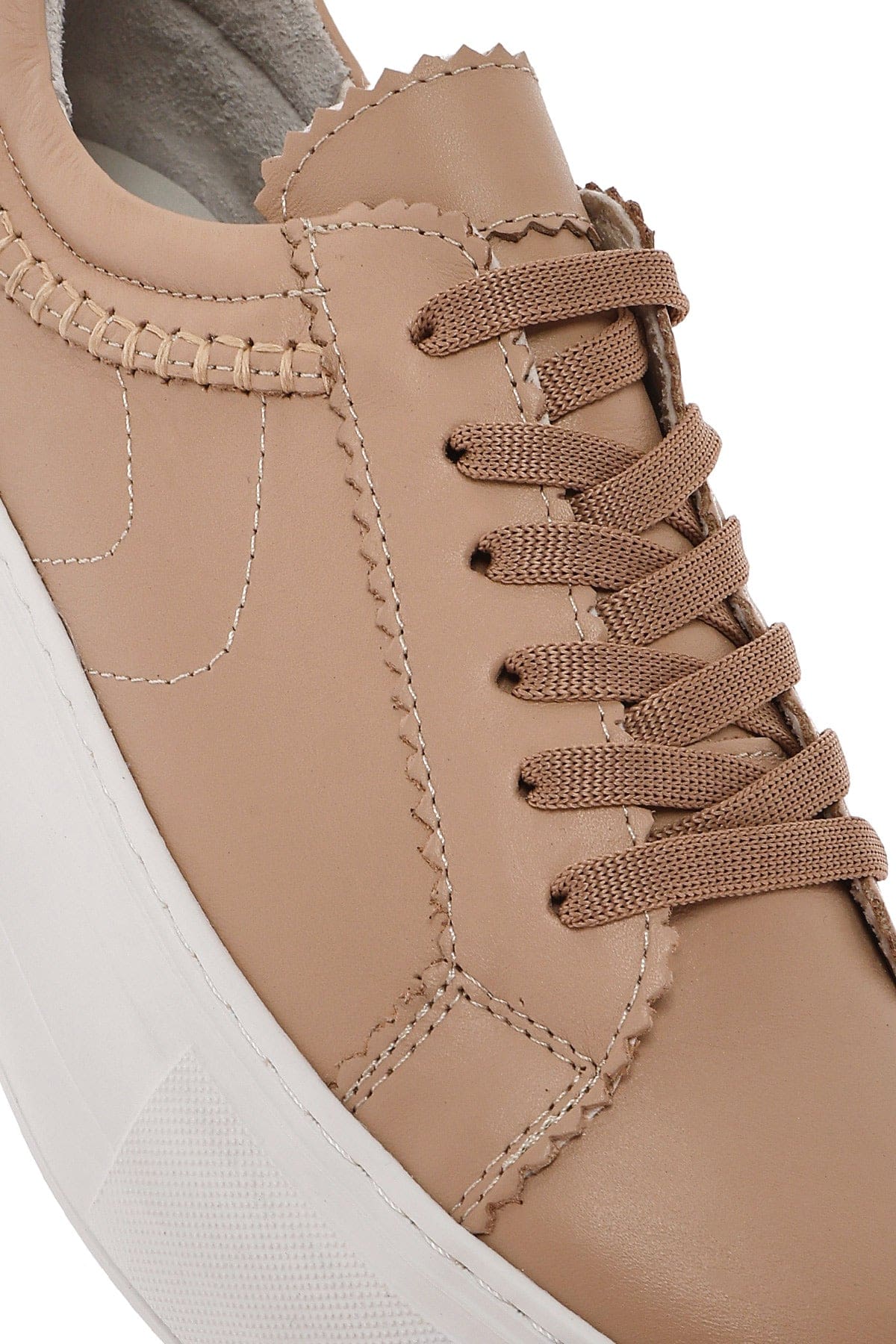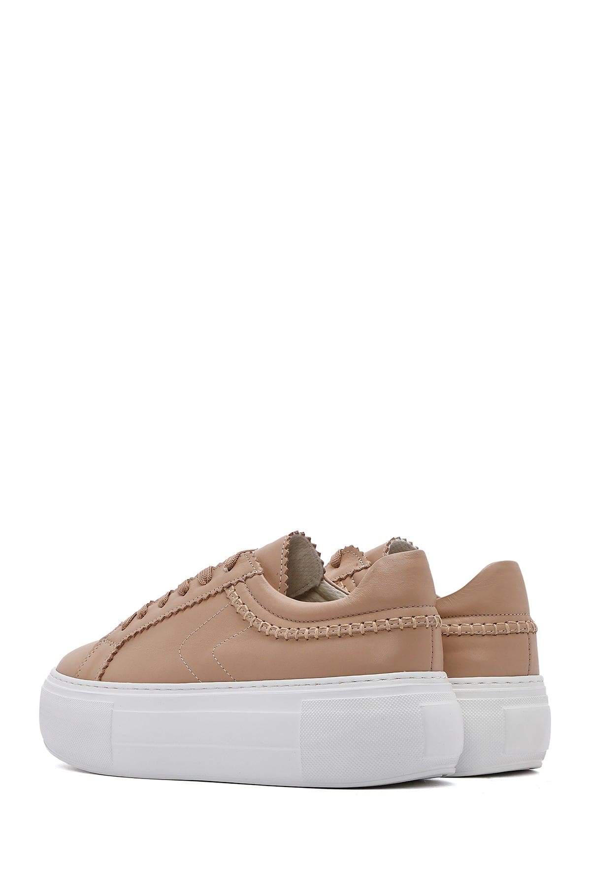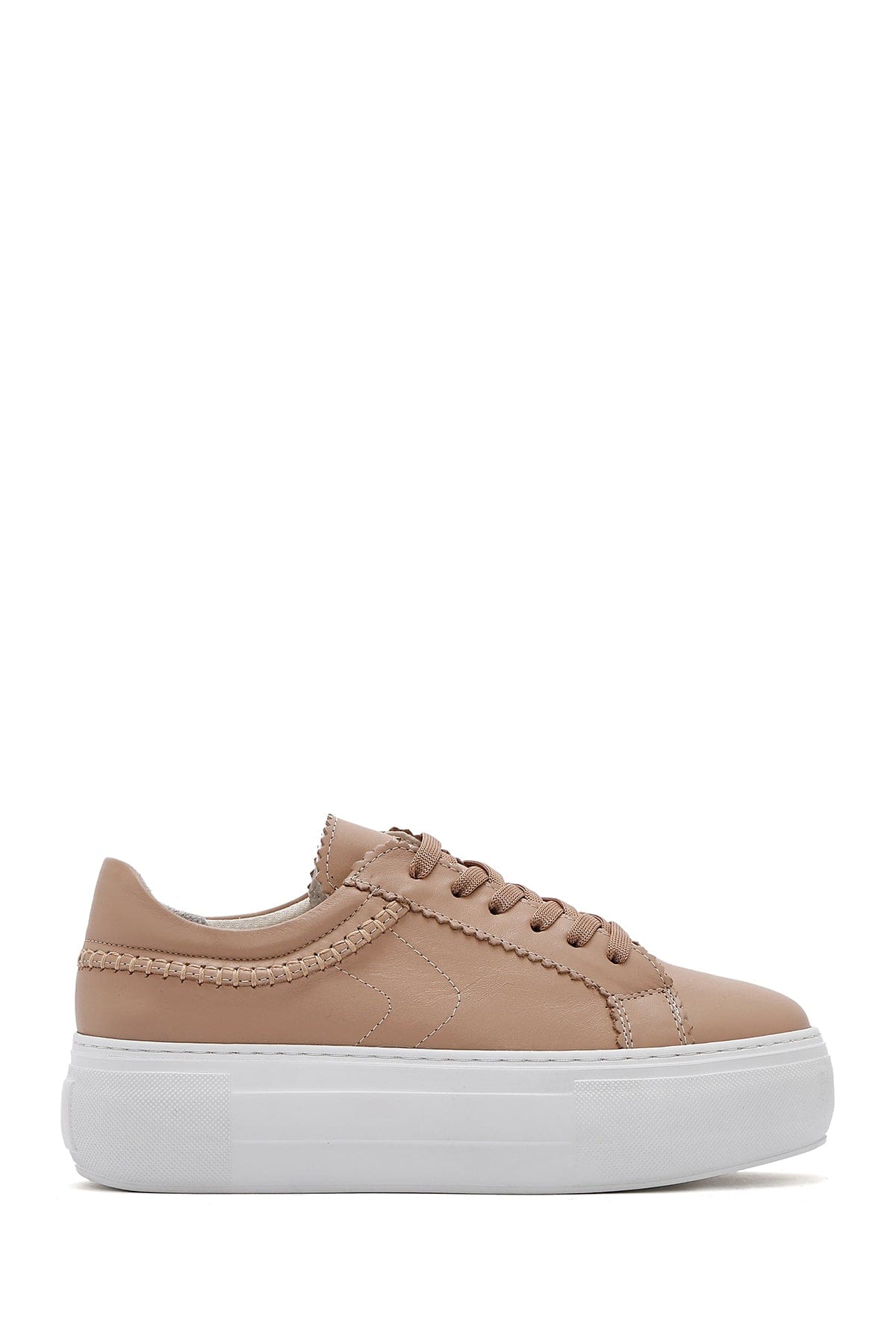 Kadın Bej Bağcıklı Kalın Tabanlı Deri Sneaker