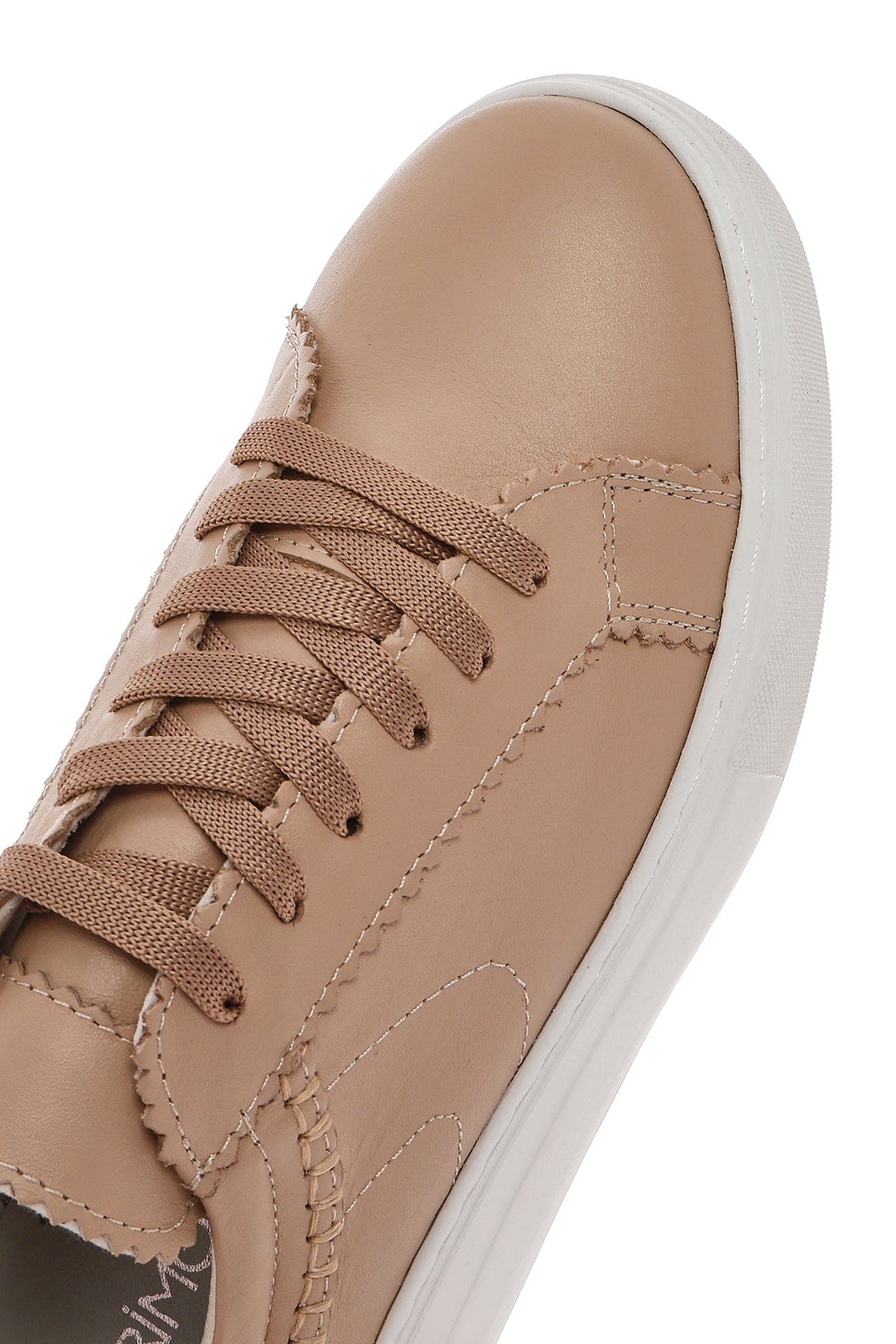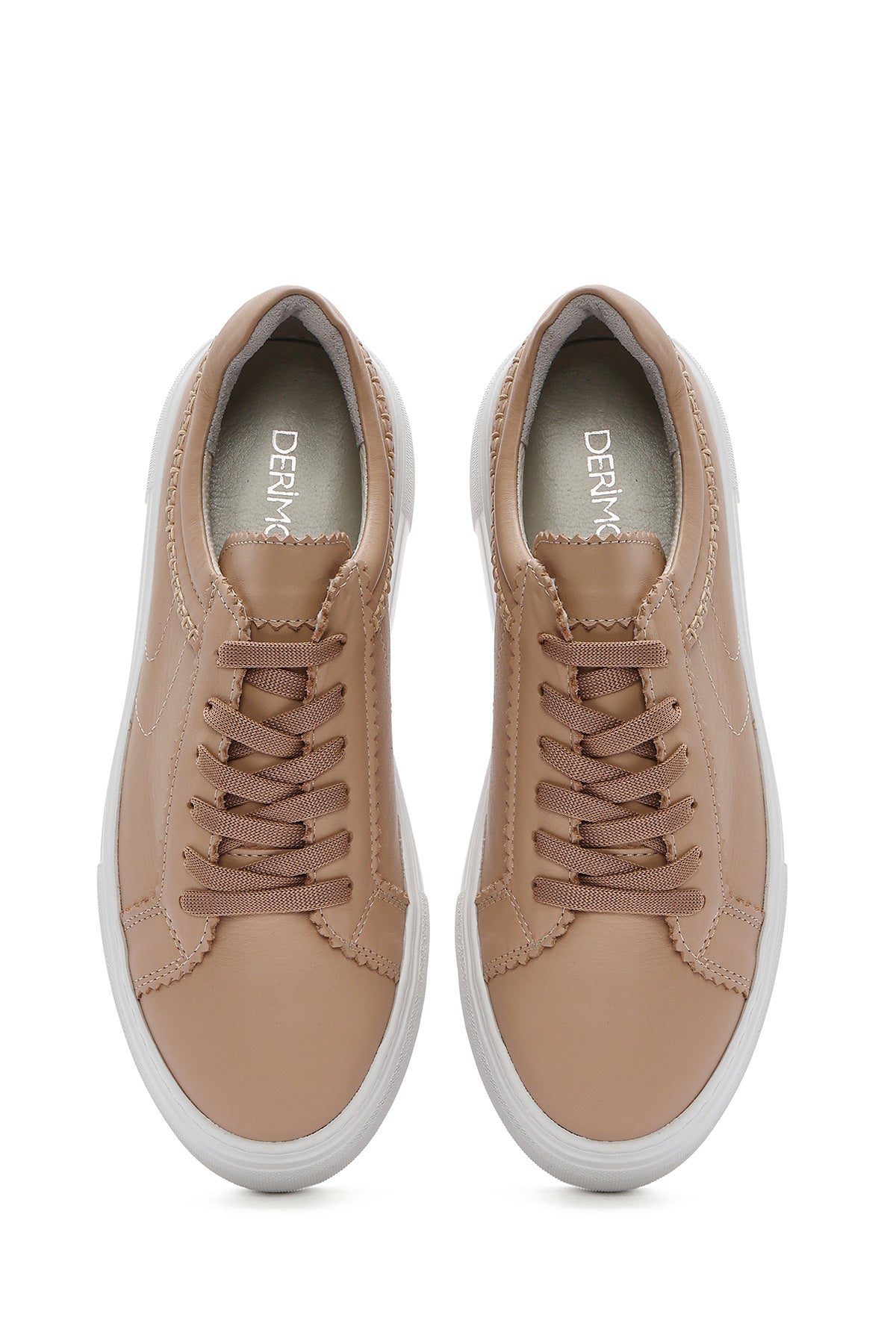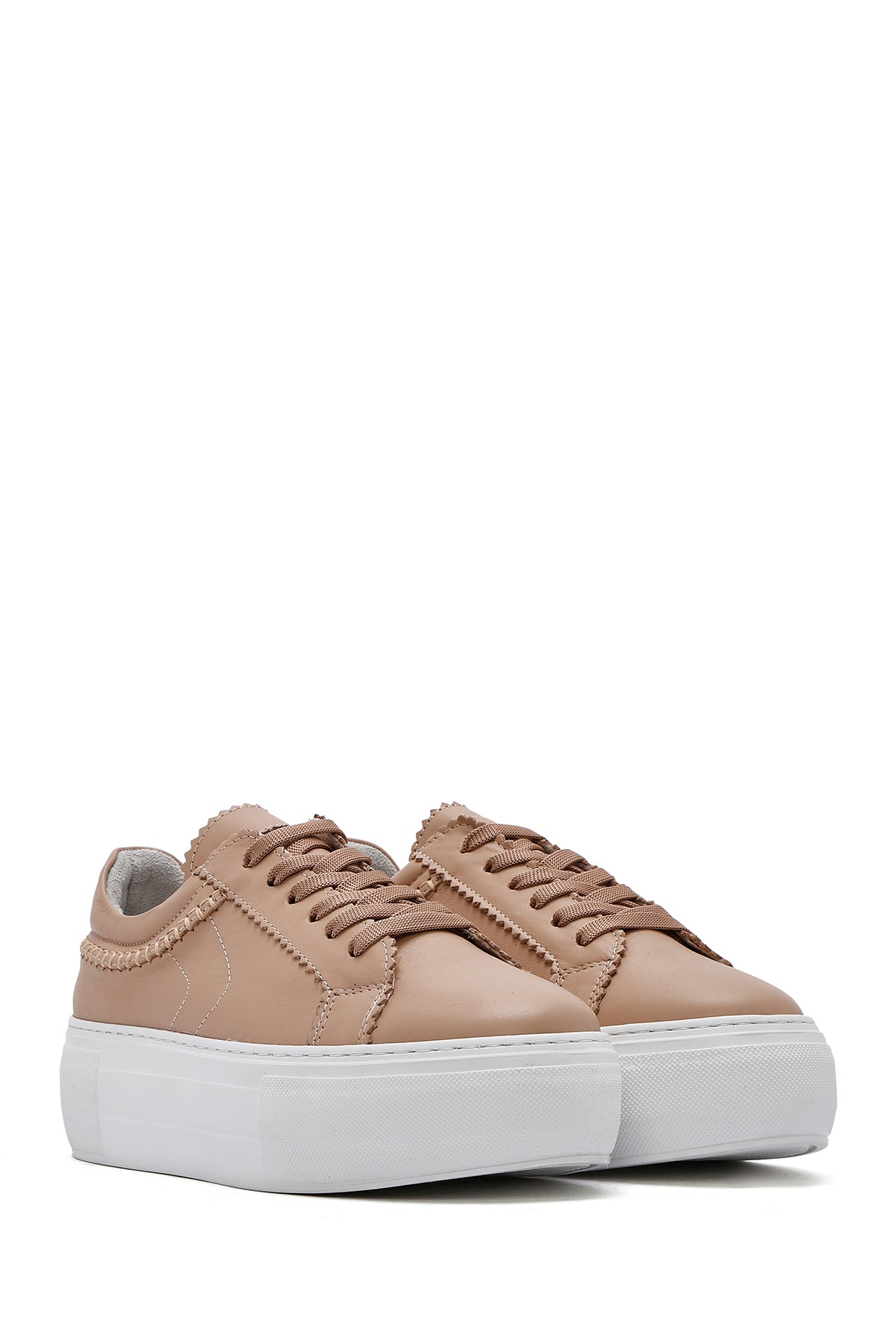 Kadın Bej Bağcıklı Kalın Tabanlı Deri Sneaker