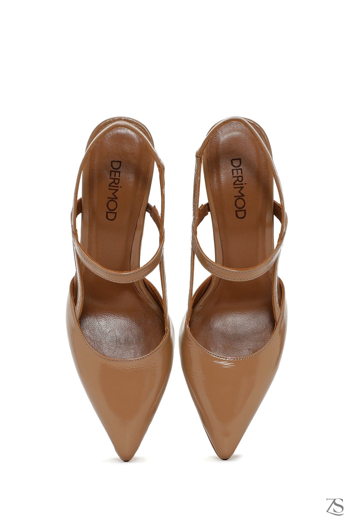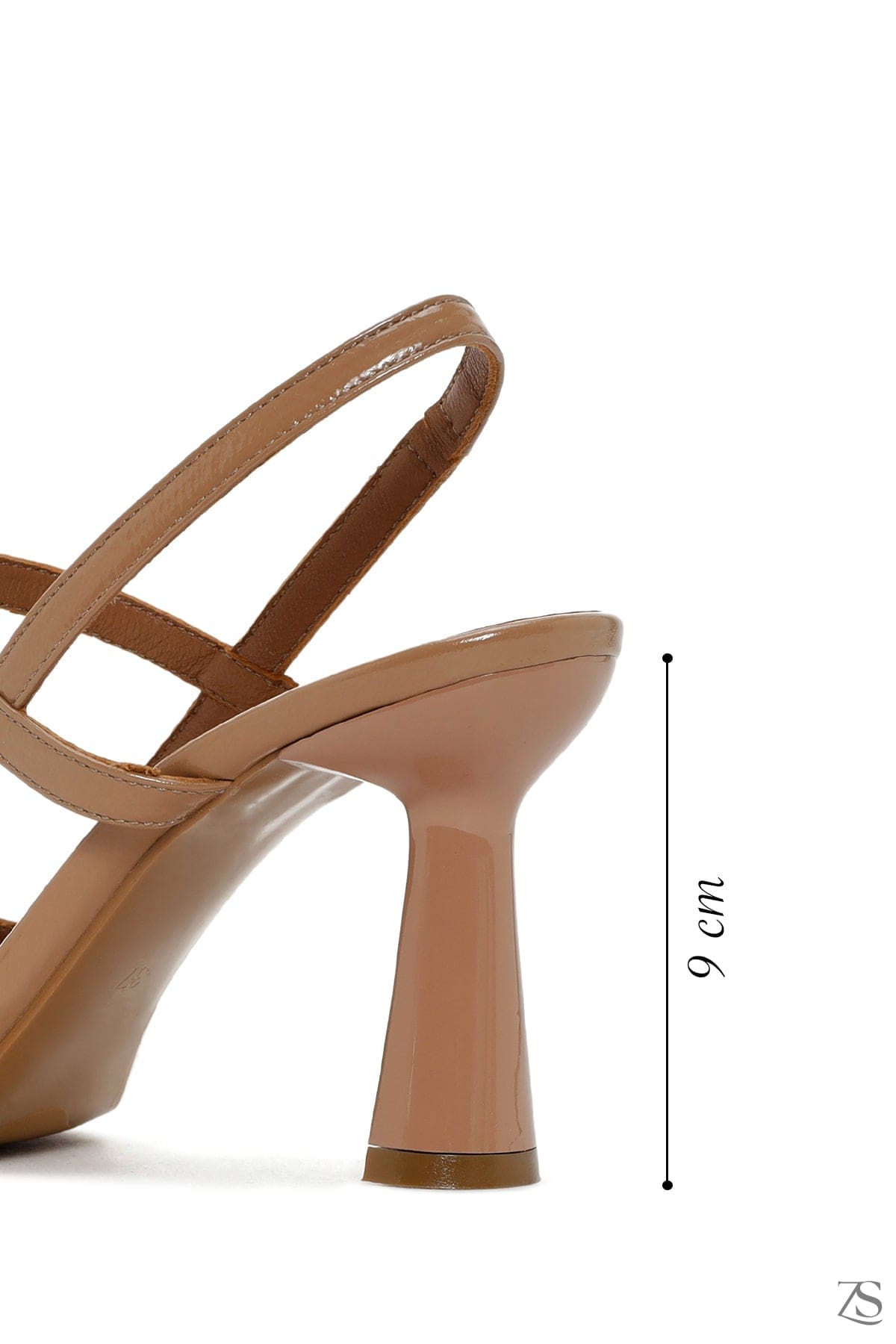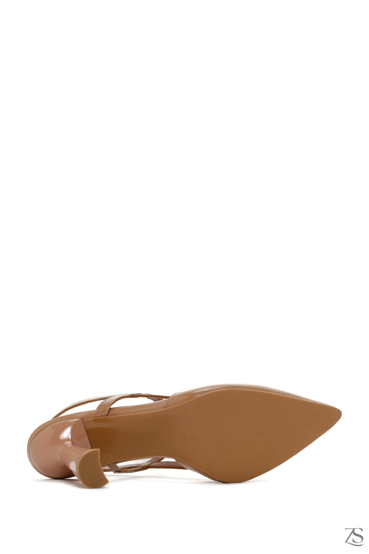 کفش زنانه بژ چرم پاشنهضخیم پشت باز دری مد
