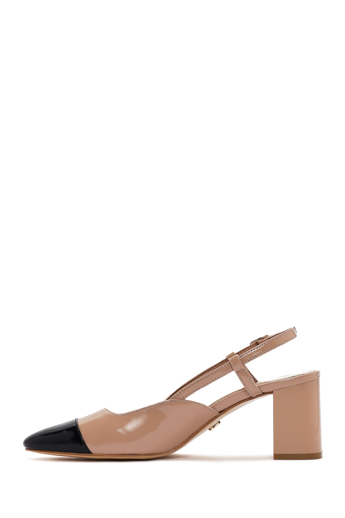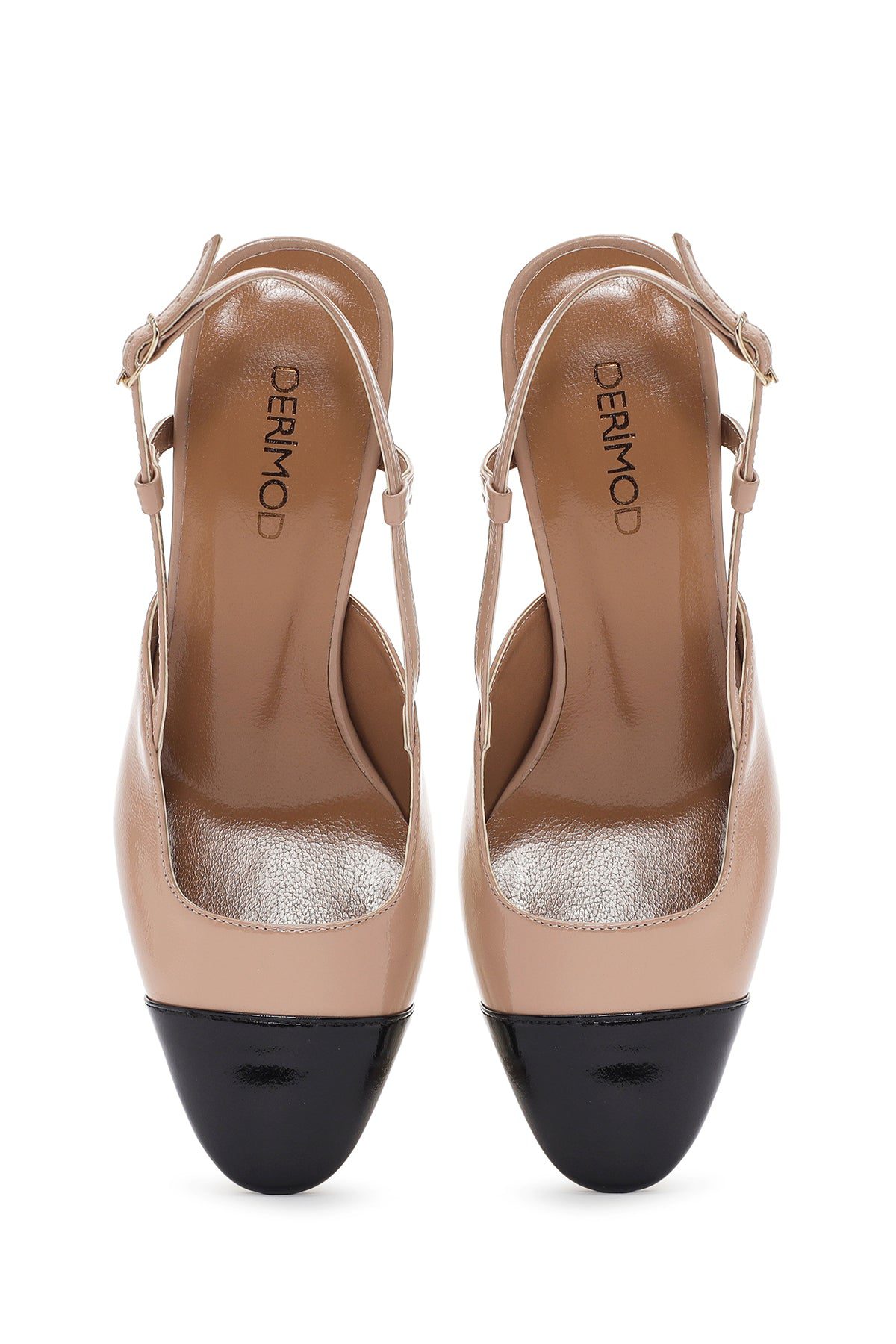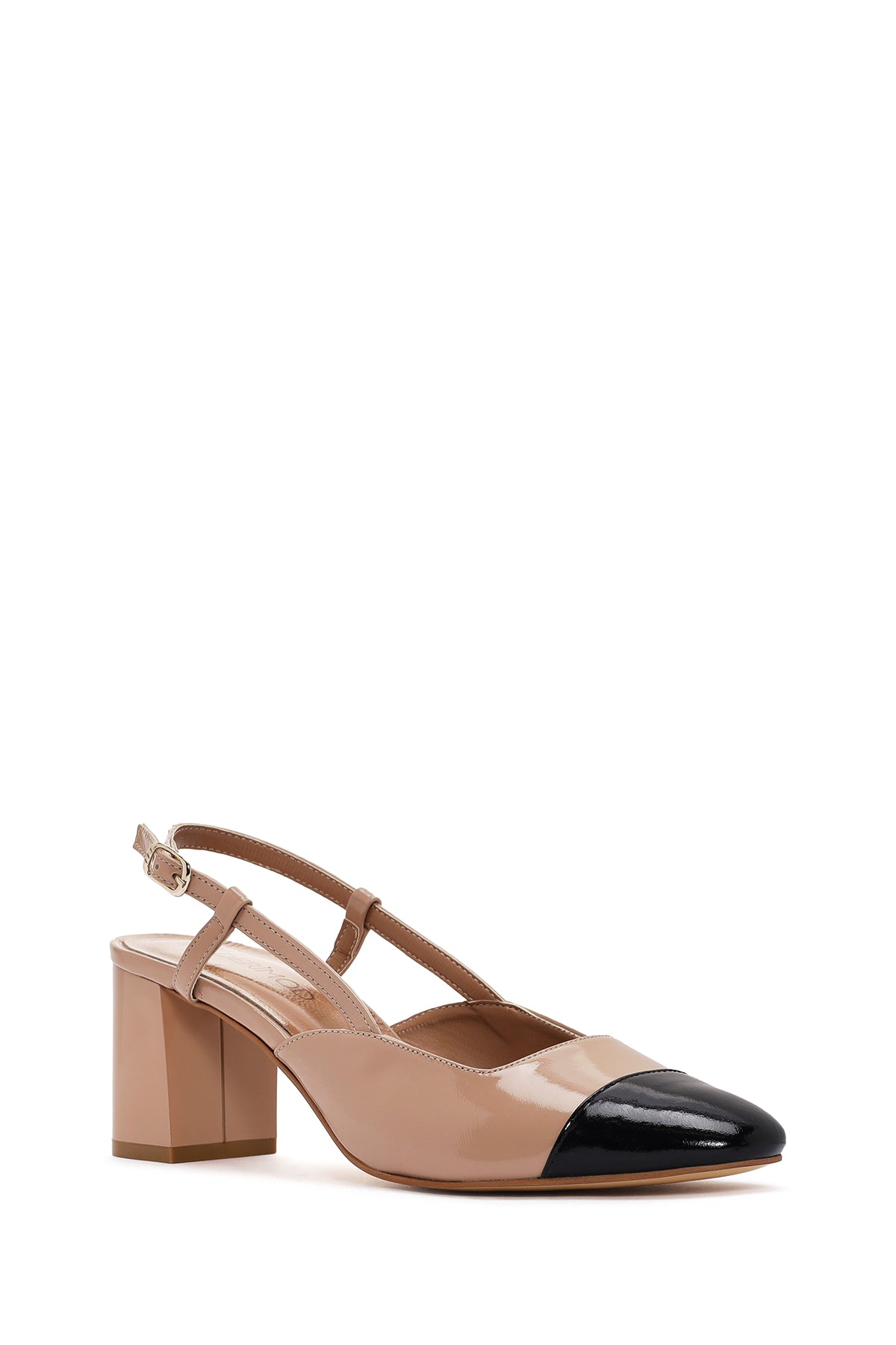 Kadın Bej Arkası Açık Kalın Topuklu Deri Ayakkabı