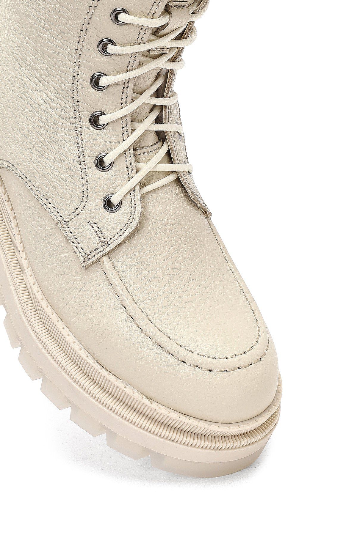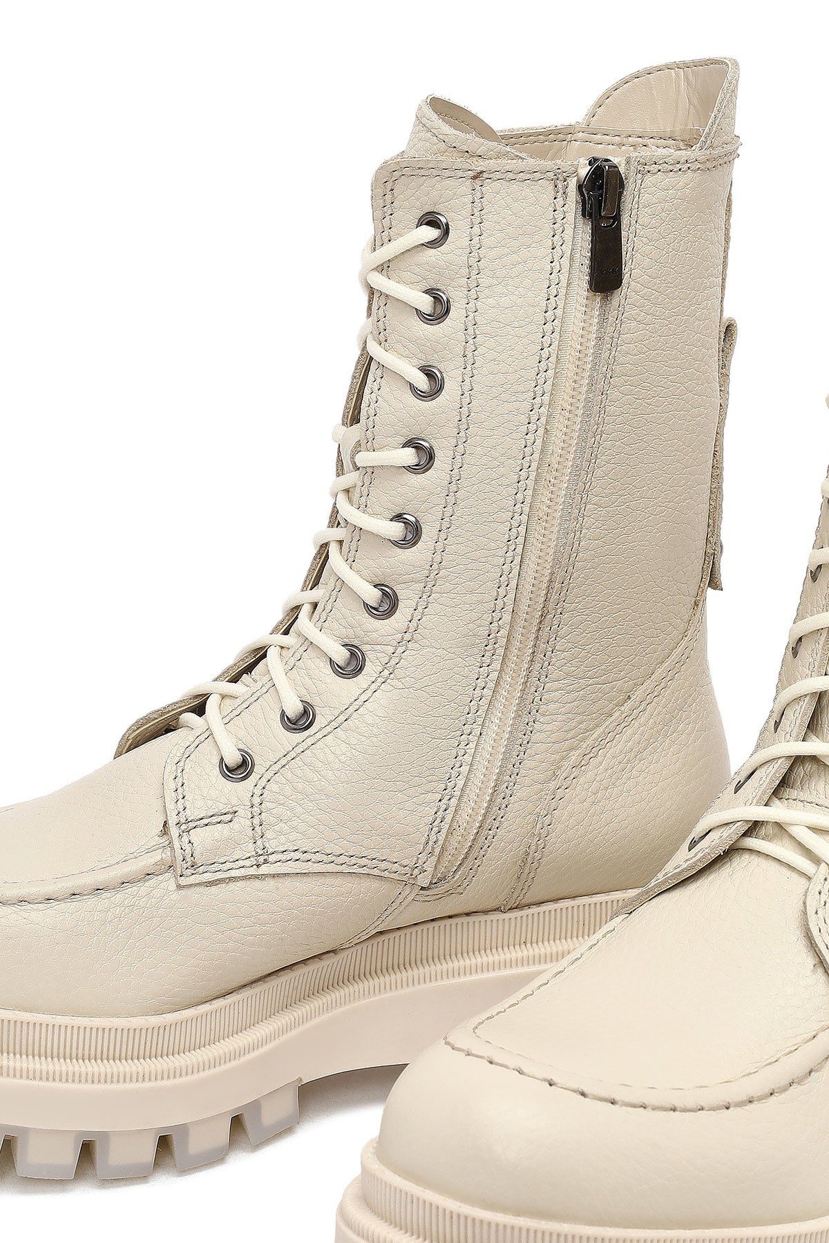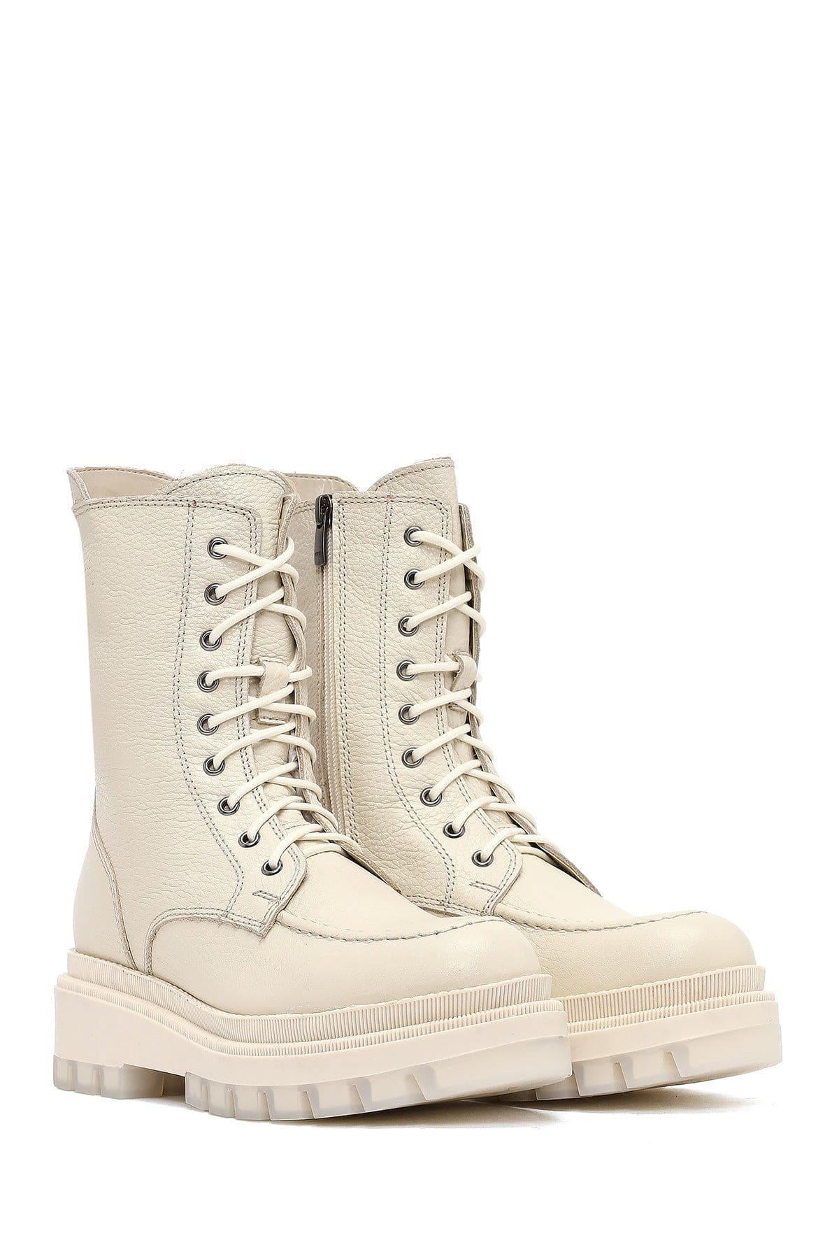 Kadın Bej Fermuarlı Kalın Tabanlı Deri Postal Bot