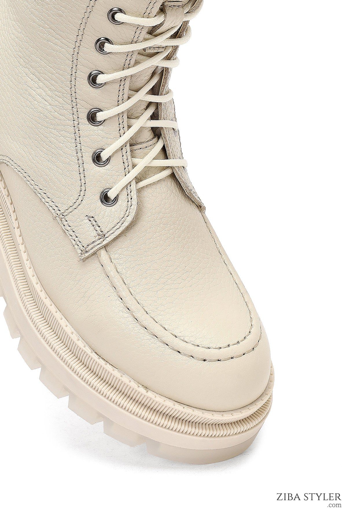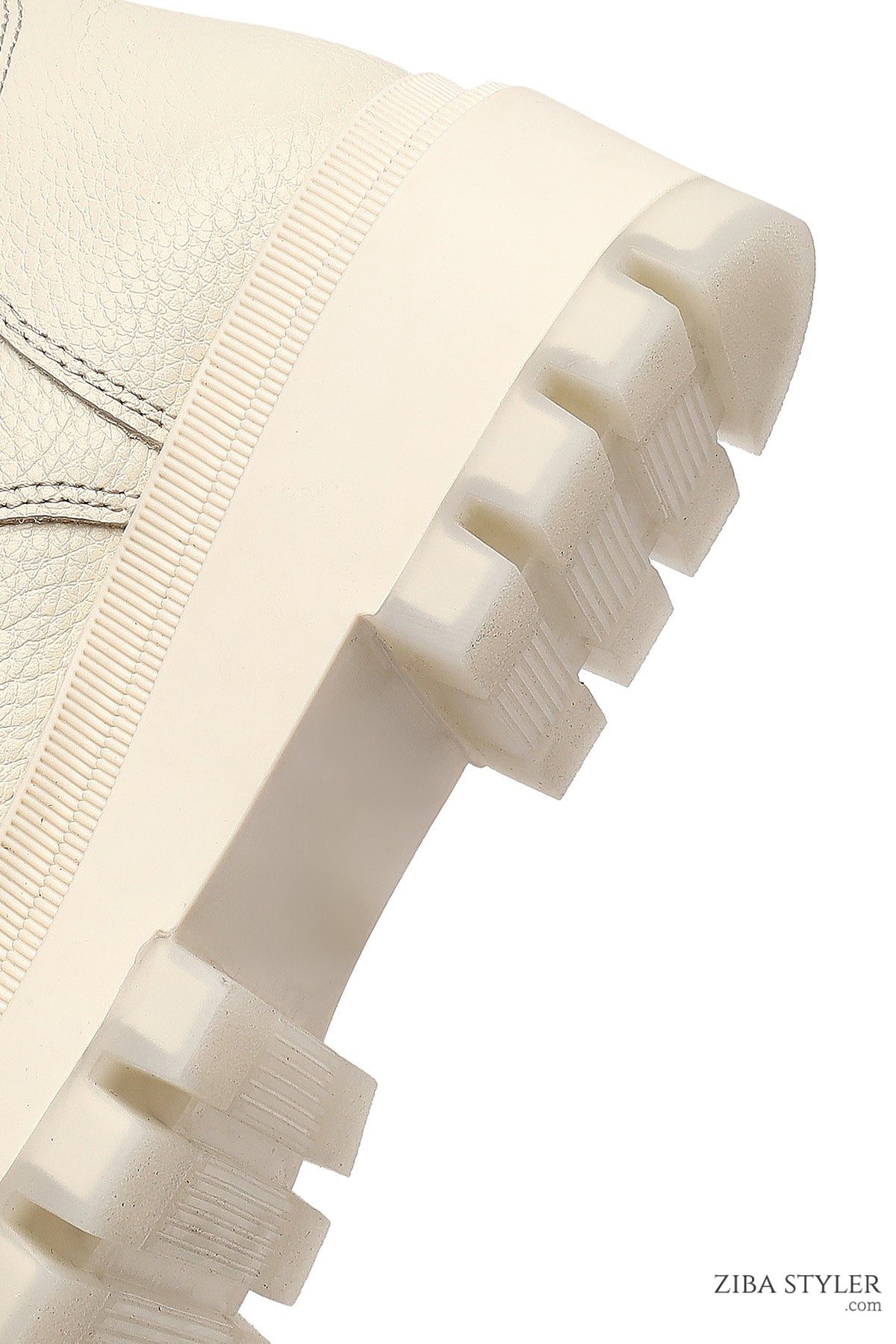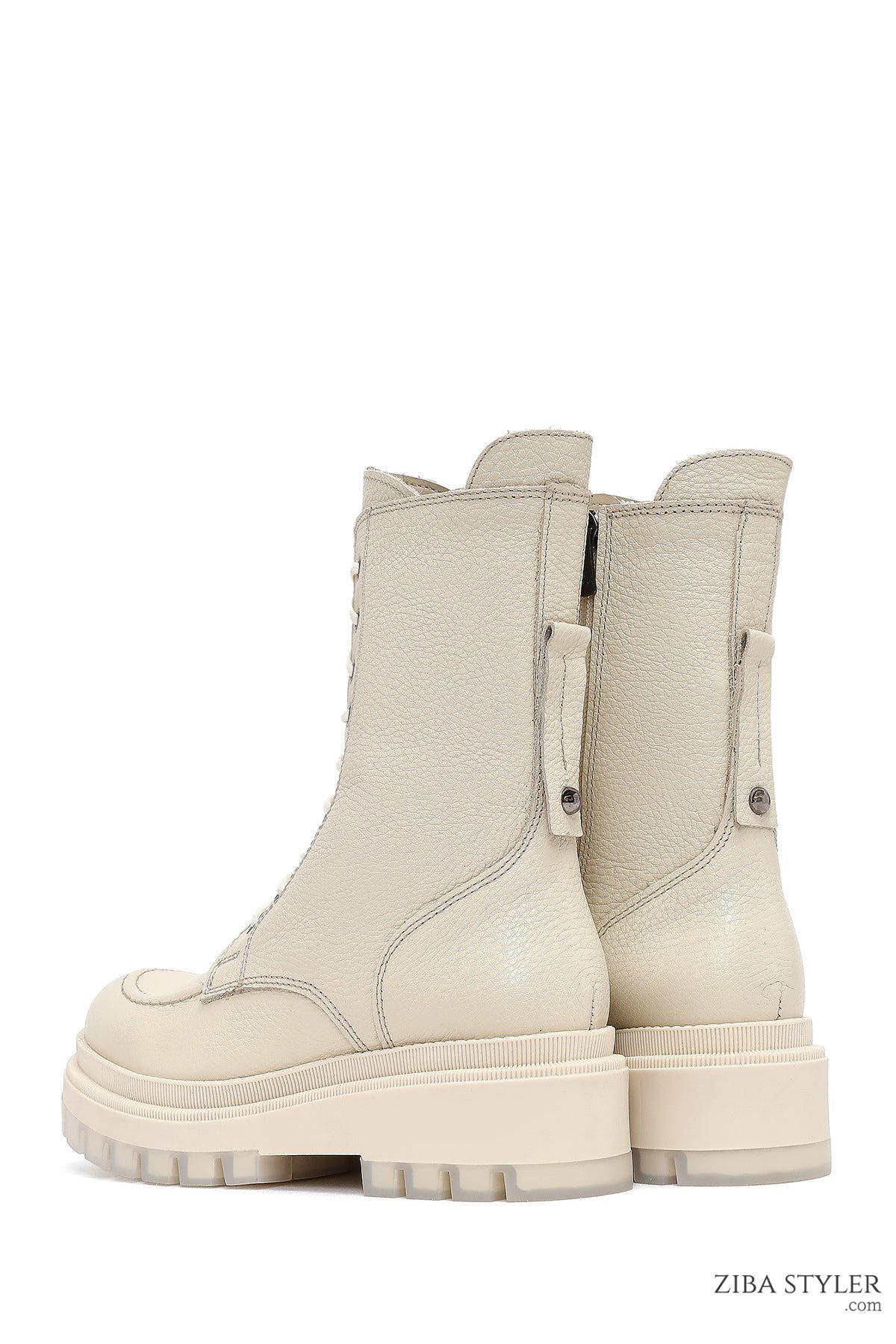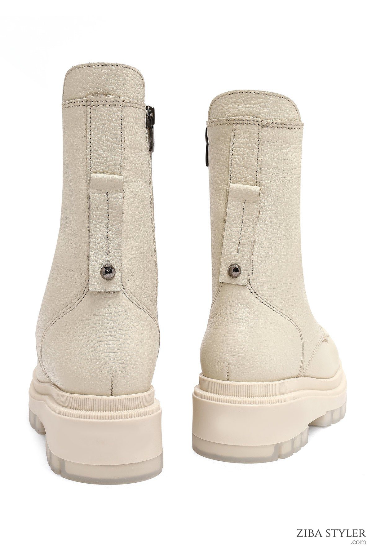 بوت پستال زنانه چرمی بژ کفی ضخیم زیپ دار دری مد