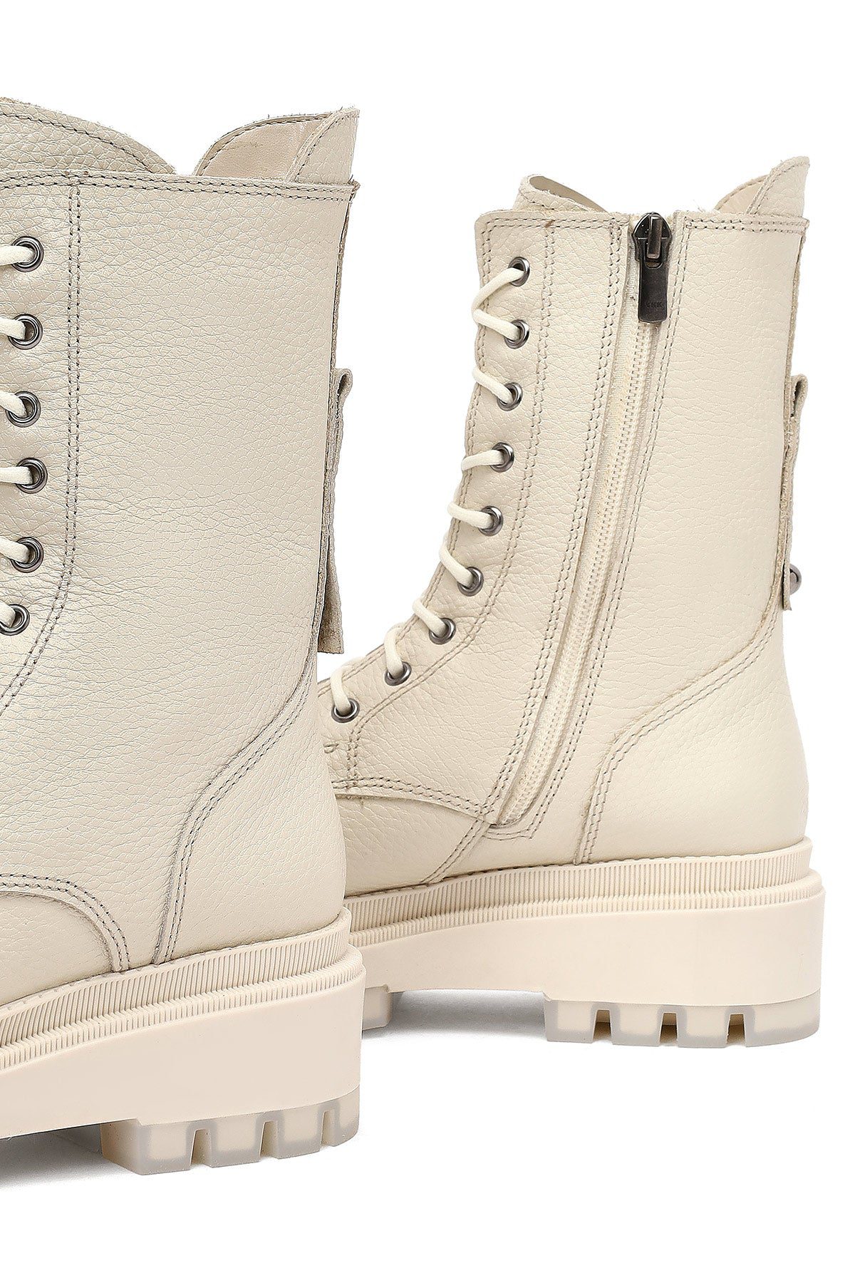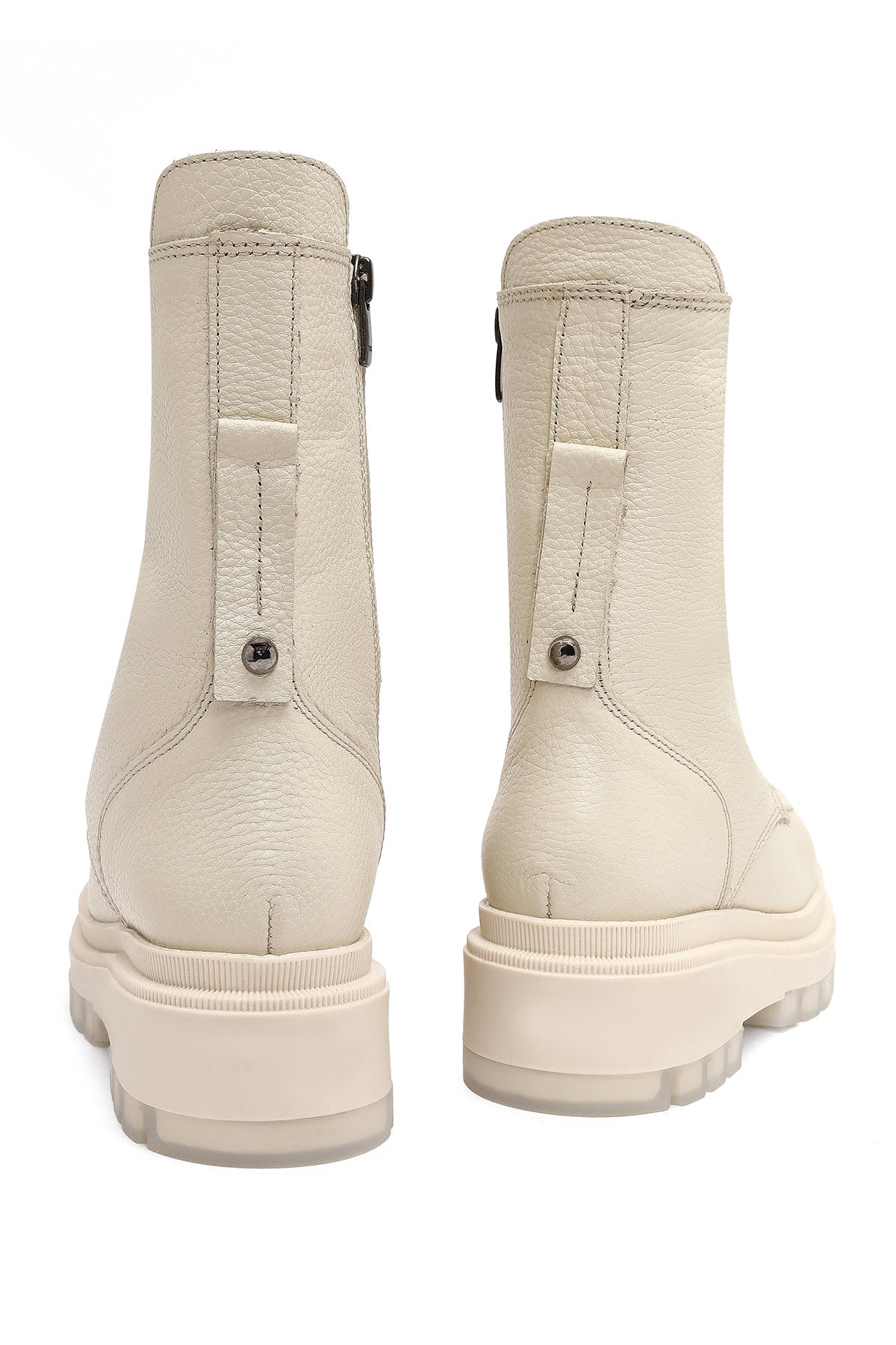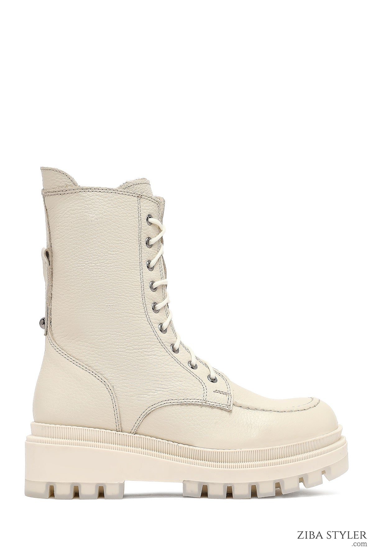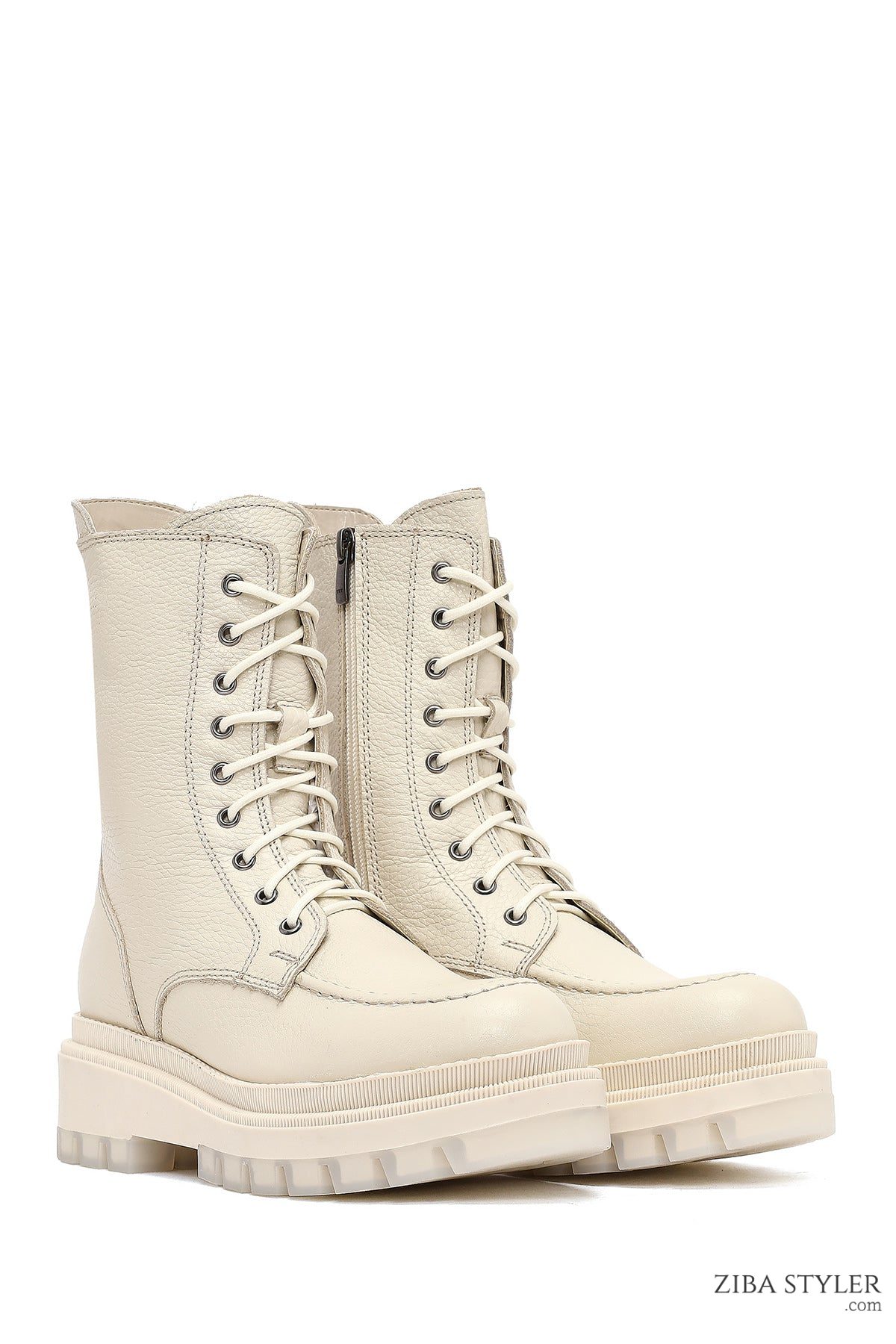 بوت پستال زنانه چرمی بژ کفی ضخیم زیپ دار دری مد