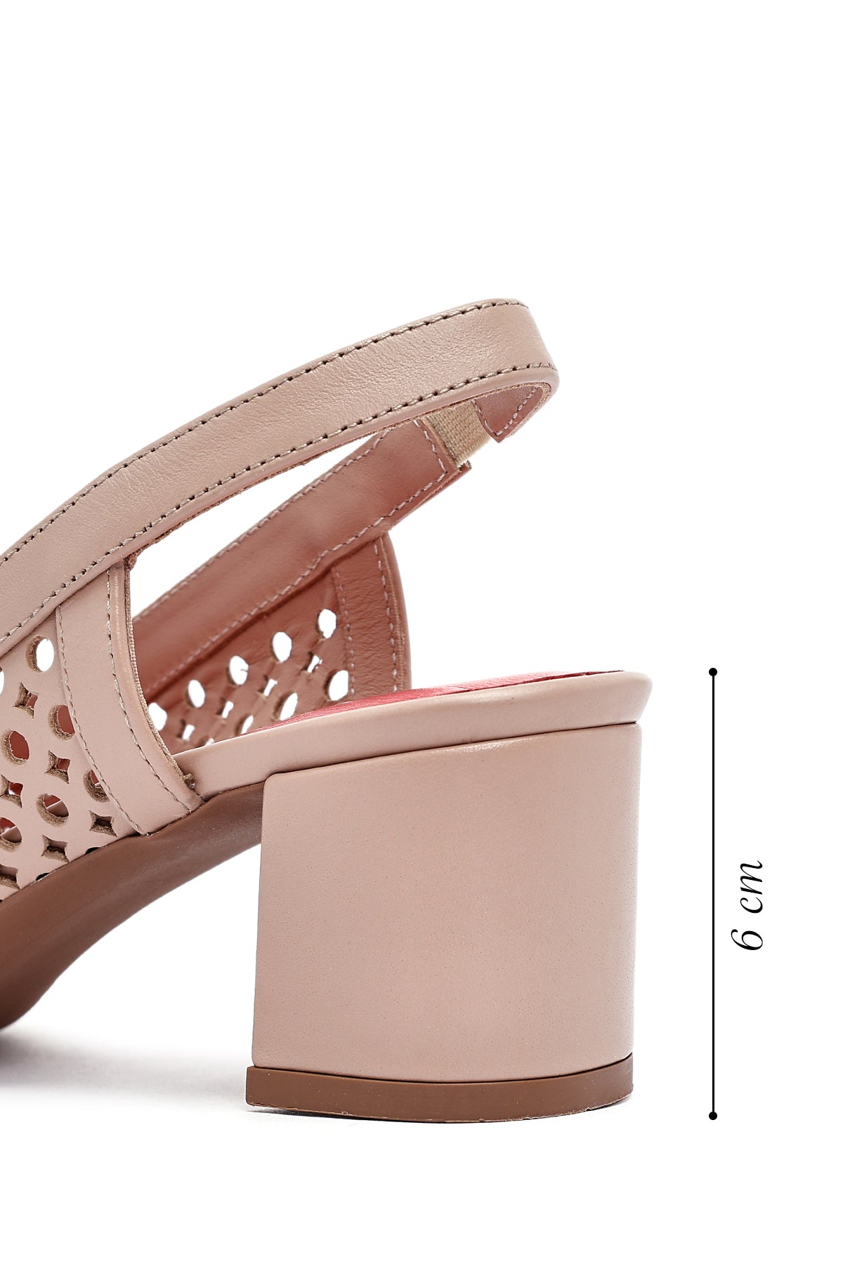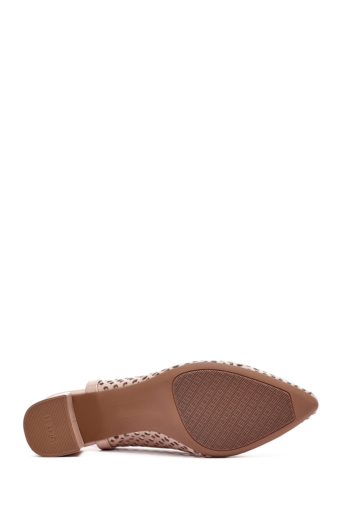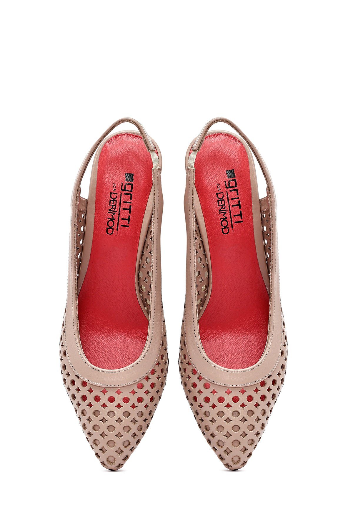 Derimod Gritti Kadın Bej Arkası Açık Kısa Kalın Topuklu Deri Ayakkabı