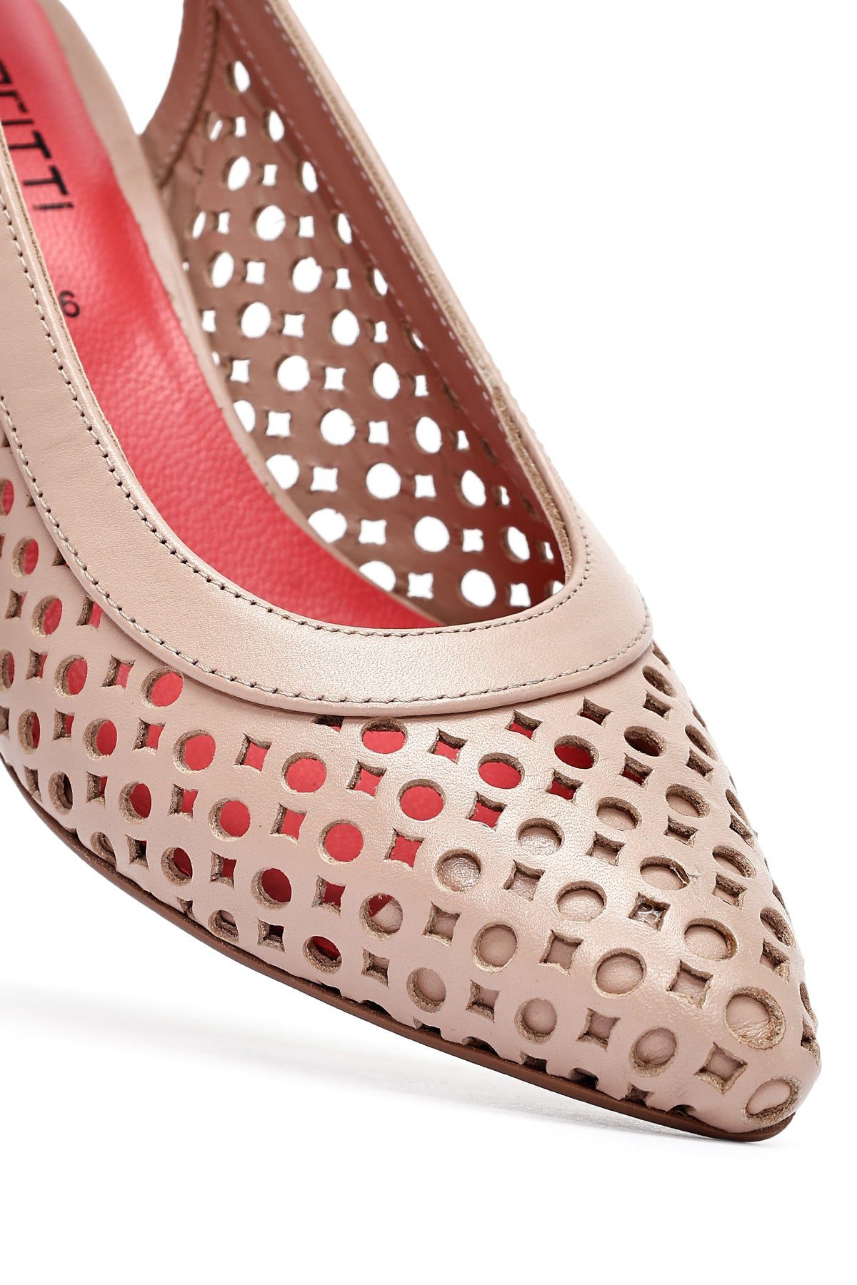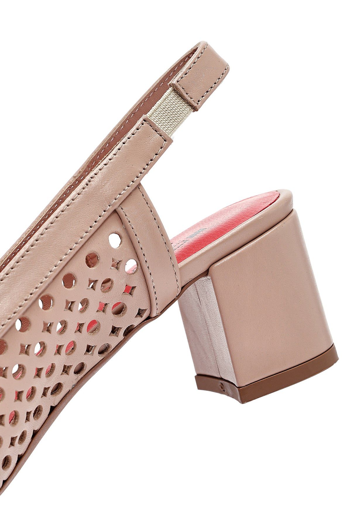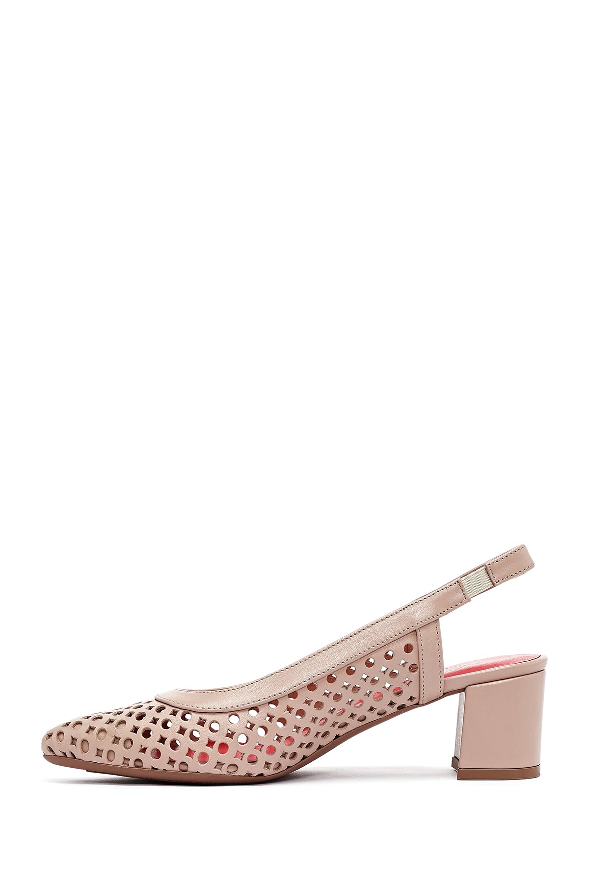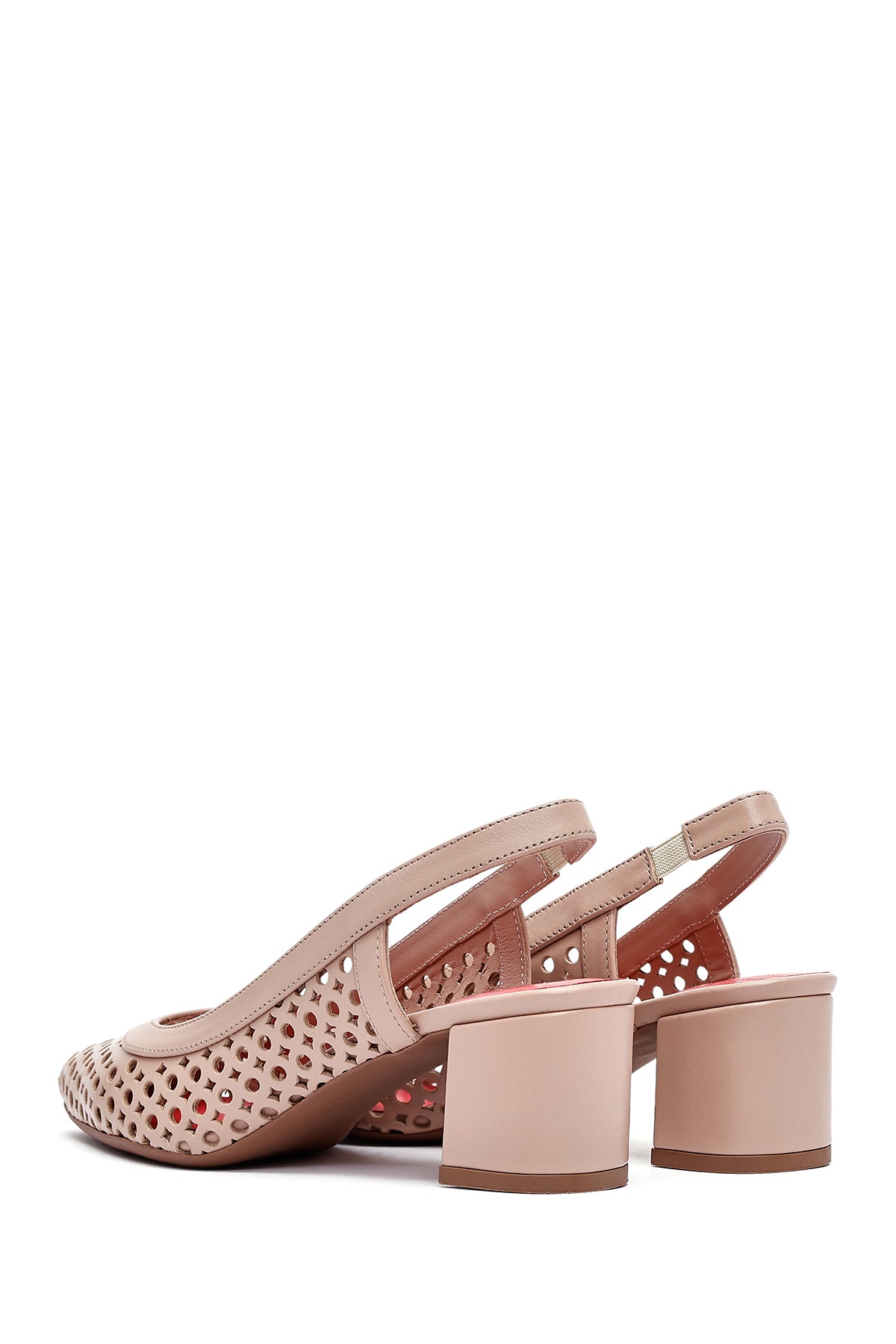 کفش زنانه بژ چرم پاشنهضخیم کوتاه پشت باز دری مد