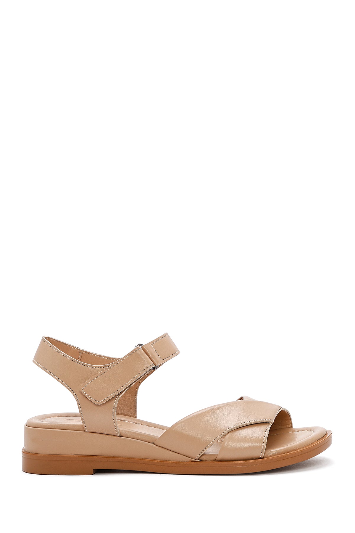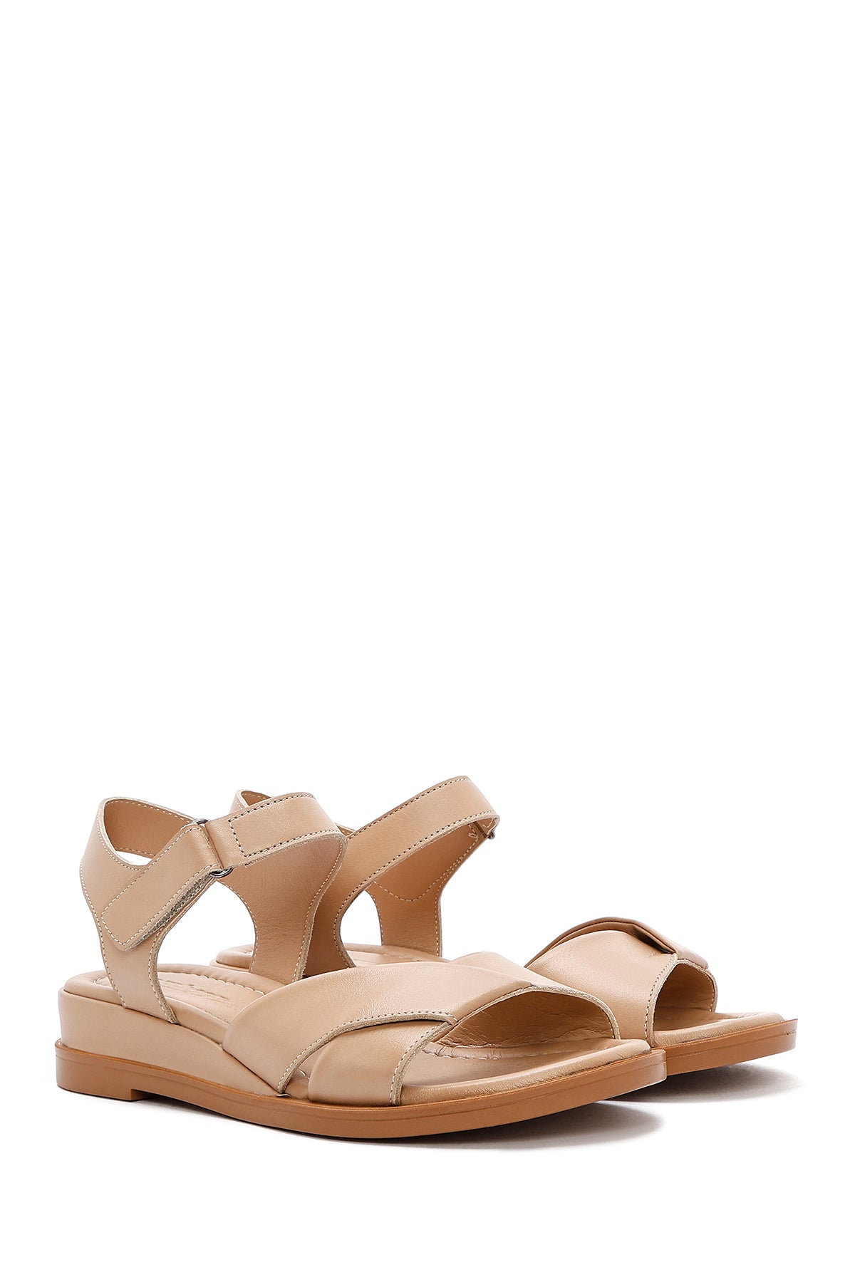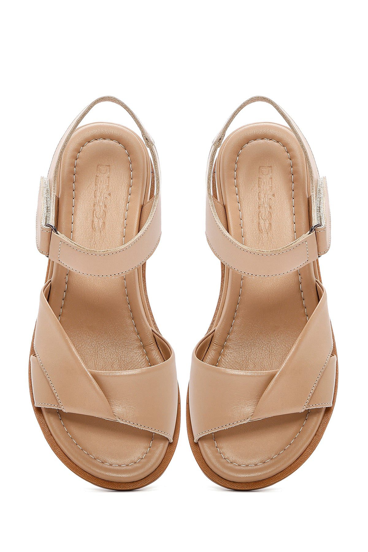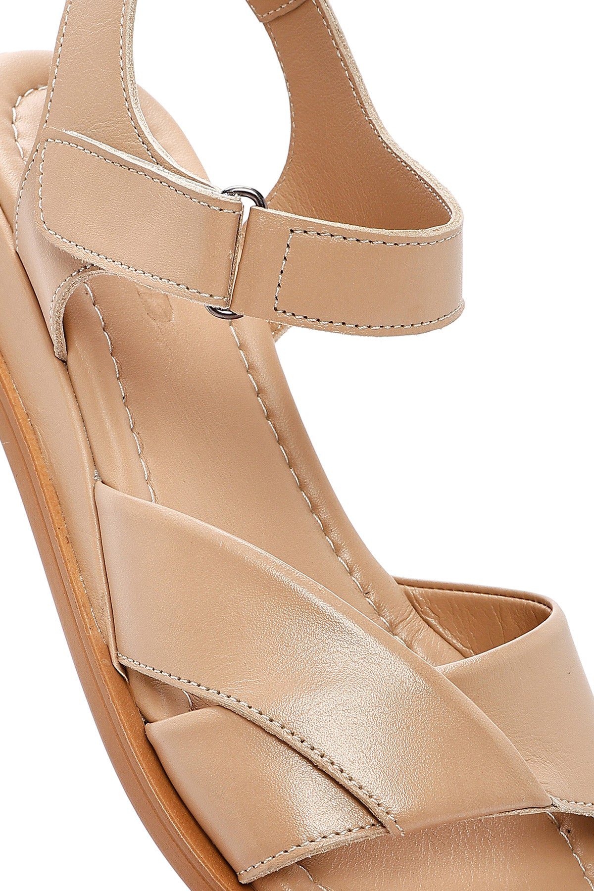 Kadın Bej Bantlı Deri Sandalet