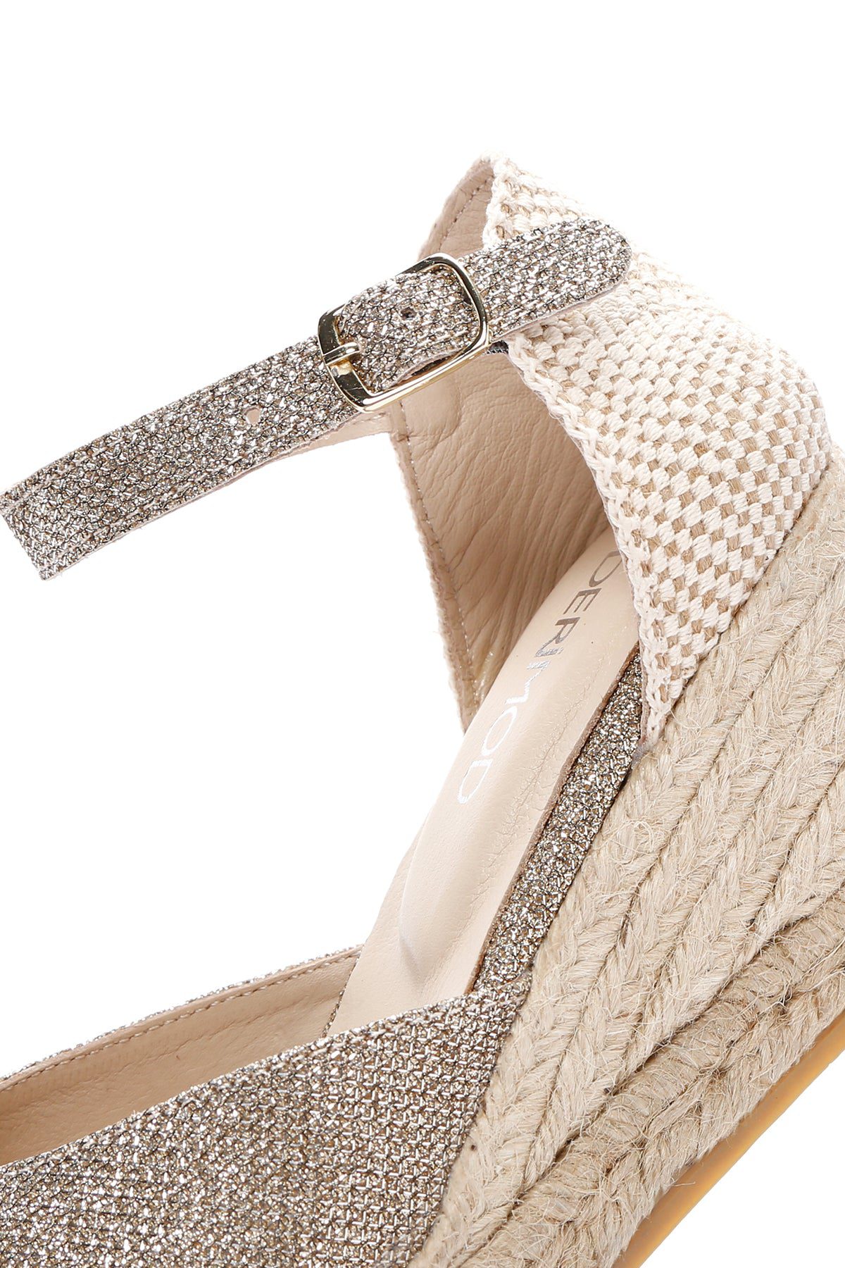 اسپادریل زنانه چرمی بژ بندی با پاشنه لژ دری مد
