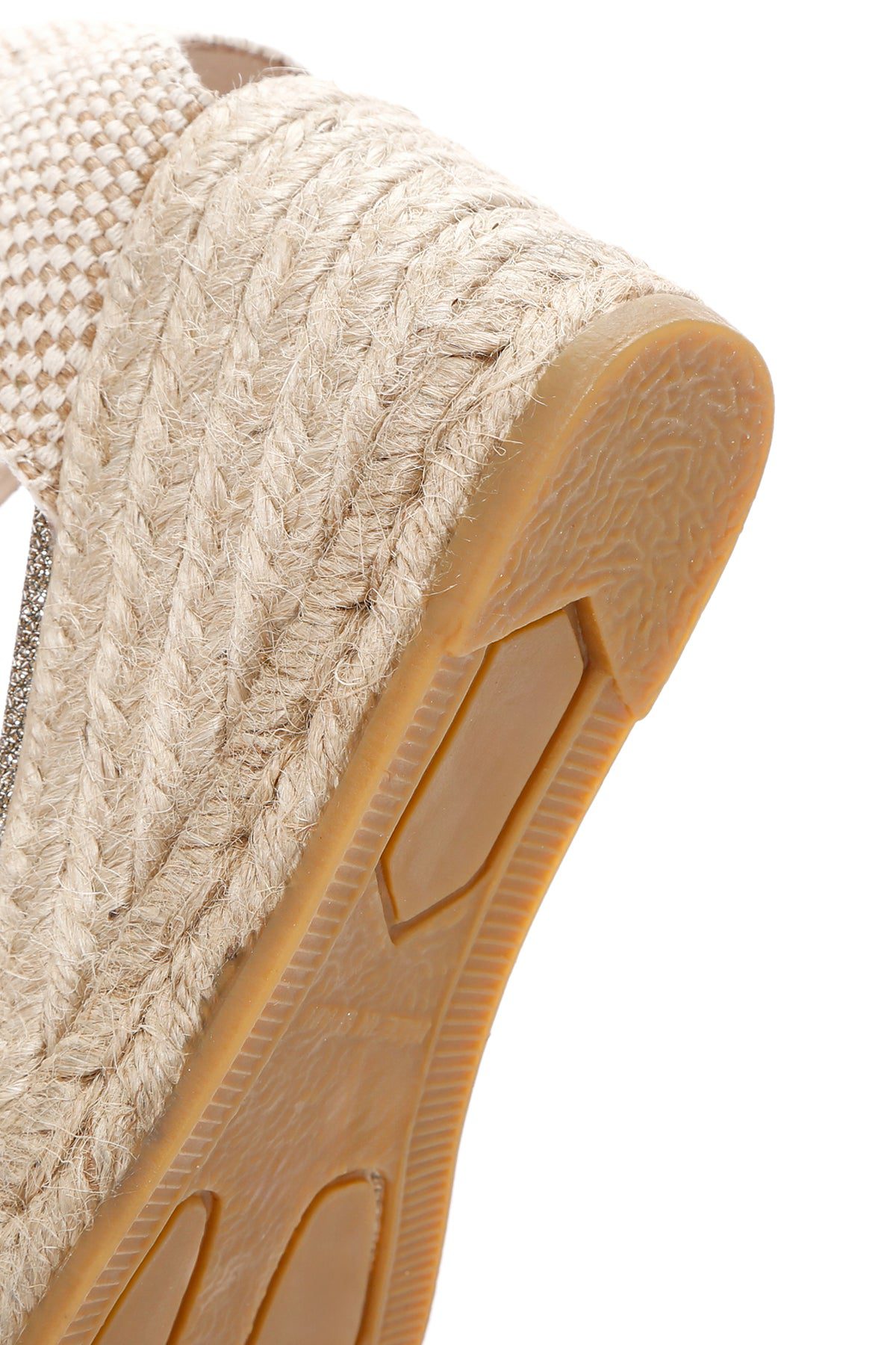 Kadın Bej Bilekten Bantlı Dolgu Topuklu Deri Espadril