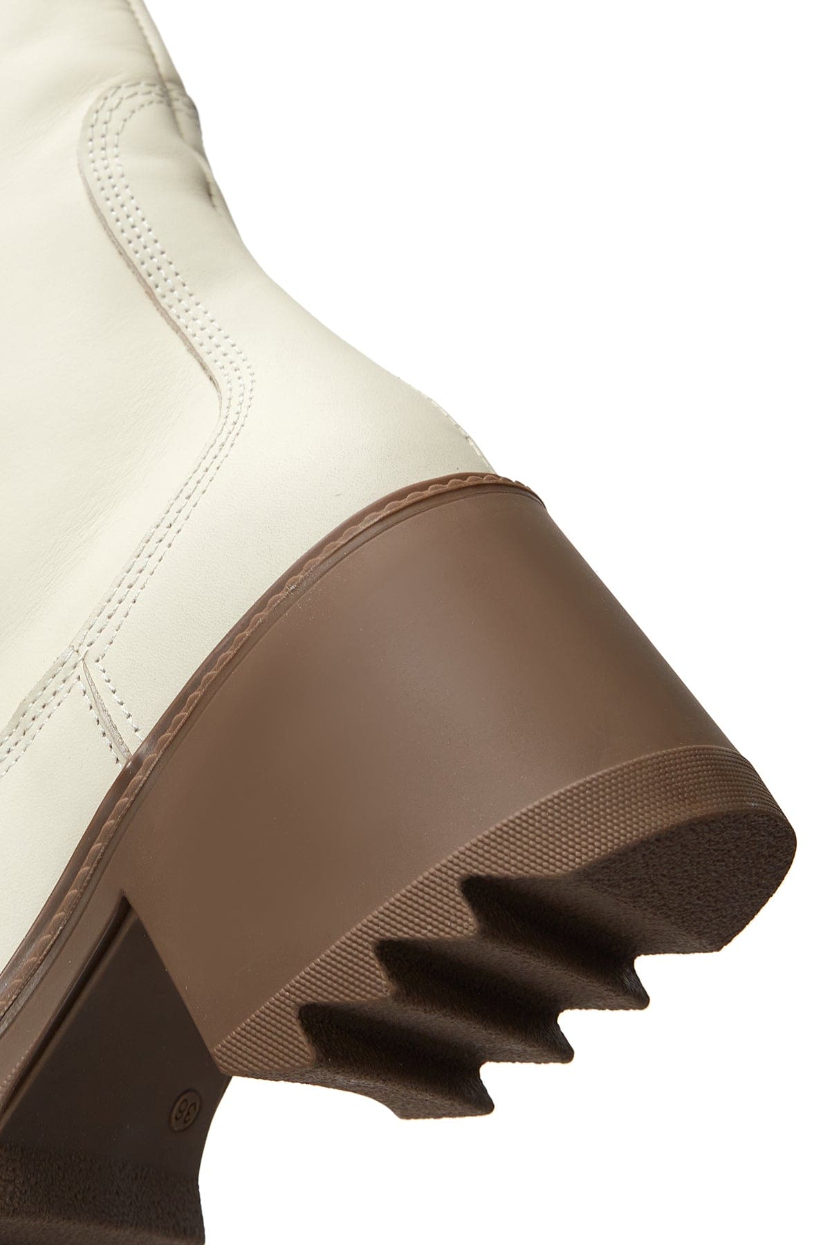 بوت زنانه بژ چرمی پاشنه ضخیم دری مد