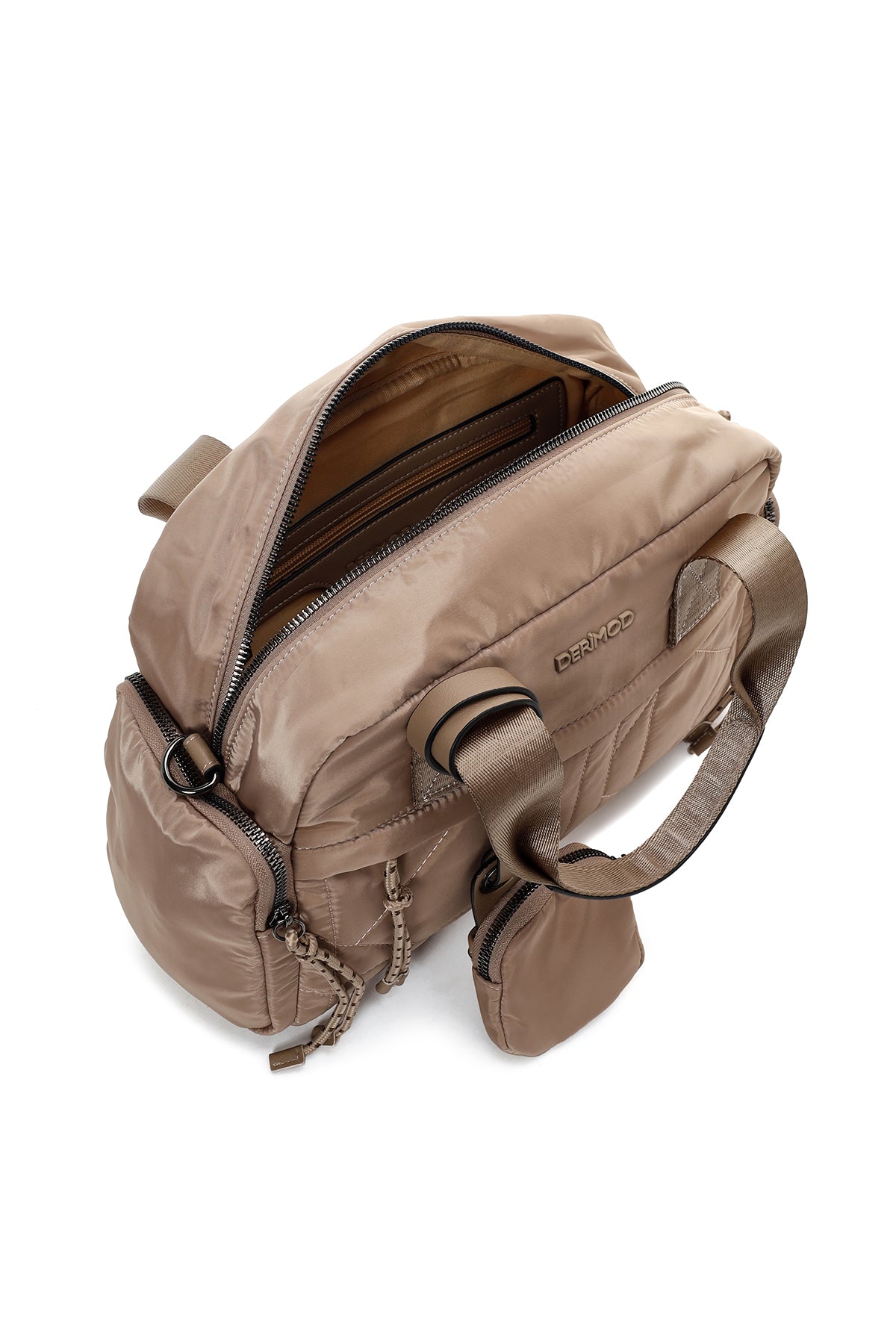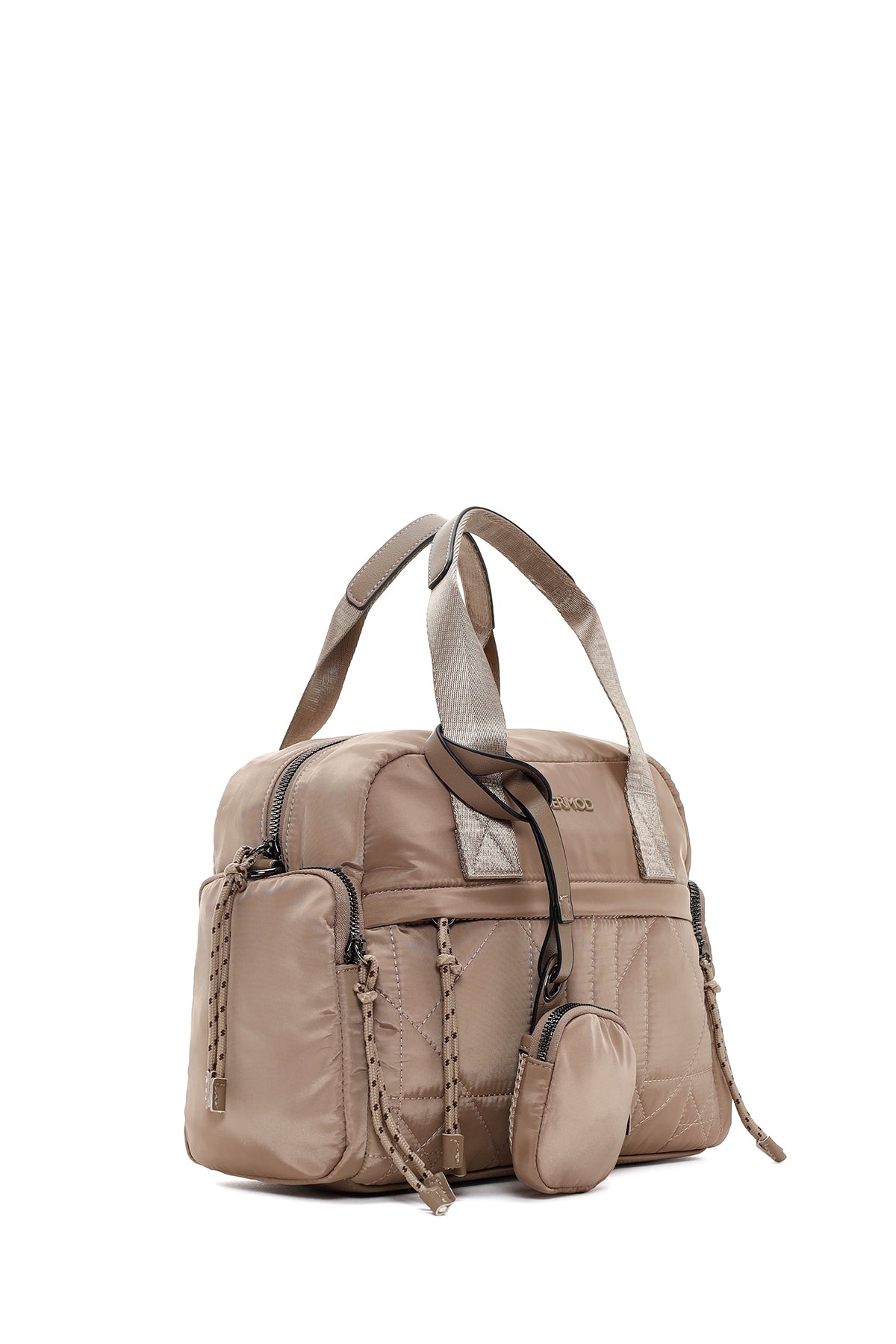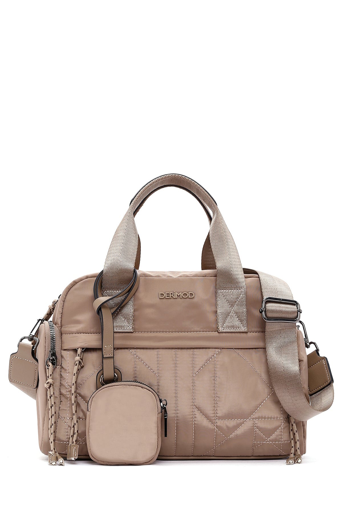 Kadın Bej Uzun Askılı Aksesuar Detaylı Kumaş Kol Çantası
