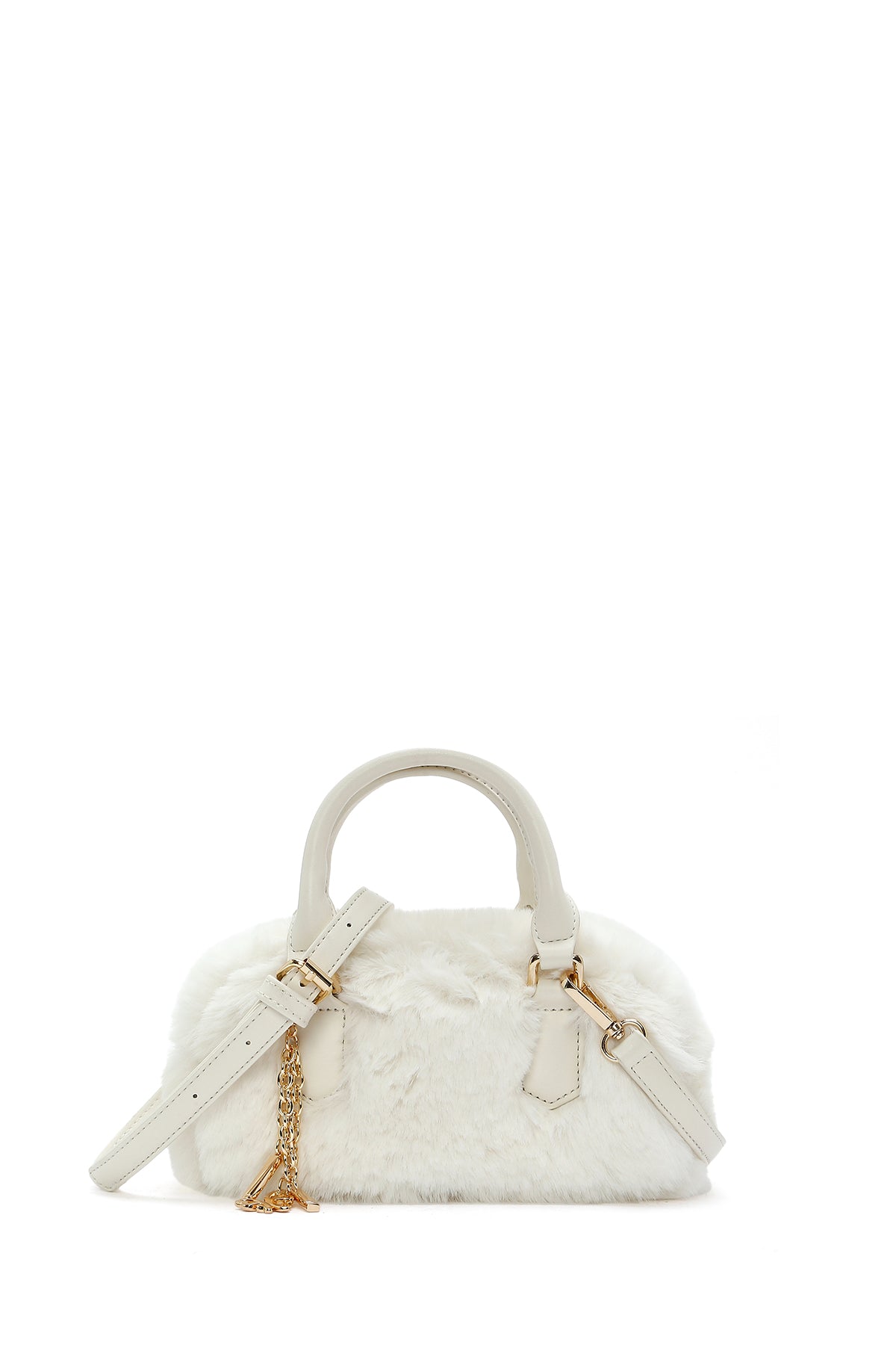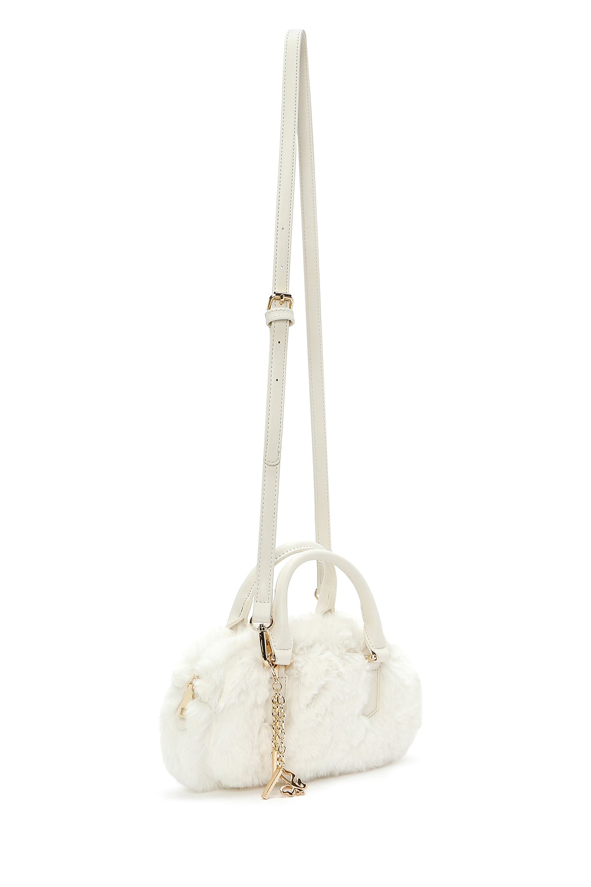 Kadın Krem Uzun Askılı Aksesuar Detaylı Peluş Mini Kol Çantası