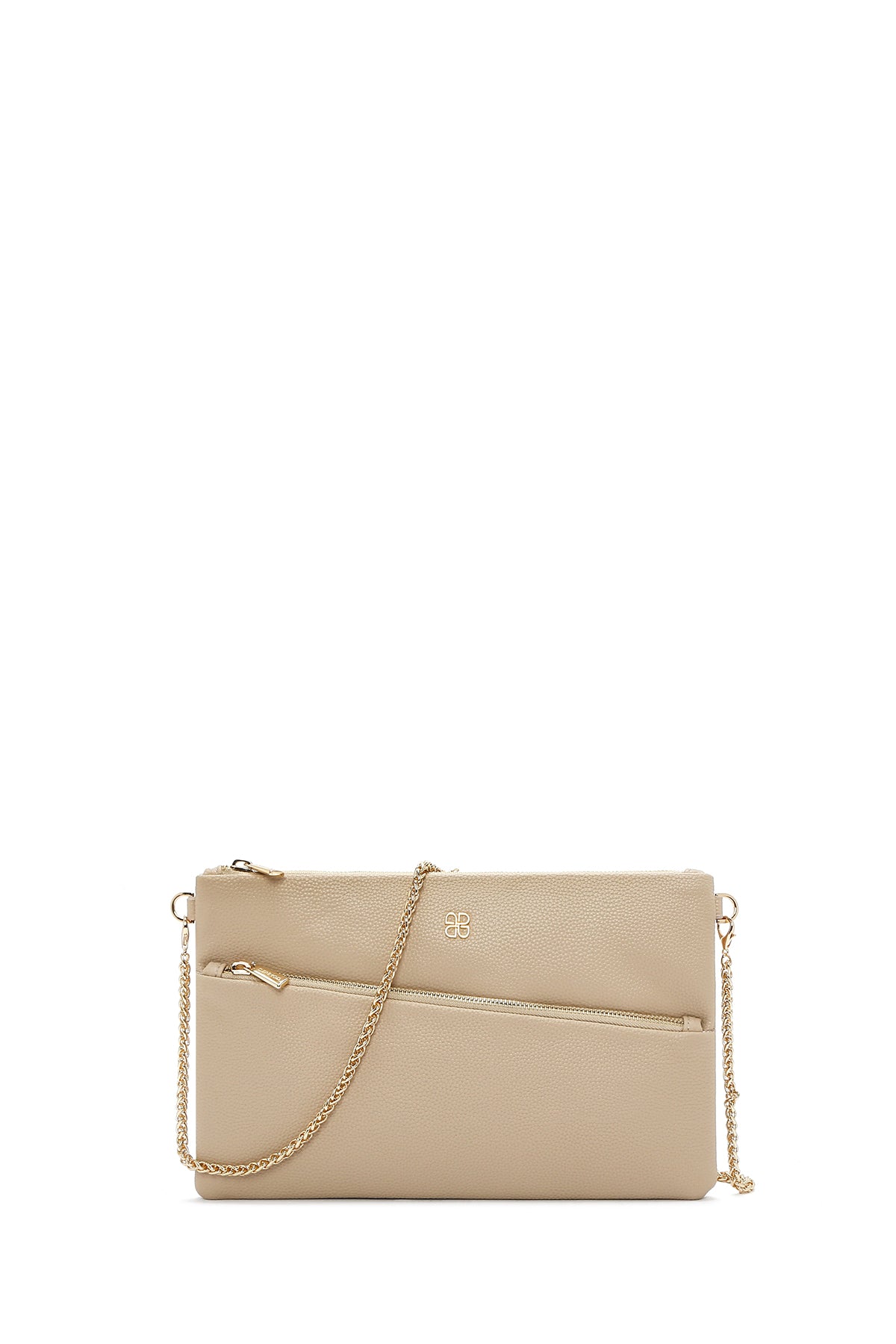 کیف کلاچ زنانه بژ بند بلند زنجیری دری مد
