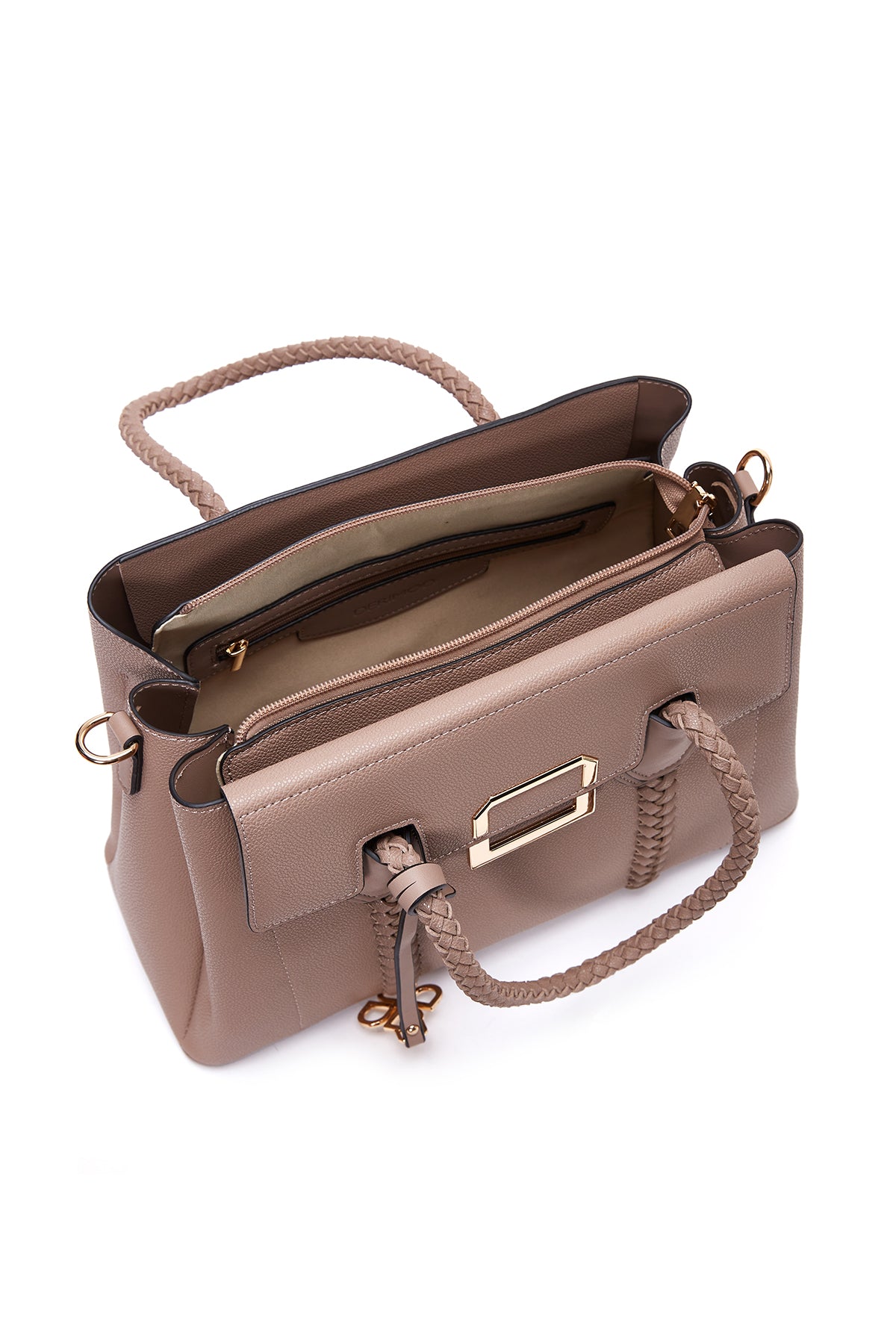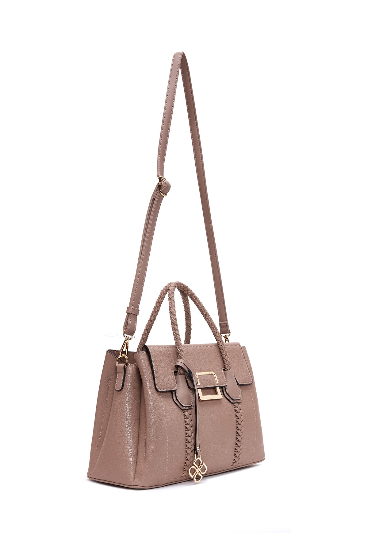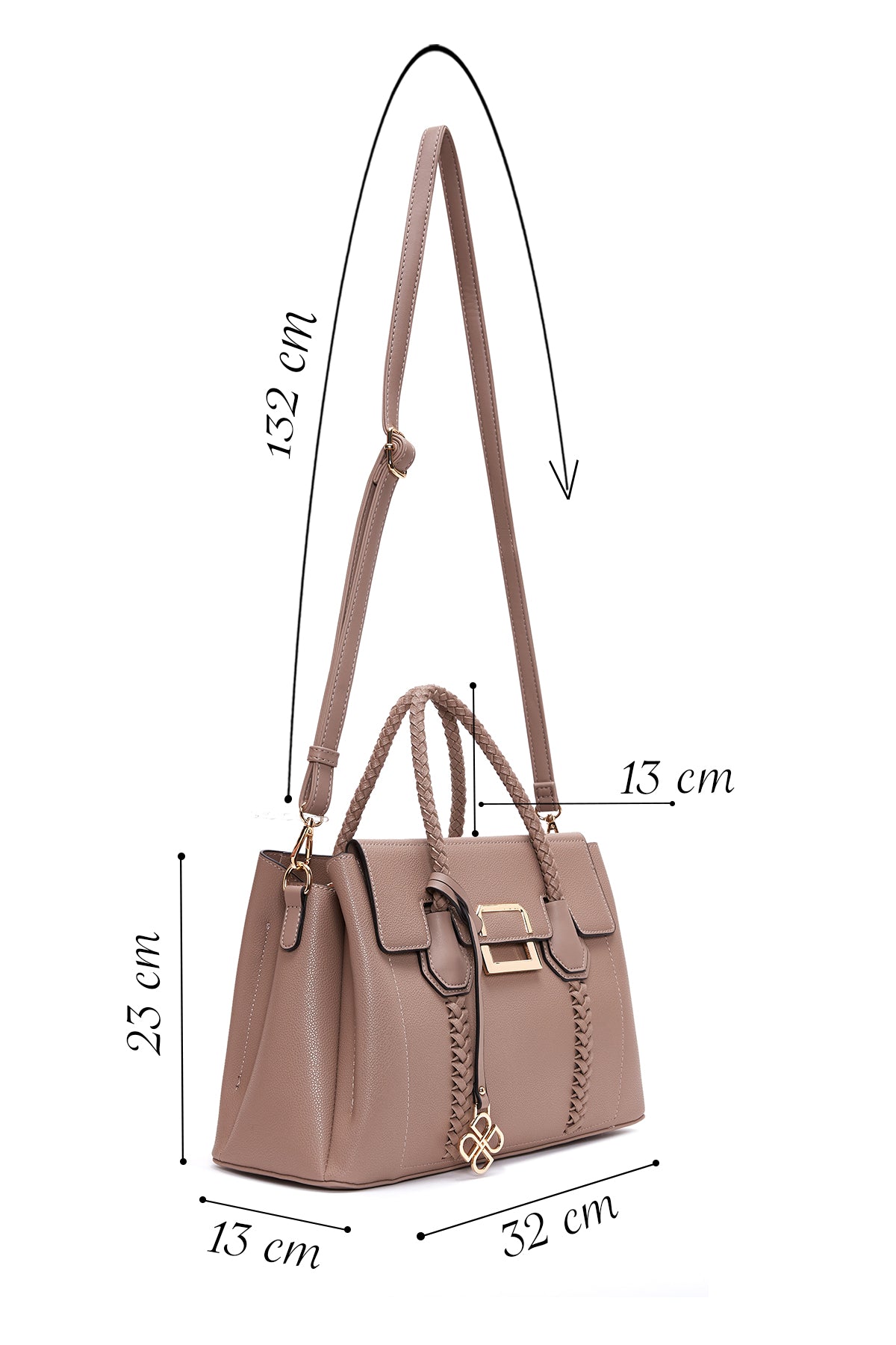 Kadın Vizon Uzun Askılı Örgü Detaylı Kol Çantası