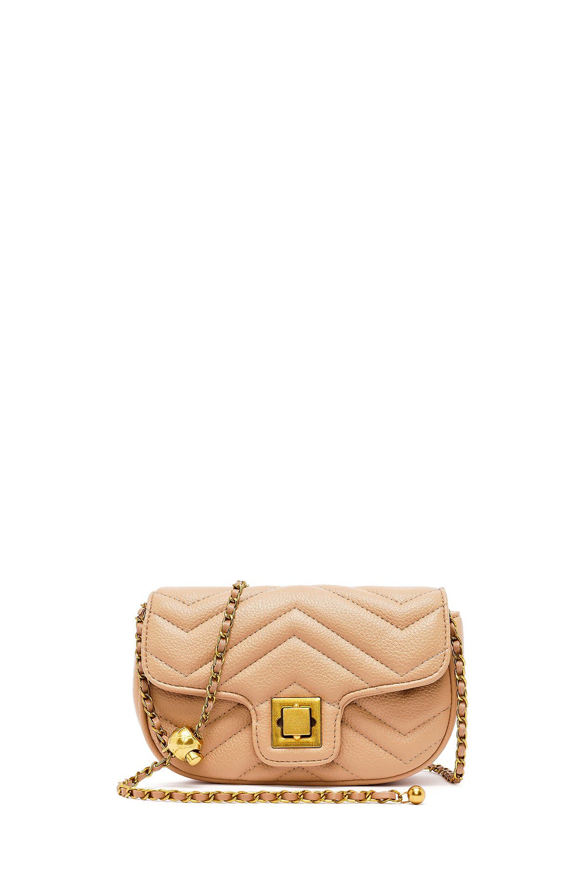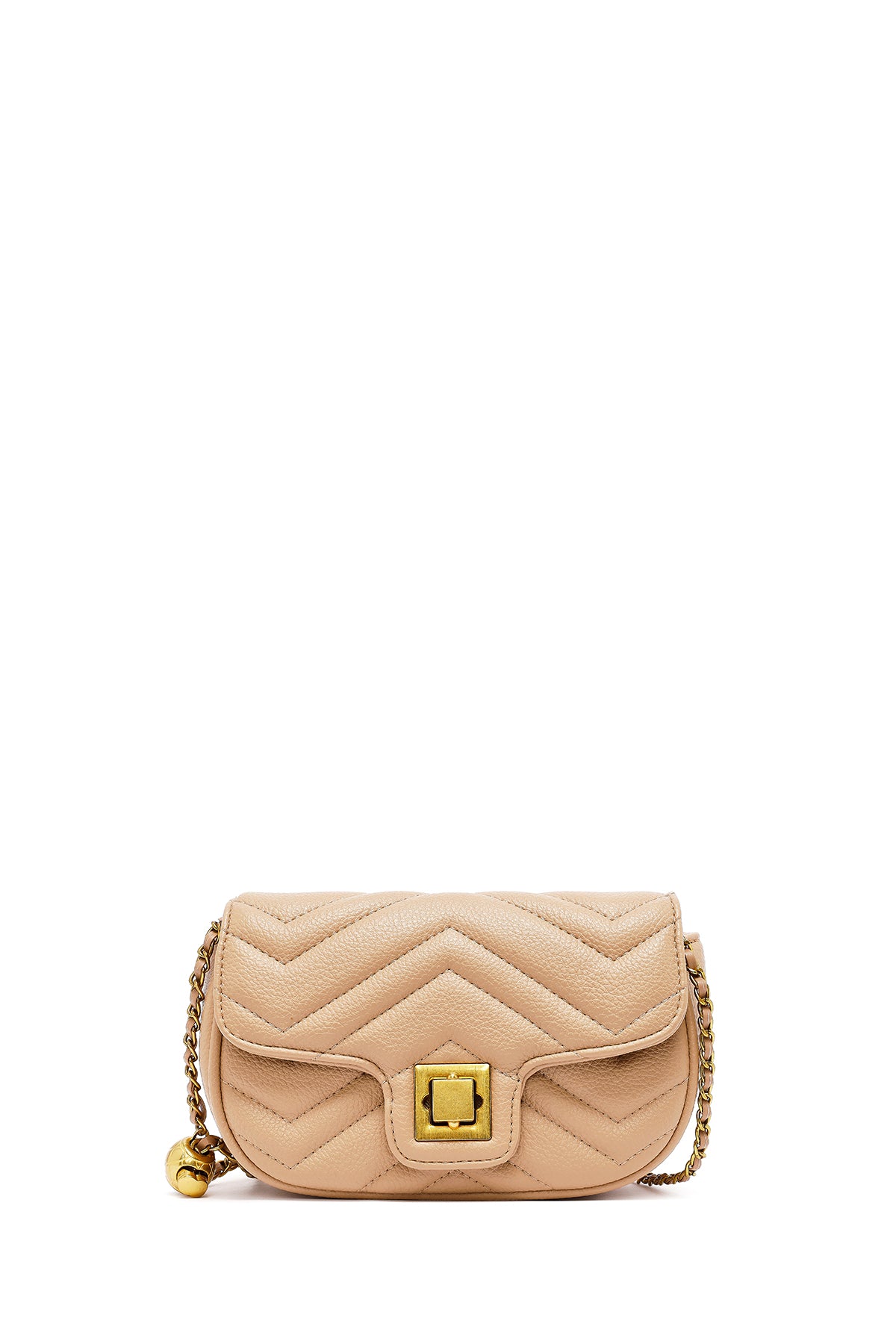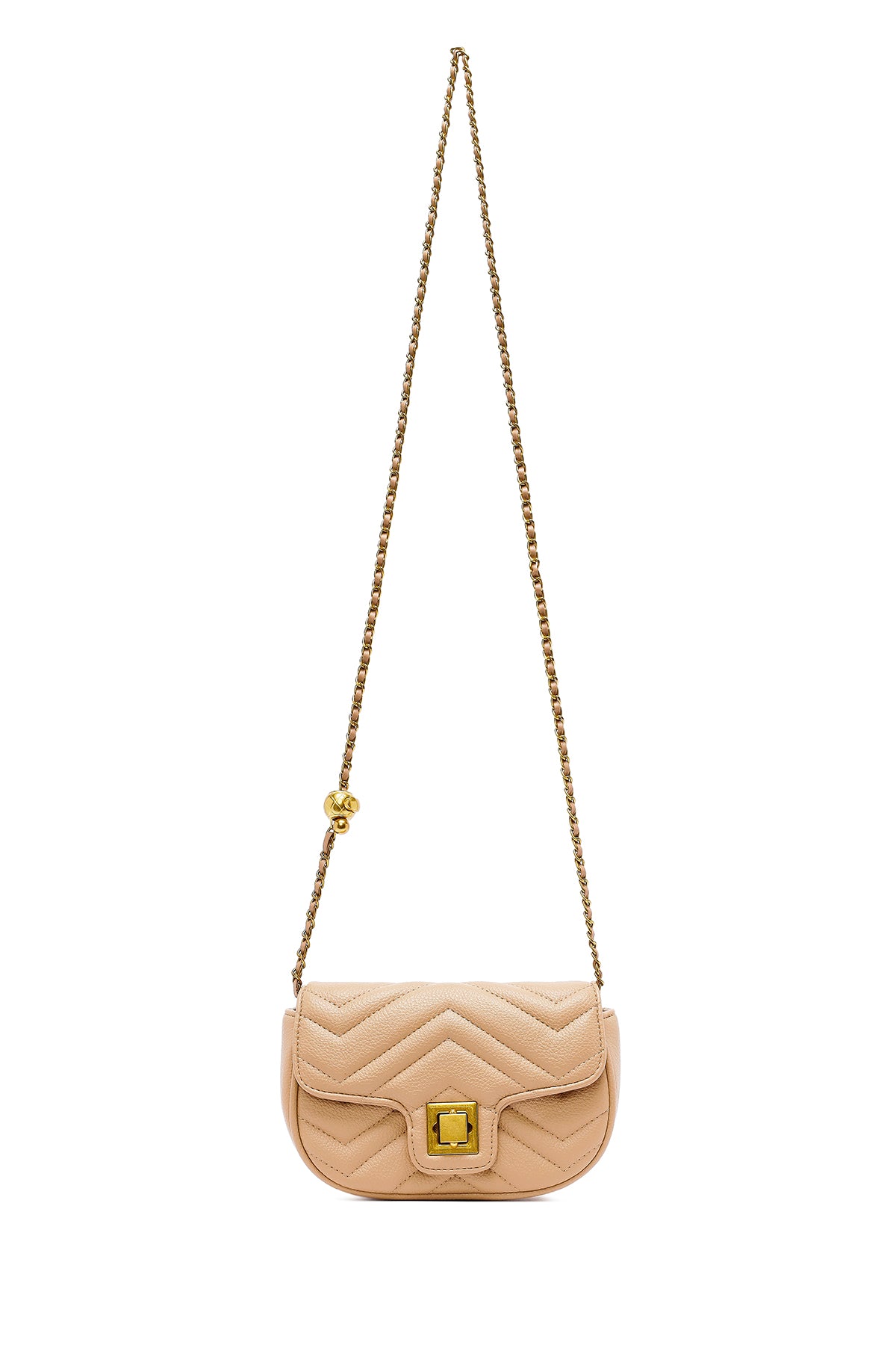 Kadın Bej Uzun Askılı Kapitone Mini Çapraz Çanta