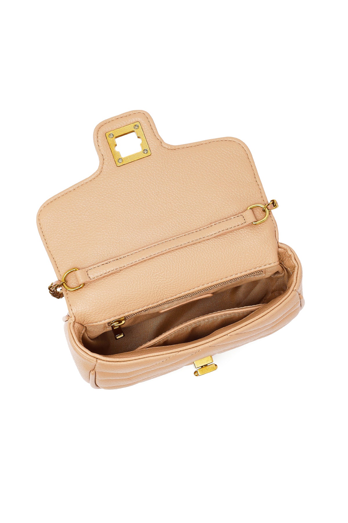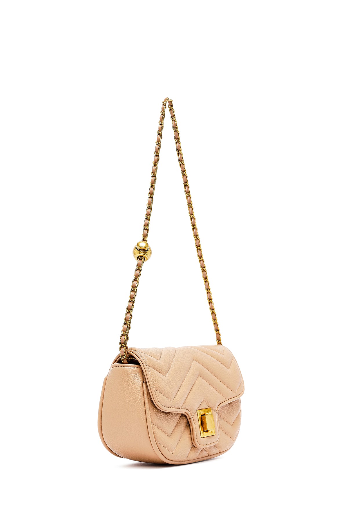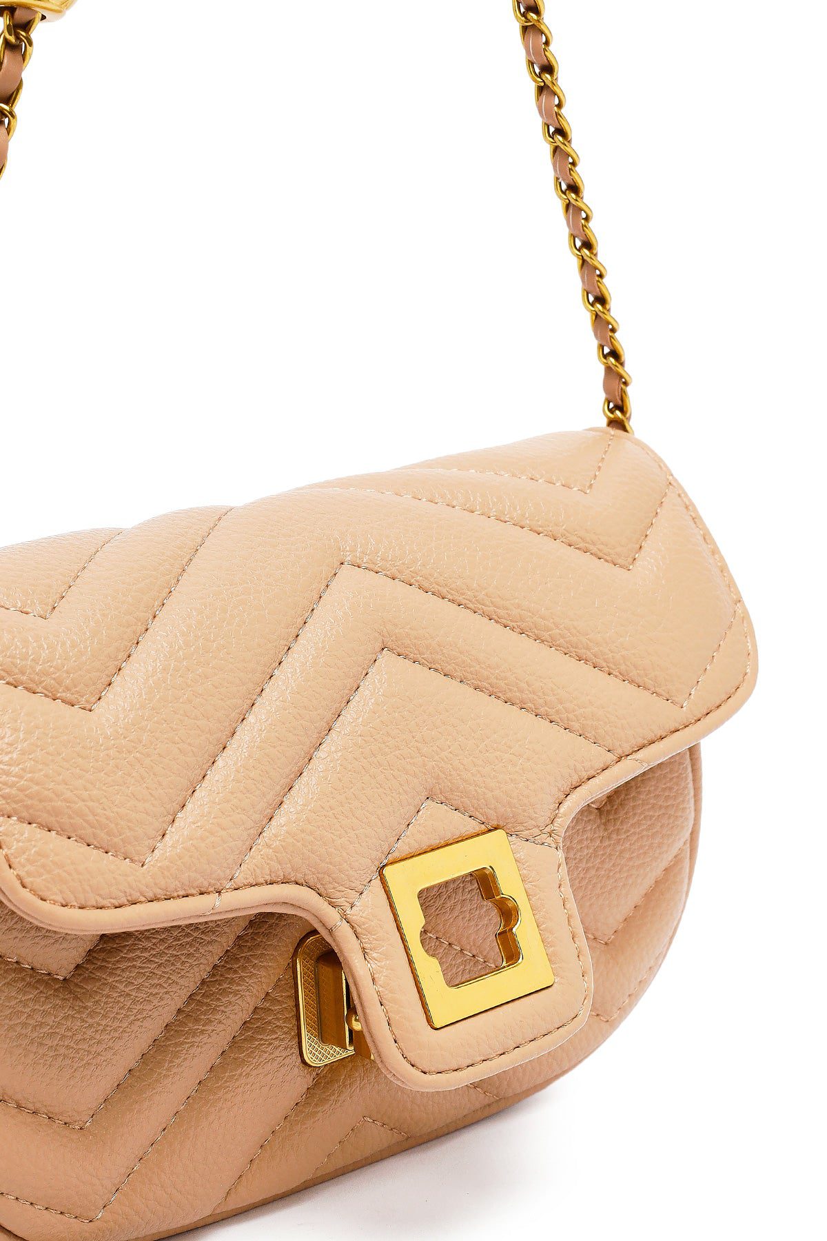 Kadın Bej Uzun Askılı Kapitone Mini Çapraz Çanta