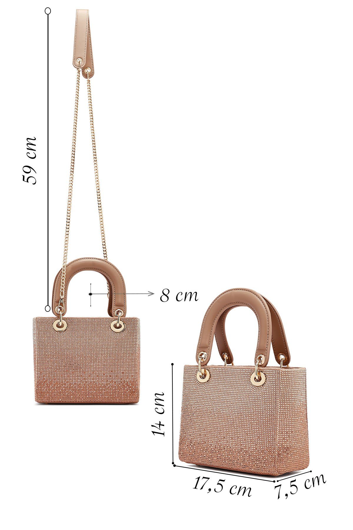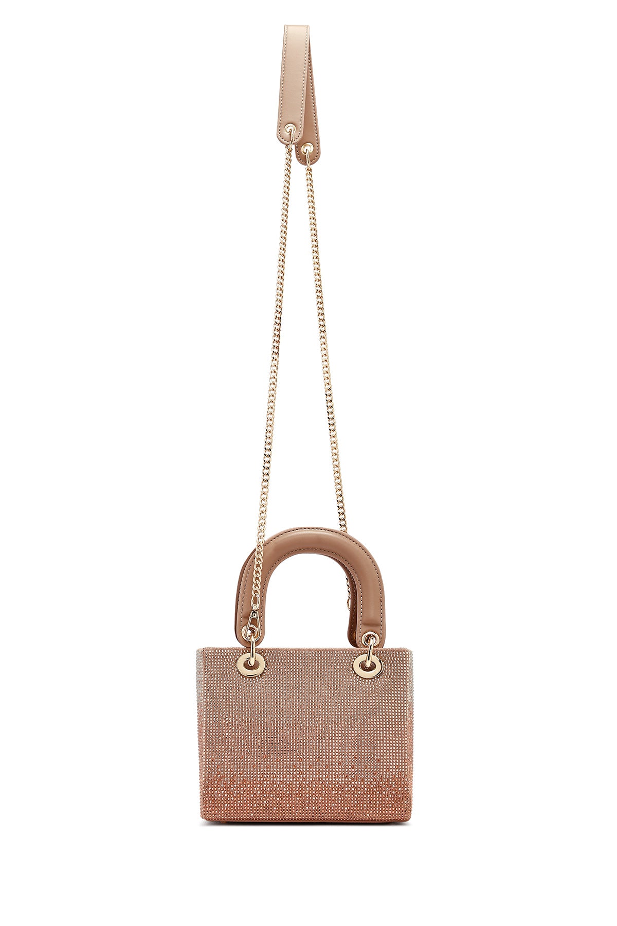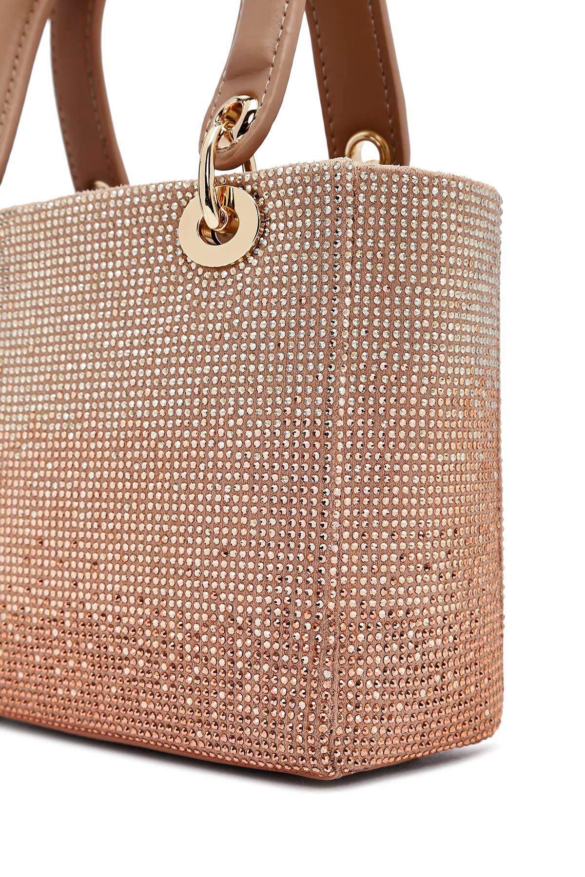 Kadın Bej Uzun Askılı Taşlı Mini Abiye Kol Çantası