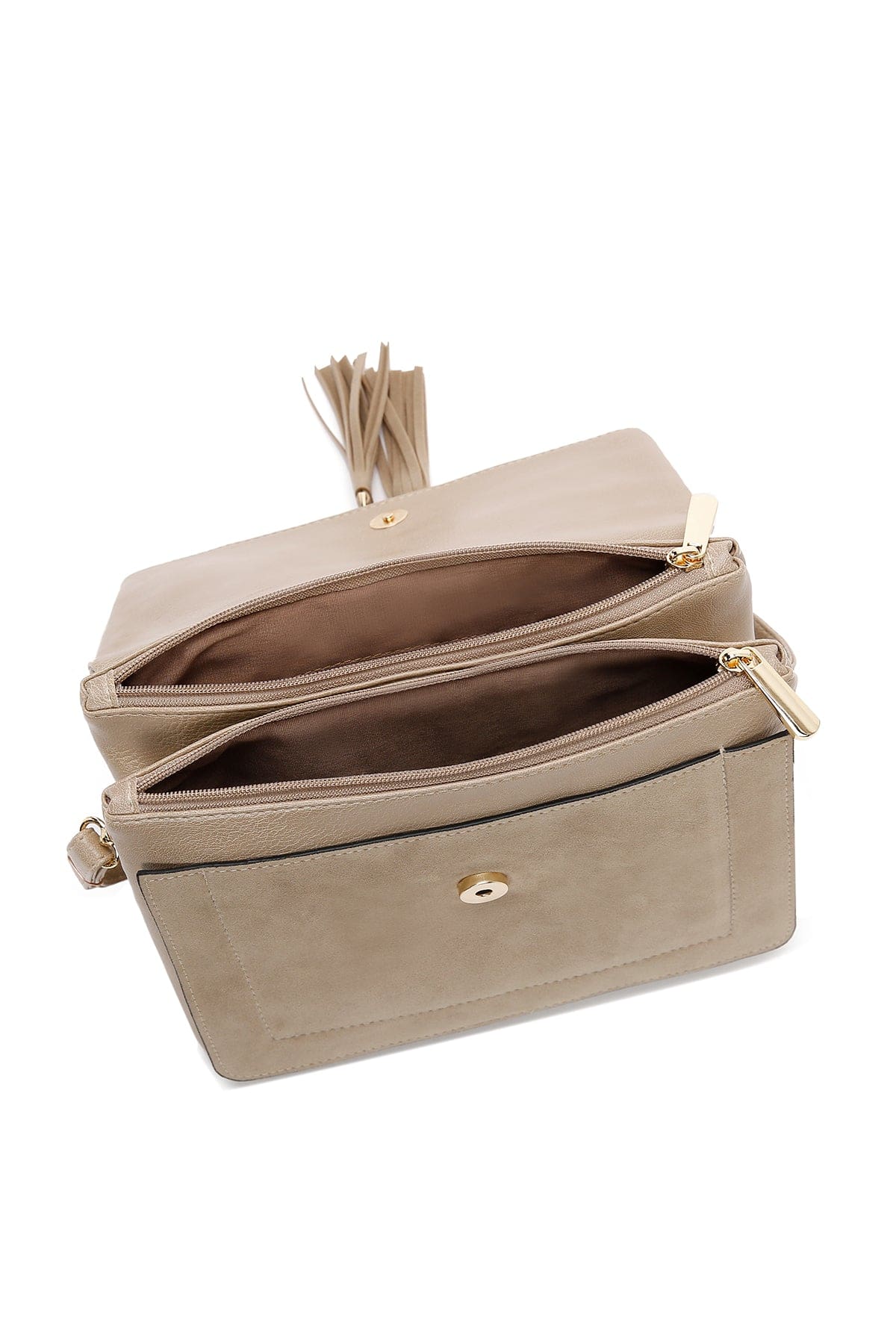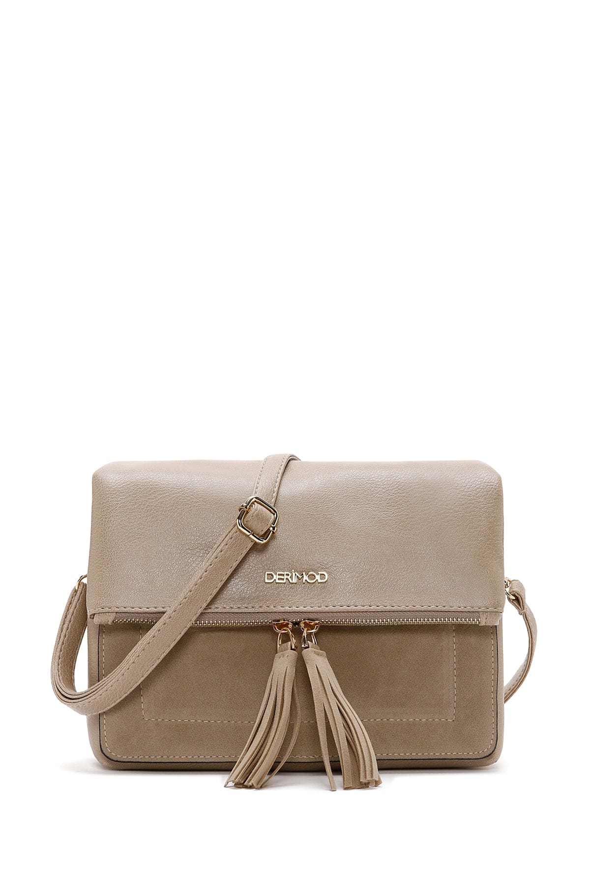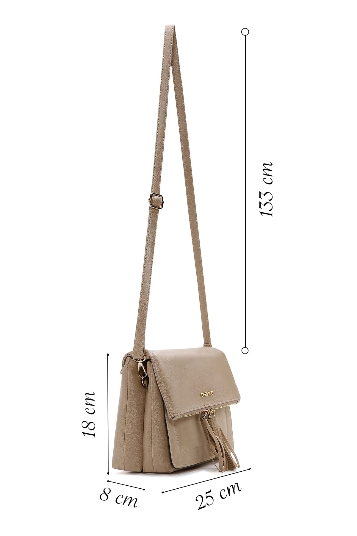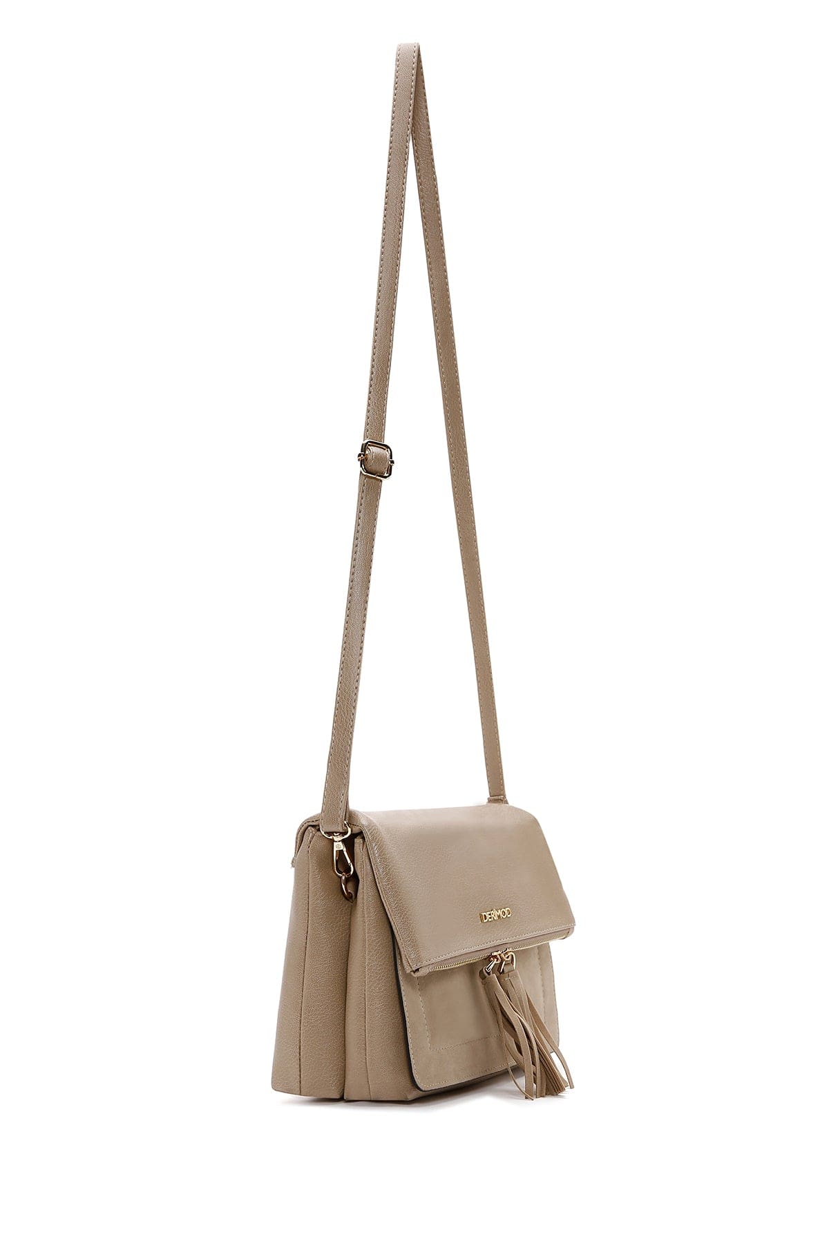 کیف کراس بادی زنانه چرم بژ بند بلند دری مد