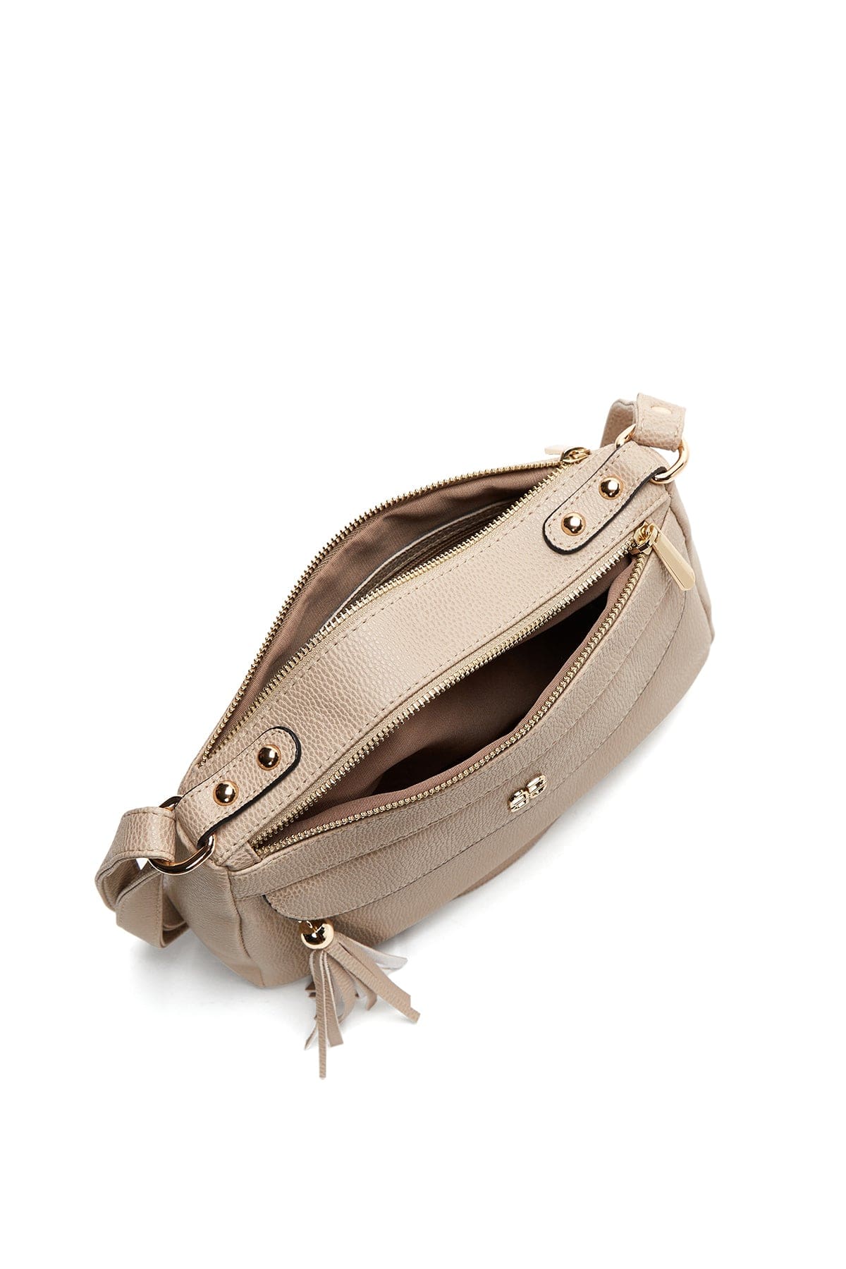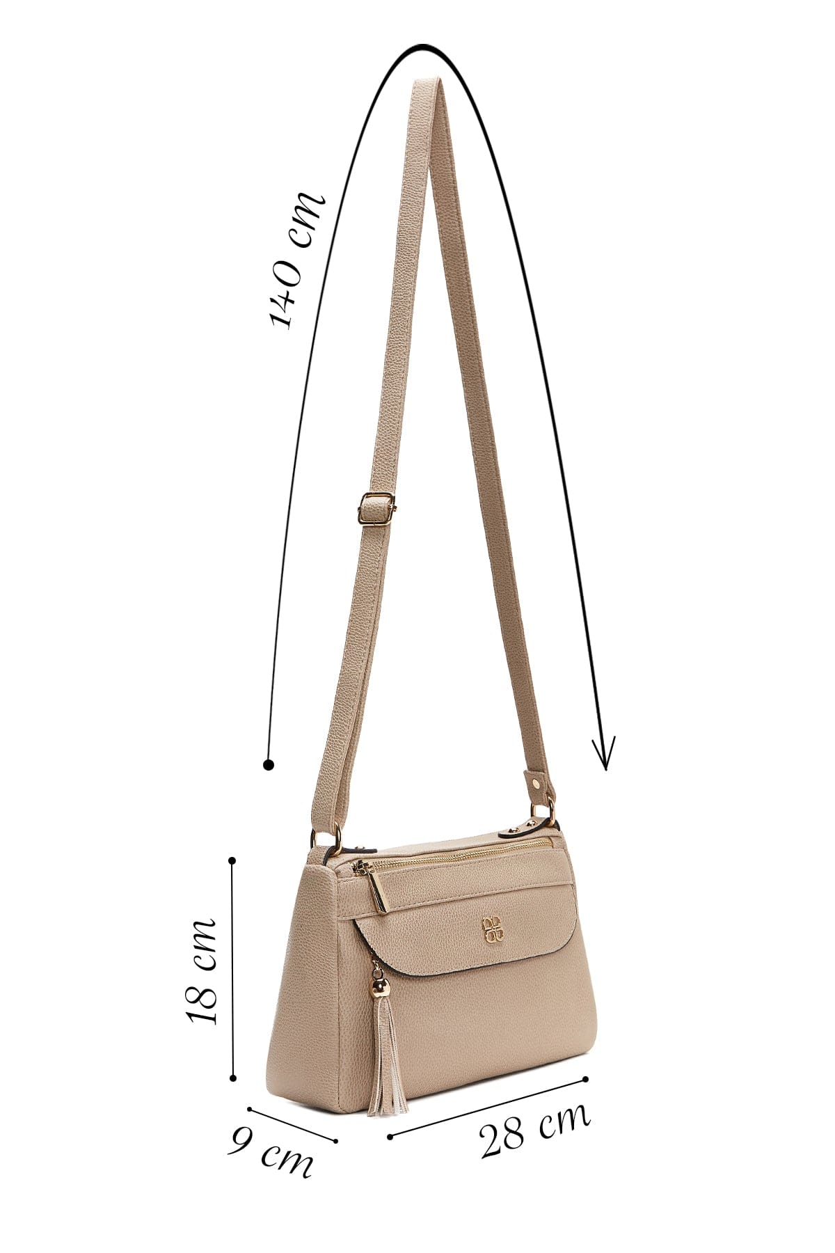 کیف کراس بادی زنانه چرم بژ بند بلند دری مد