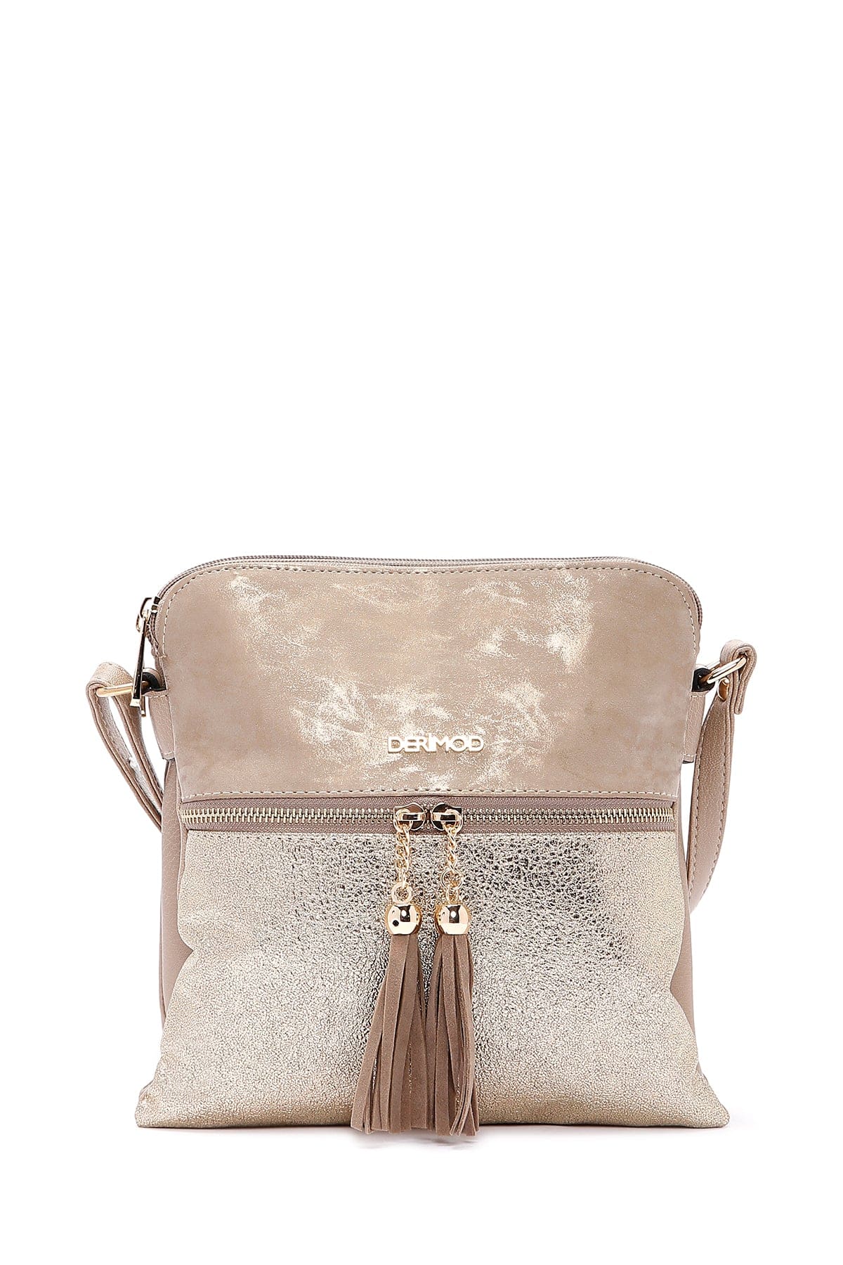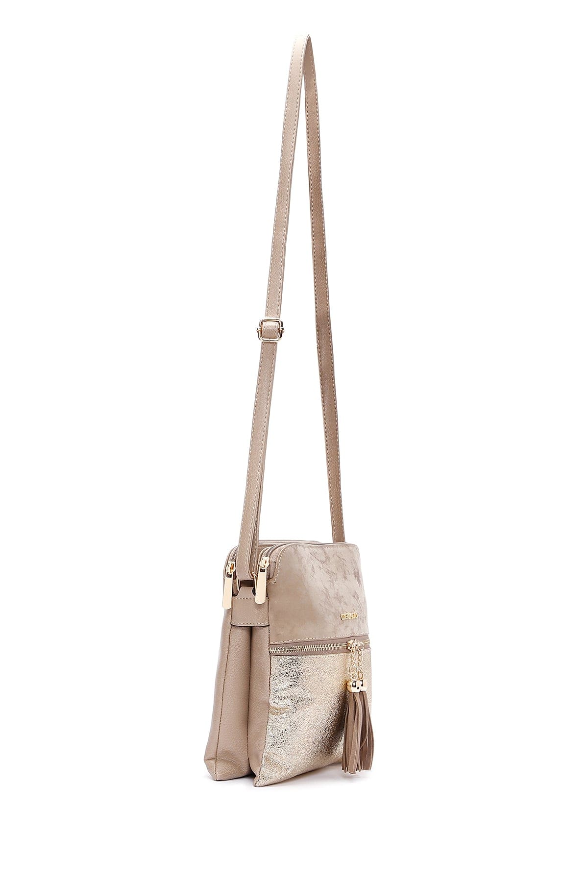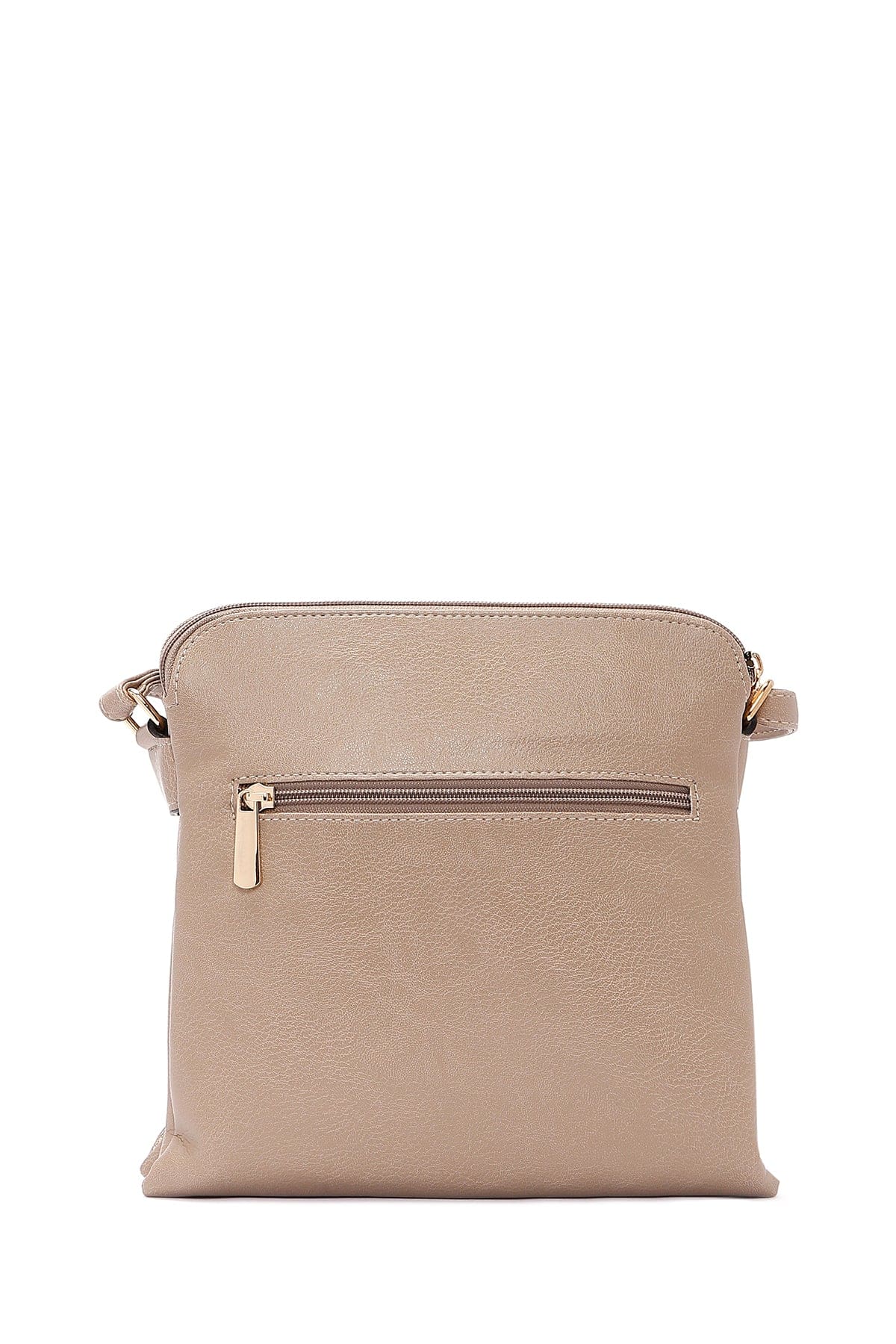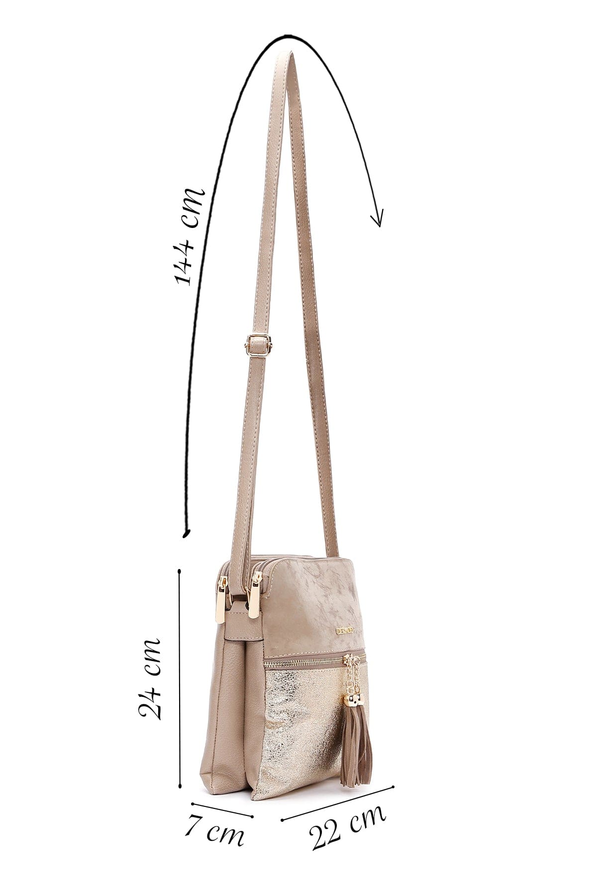 کیف کراس بادی زنانه چرم بژ بند بلند با جزئیات اکسسوری دری مد