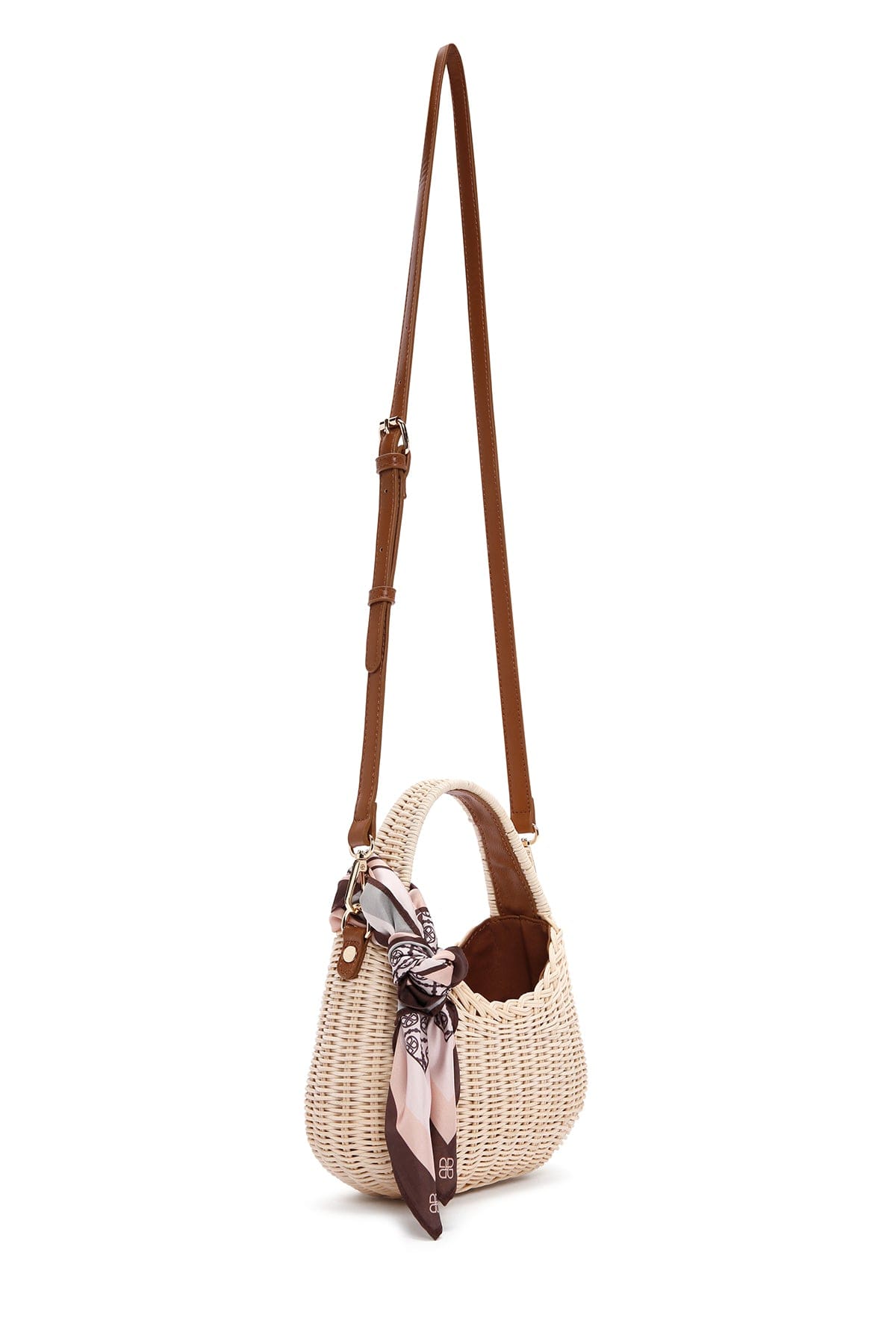 کیف زنانه کراس بادی بژ مینی حصیری دوشی بلند دری مد