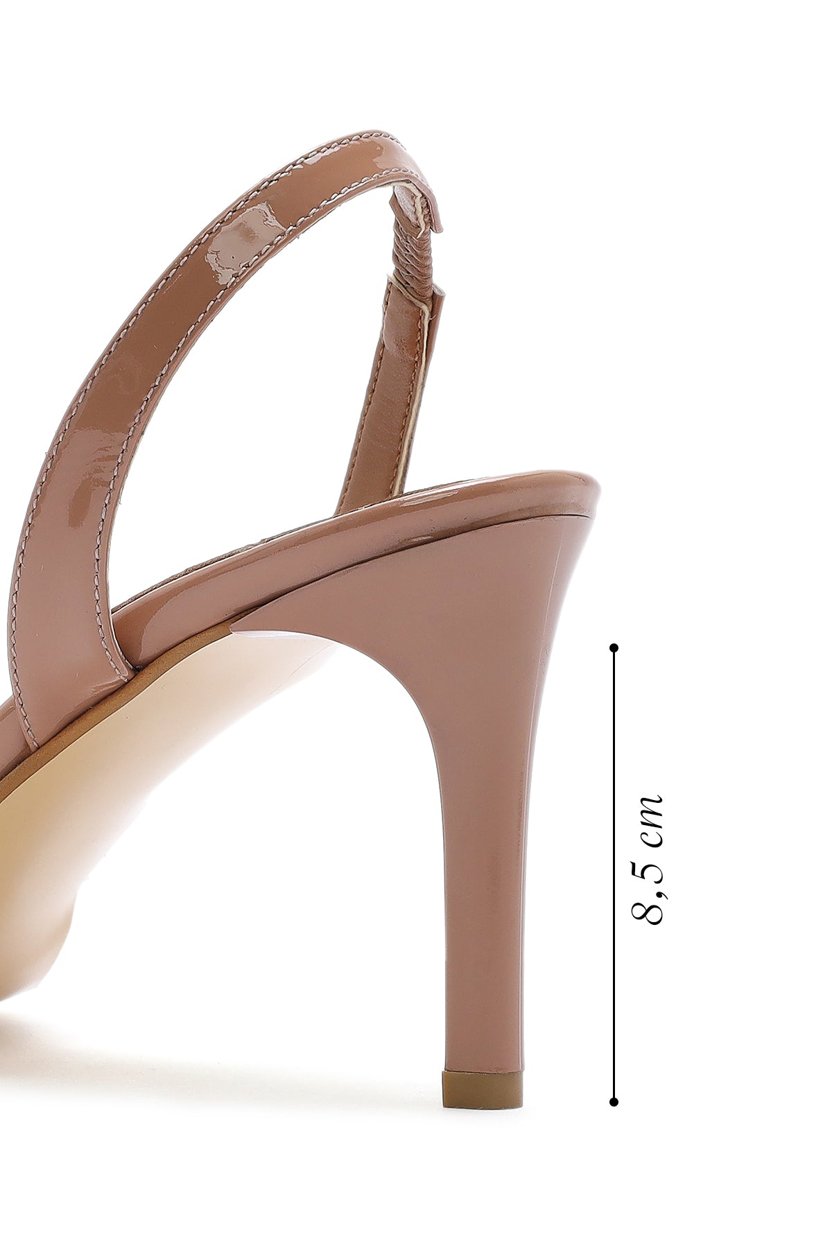 Kadın Bej Arkası Açık Rugan Deri İnce Topuklu Ayakkabı