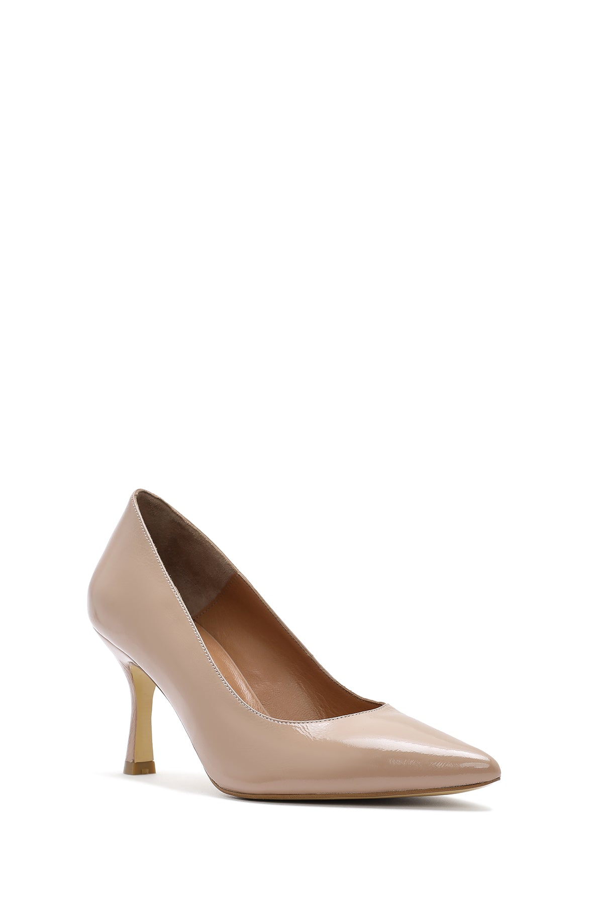 استیلتو زنانه بژ چرم ورنی پاشنه نازک دری مد