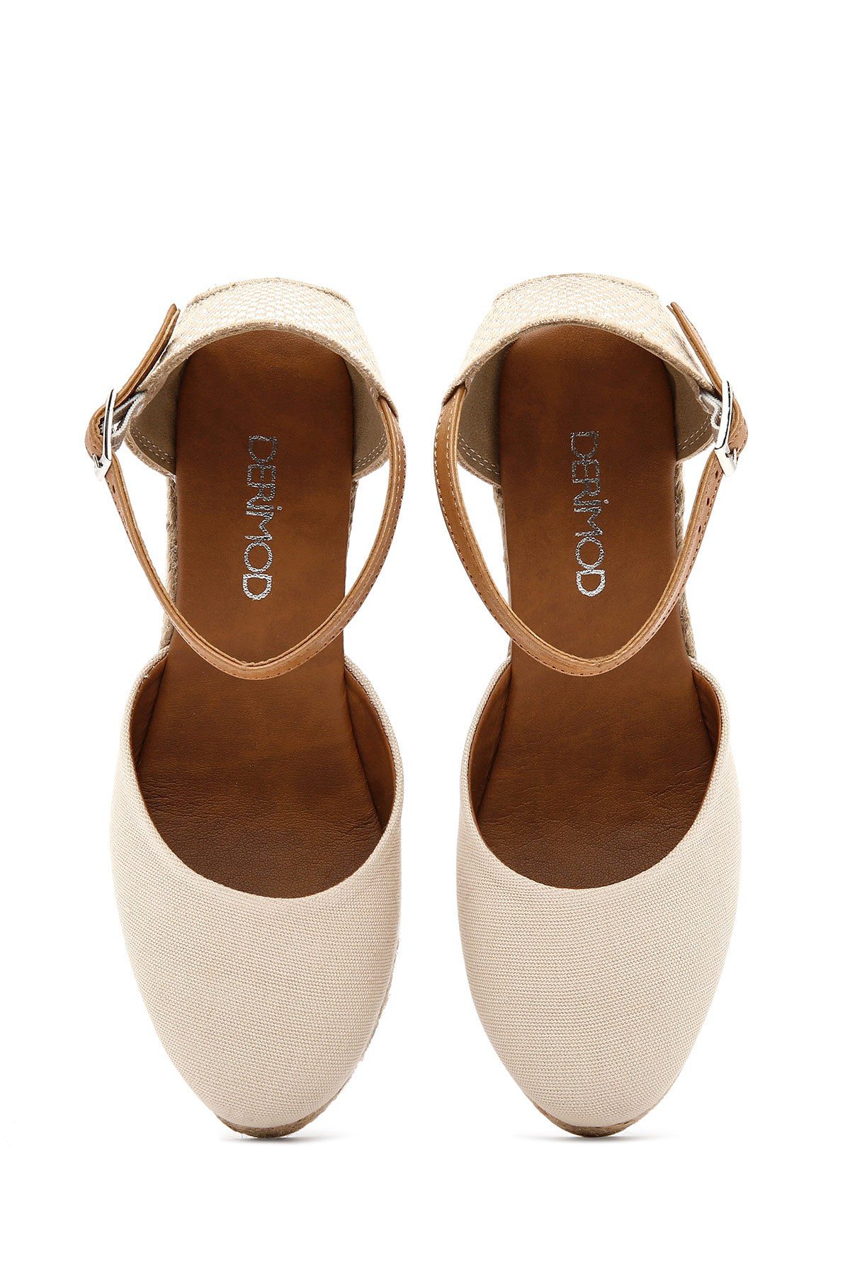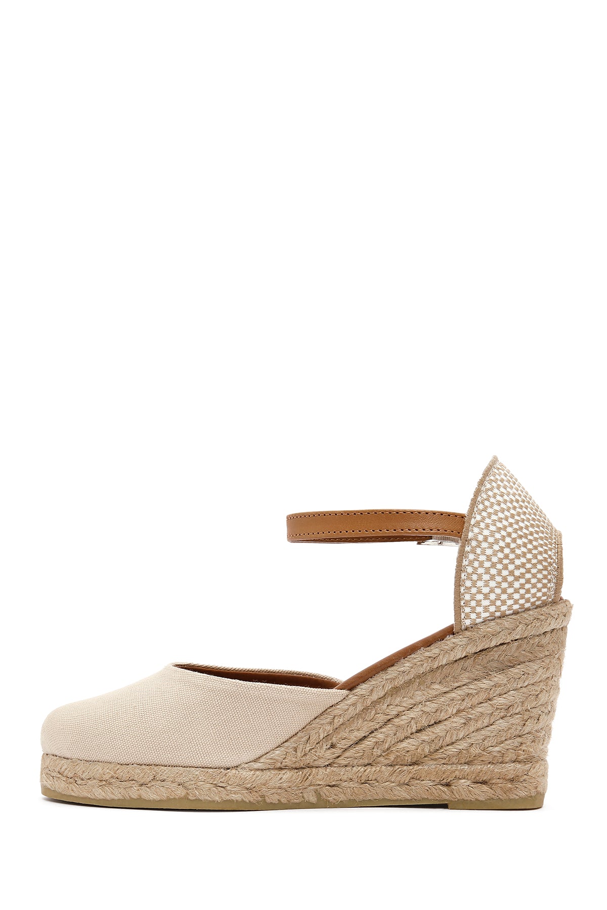 Kadın Bej Bilekten Bantlı Dolgu Topuklu Espadril