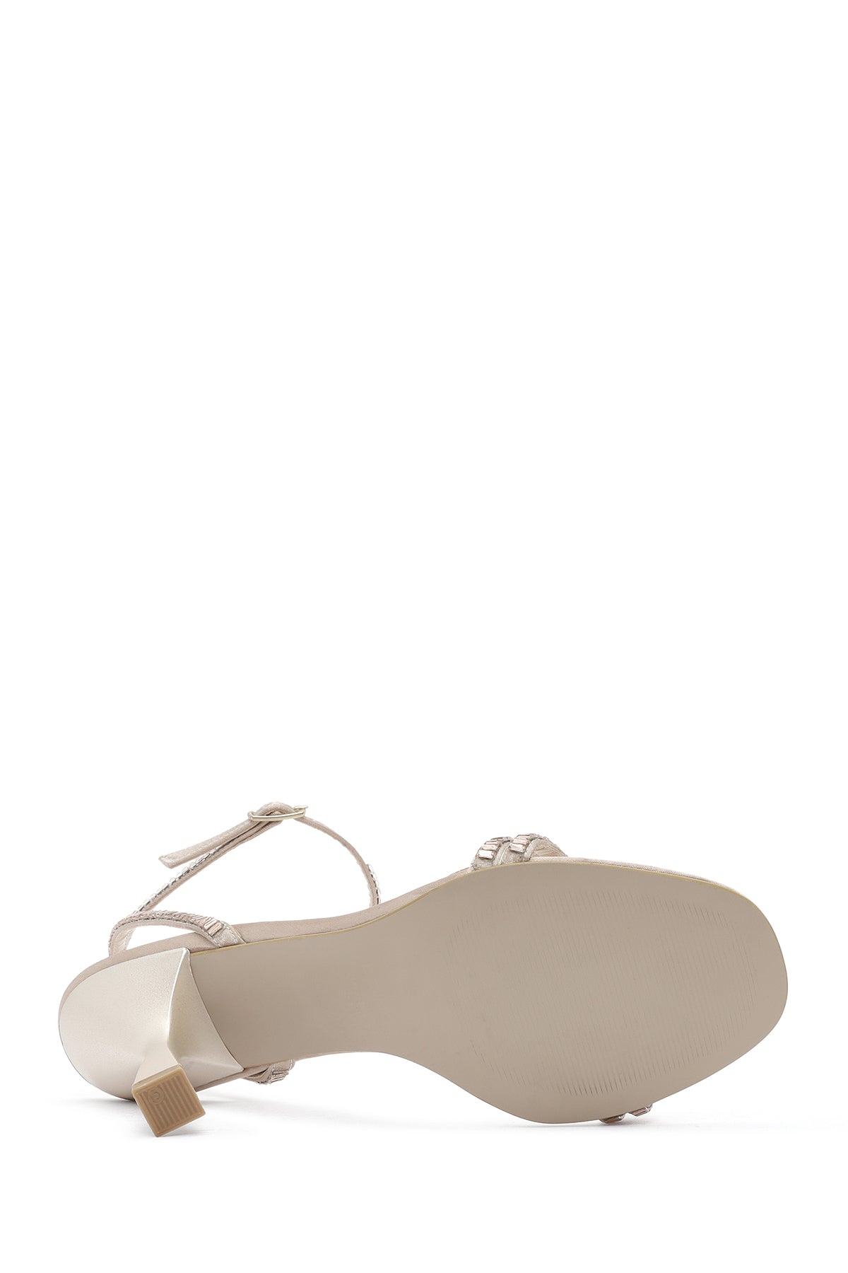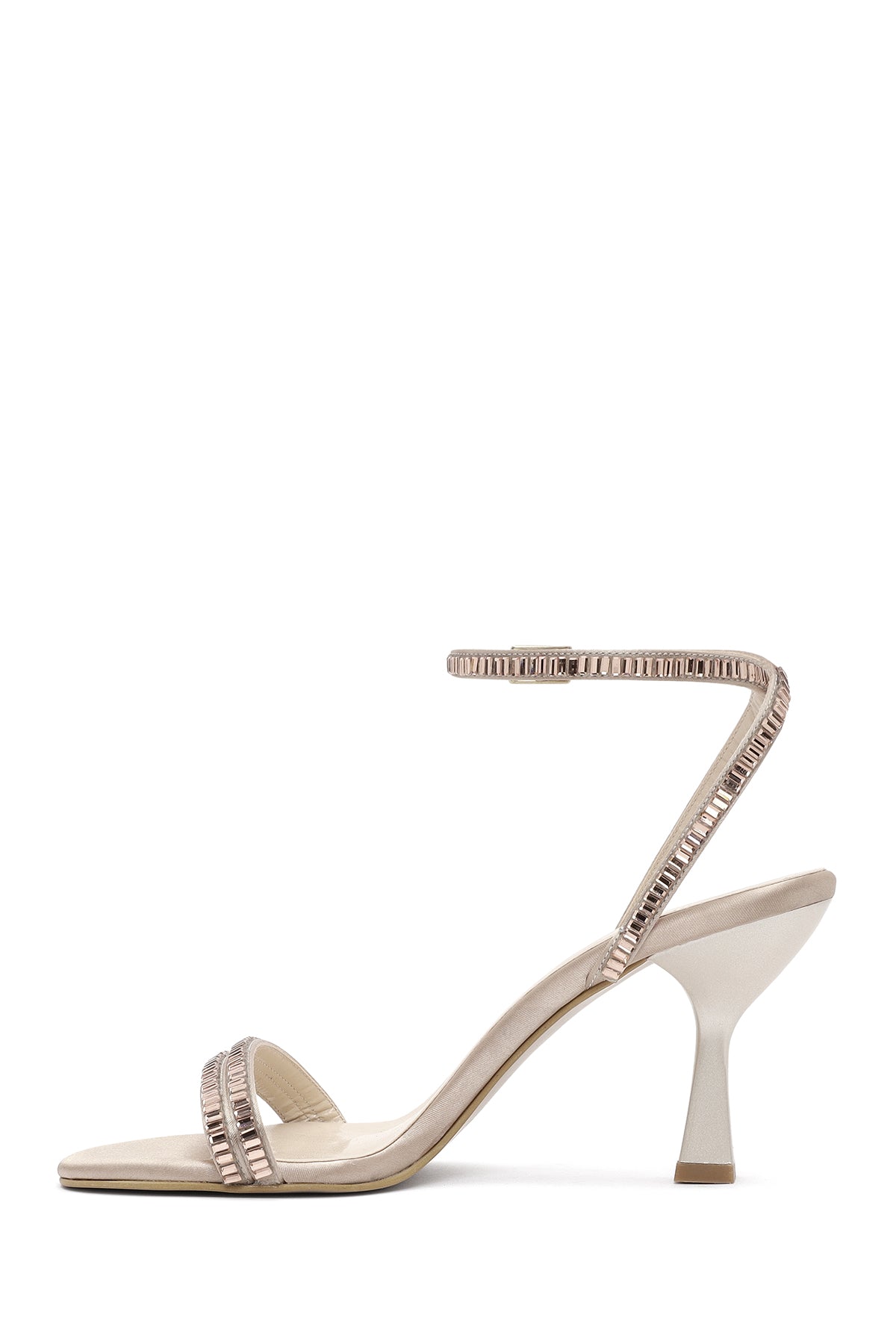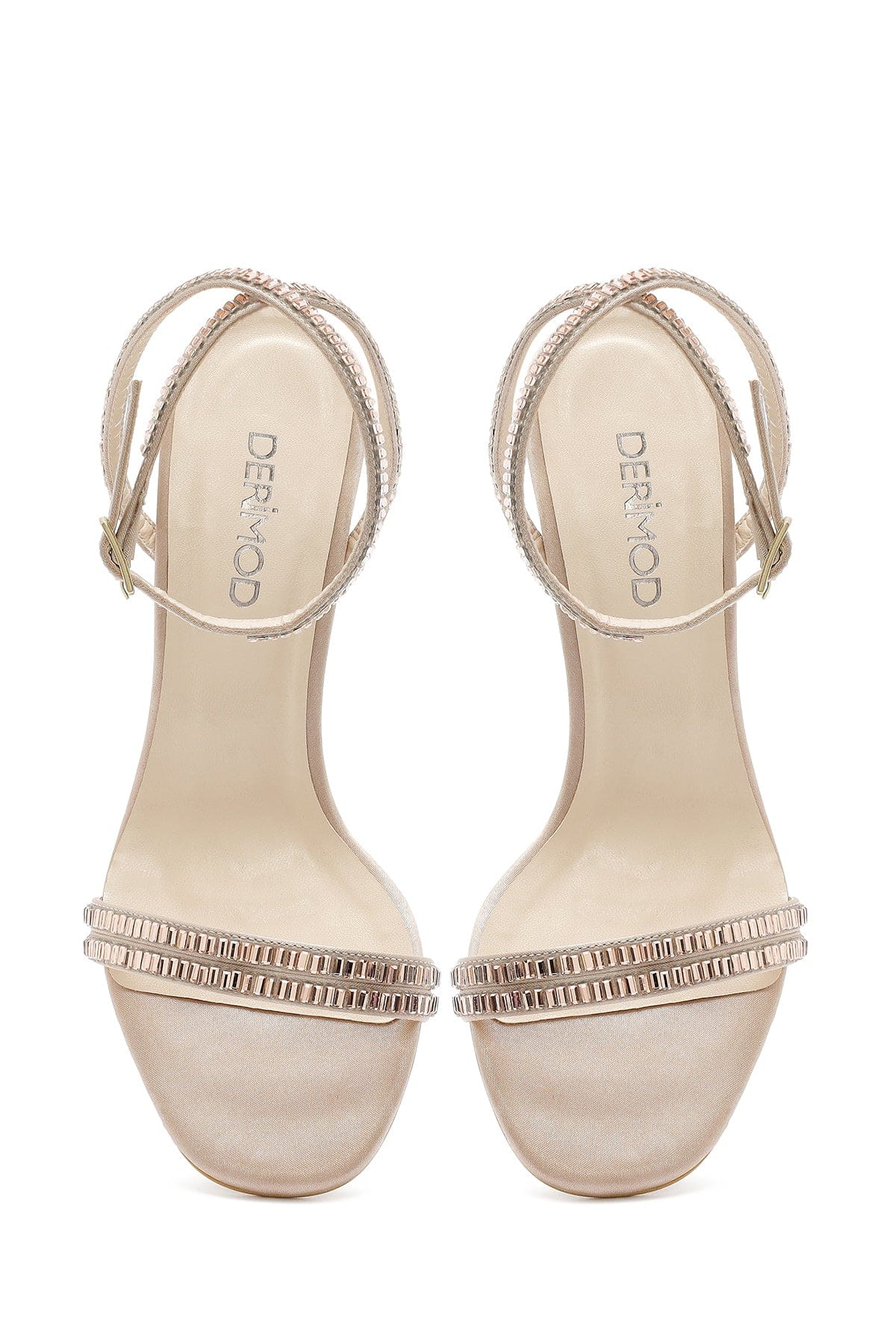 Kadın Bej Bilekten Tokalı Taşlı İnce Topuklu Sandalet