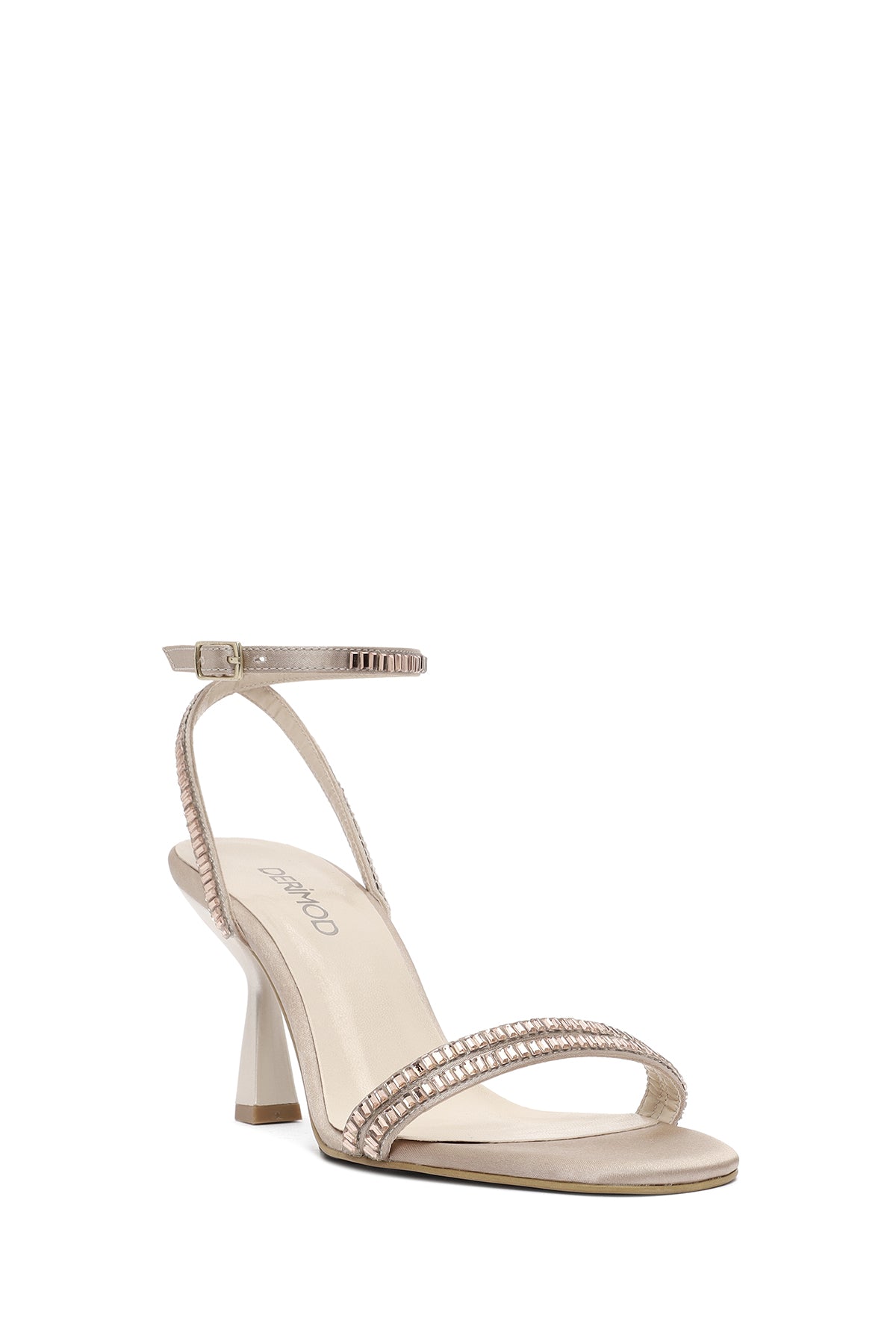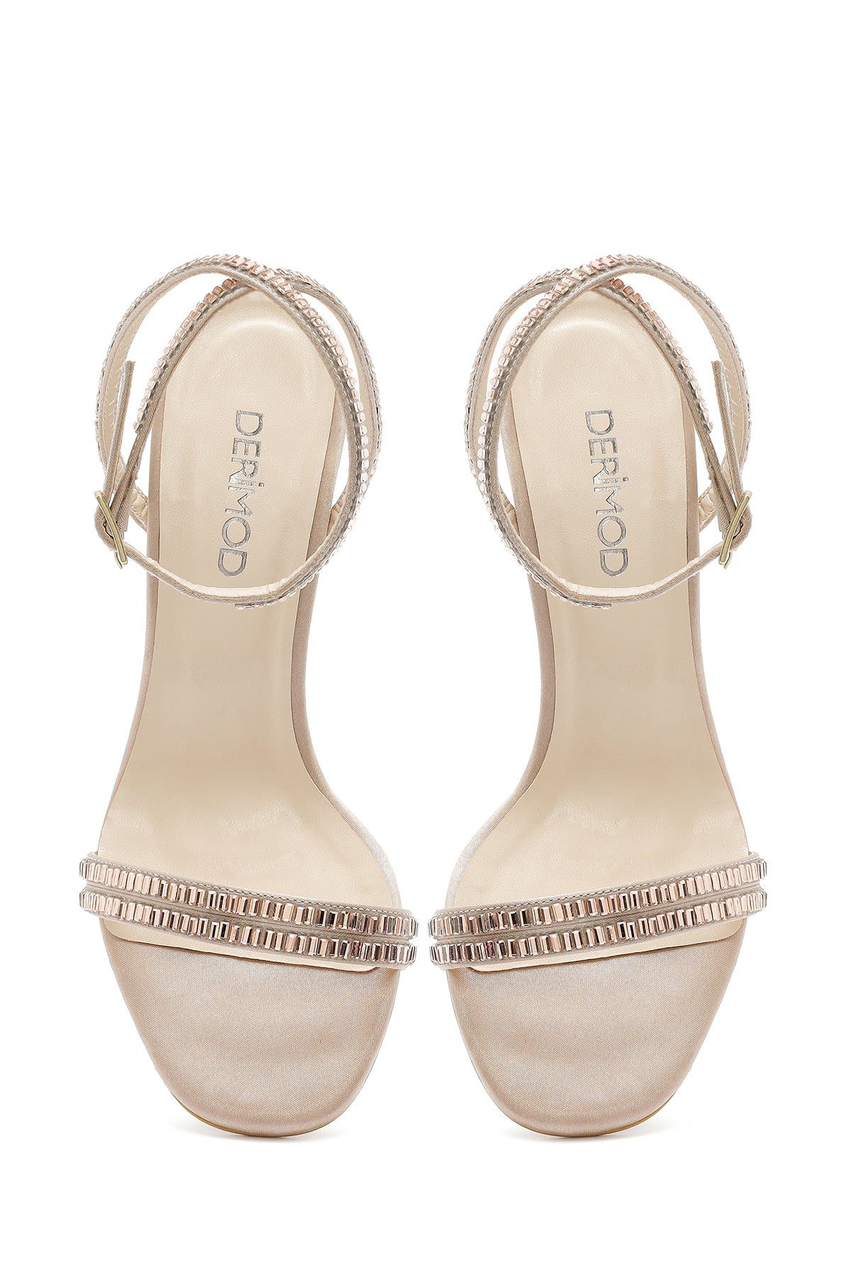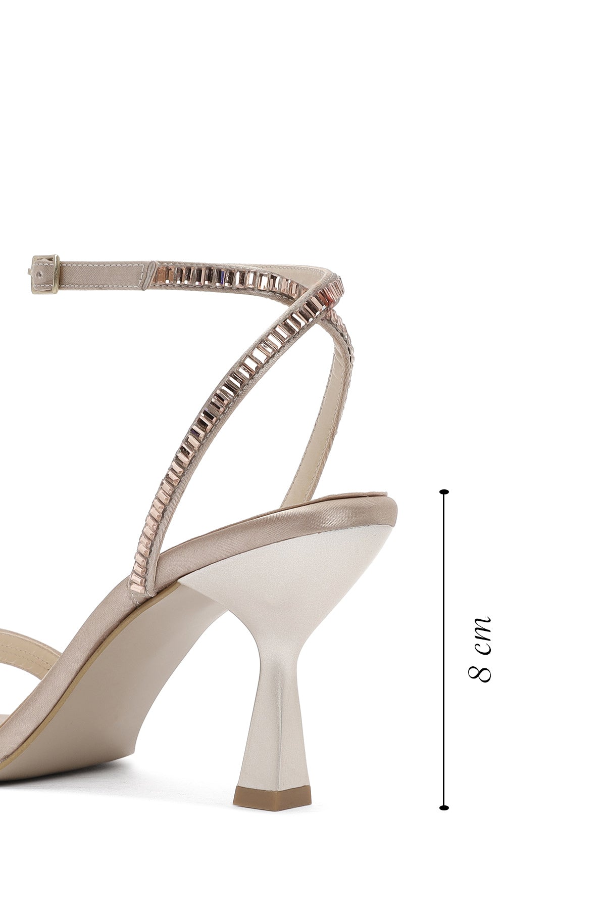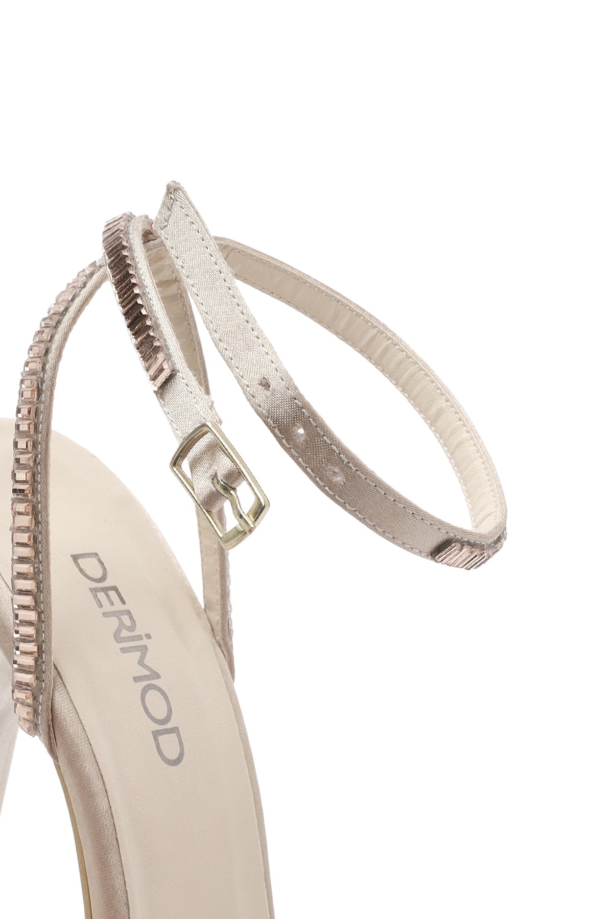 Kadın Bej Bilekten Tokalı Taşlı İnce Topuklu Sandalet
