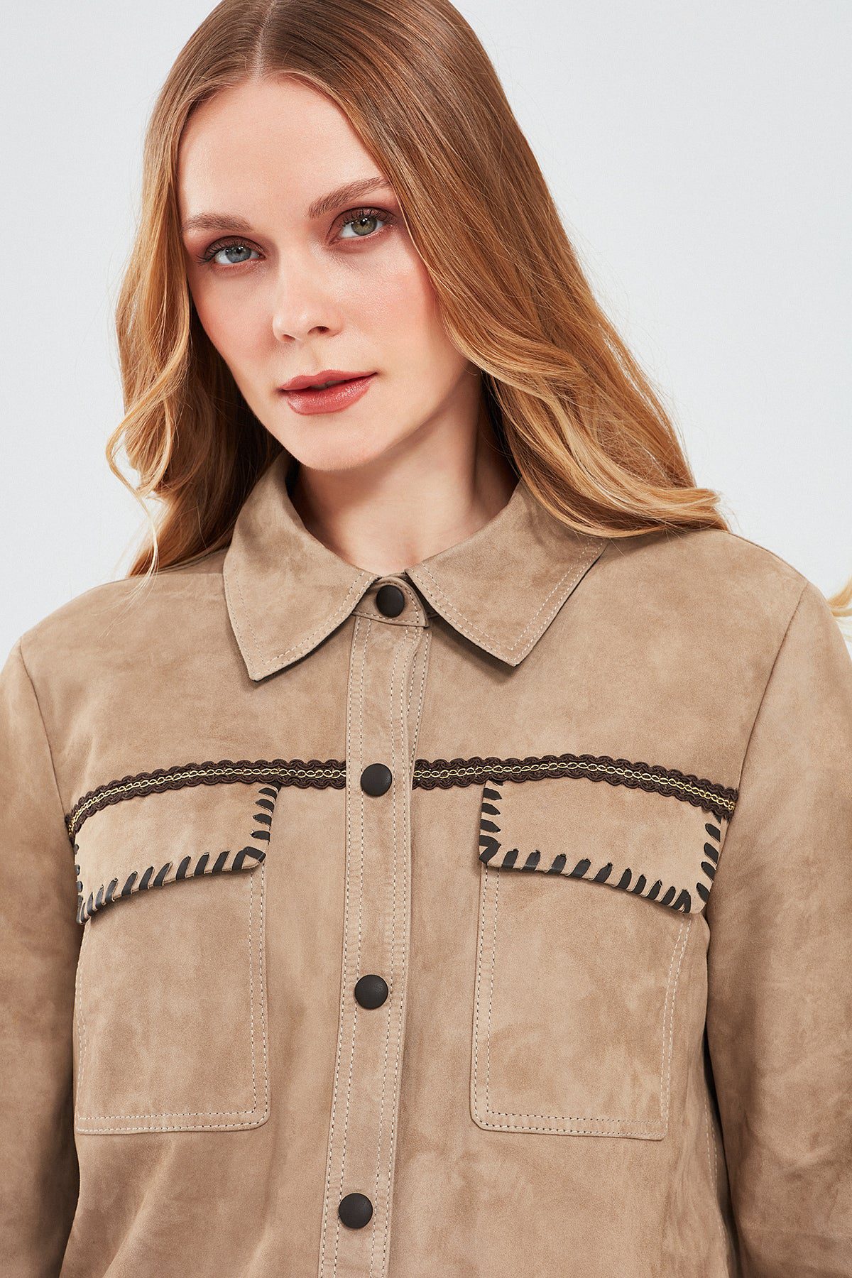 Amalfi Kadın Bej Gömlek Tarzı Süet Deri Ceket