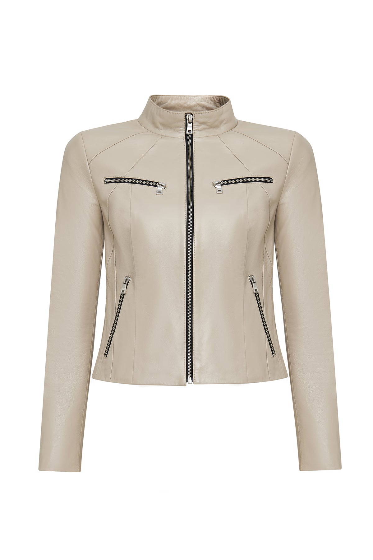 Taya Kadın Bej Kısa Deri Ceket