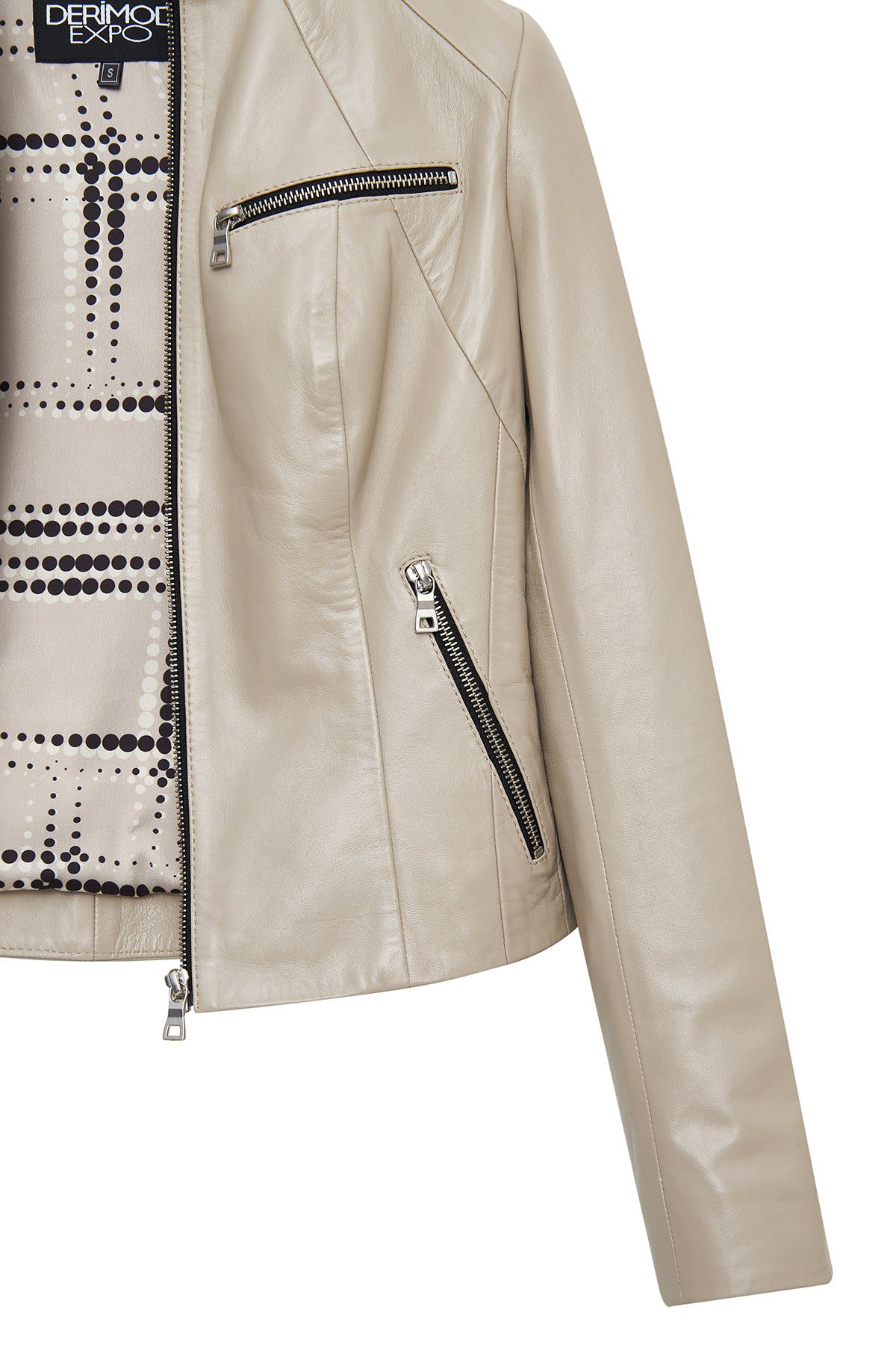 کت چرمی زنانه بژ کوتاه Taya دری مد