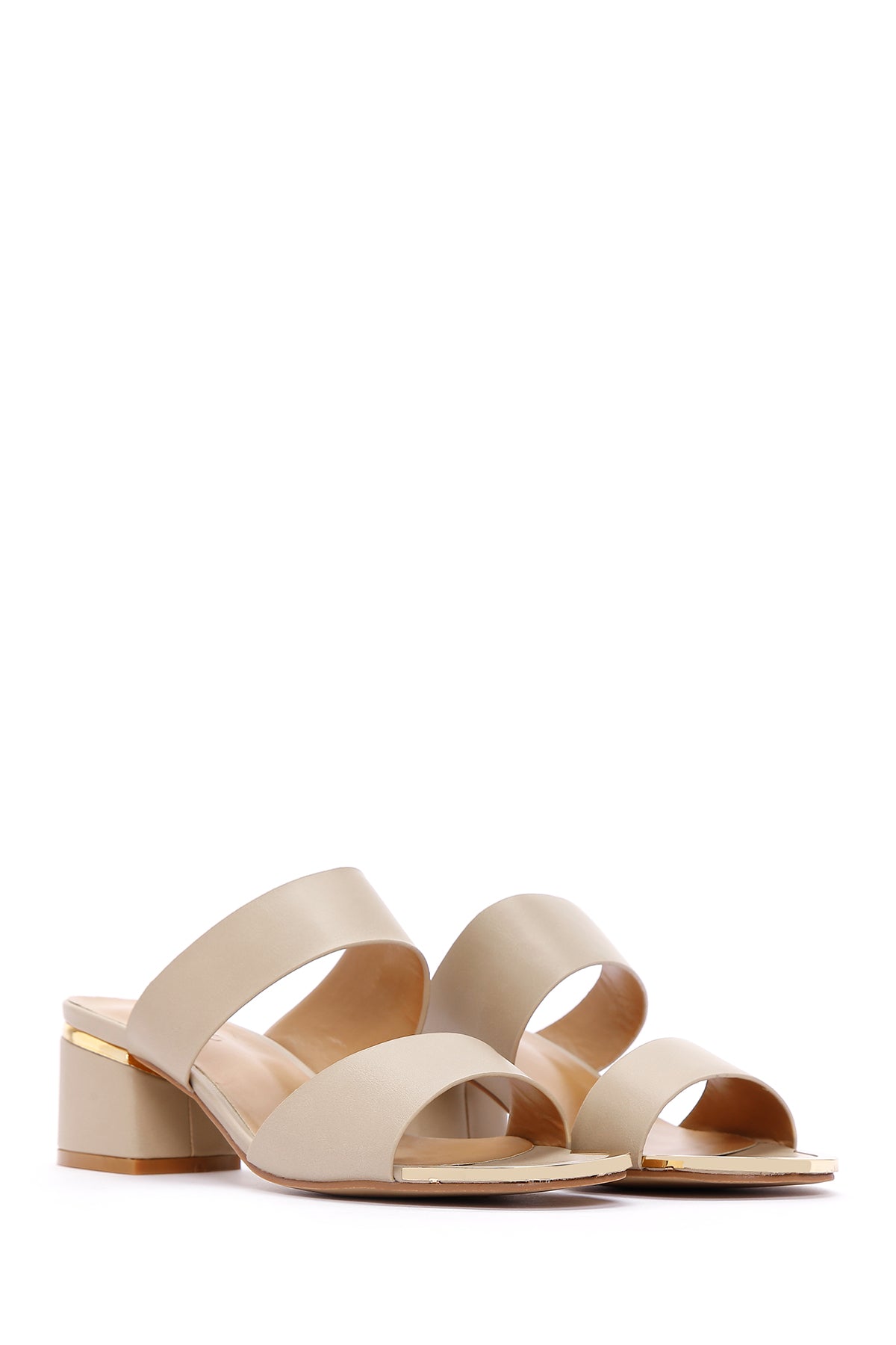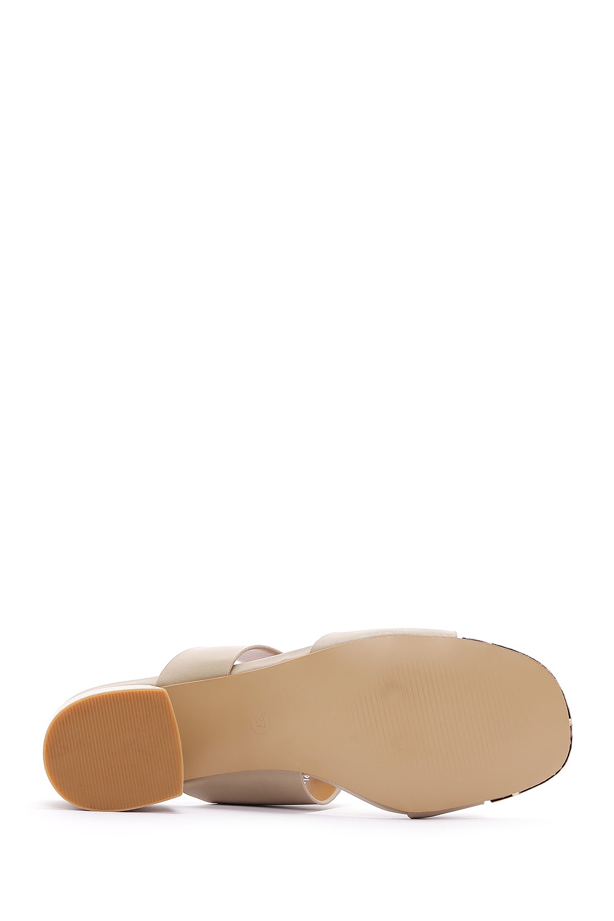 Kadın Bej Kısa Kalın Topuklu Terlik