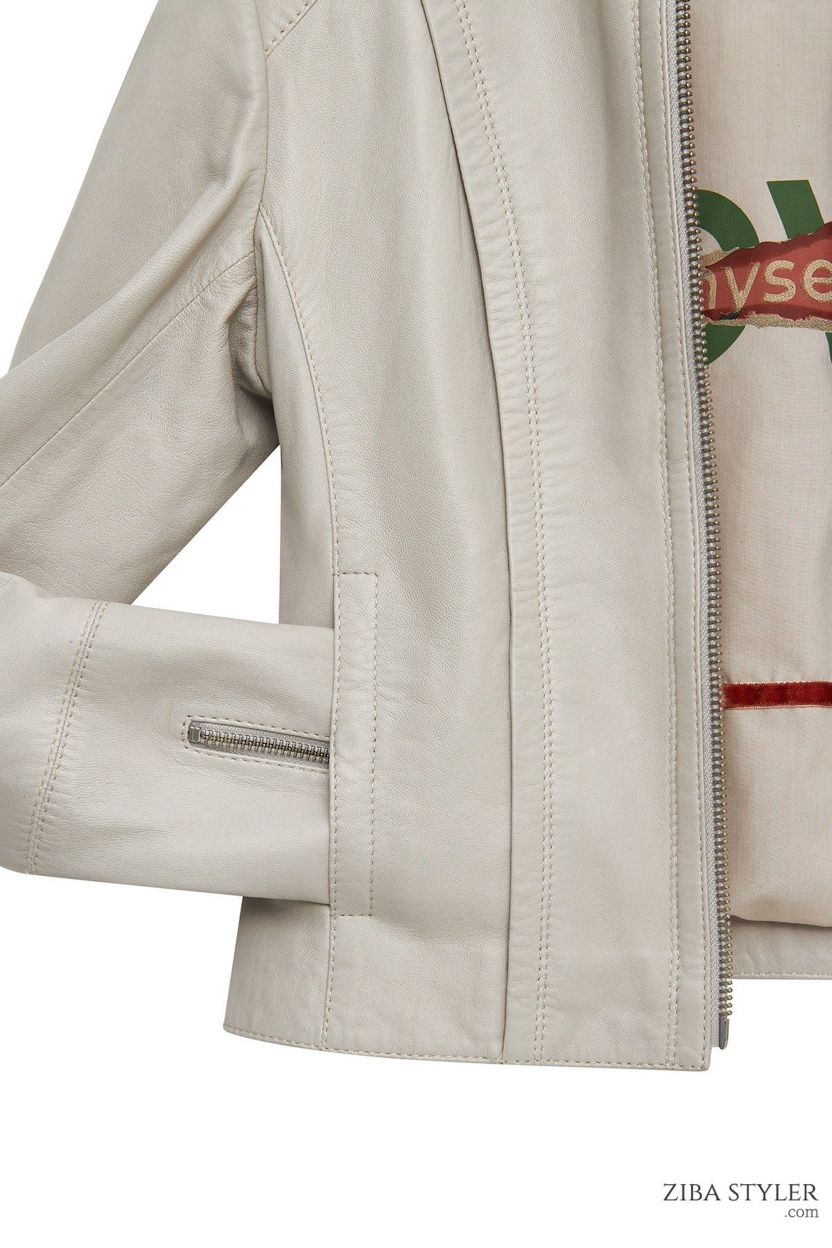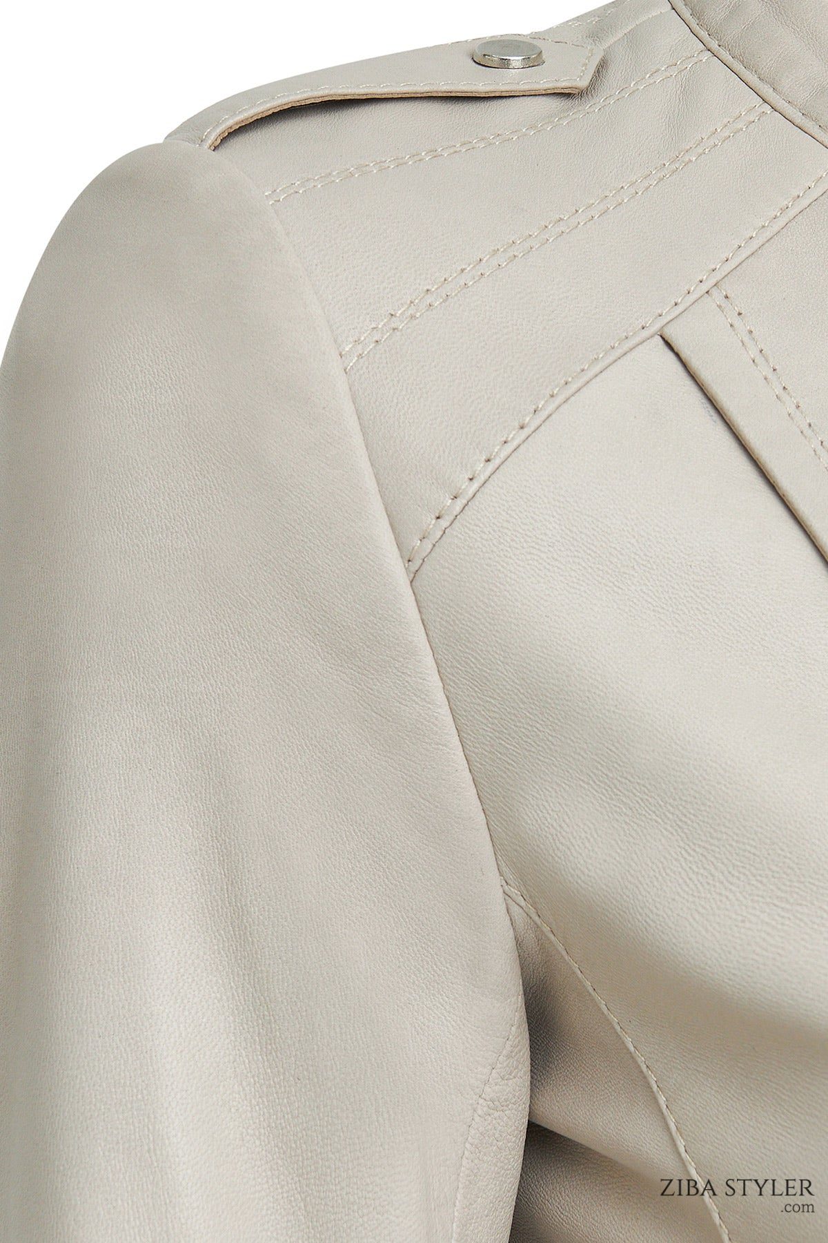 کت چرمی زنانه بژ کوتاه جذب Cherie دری مد