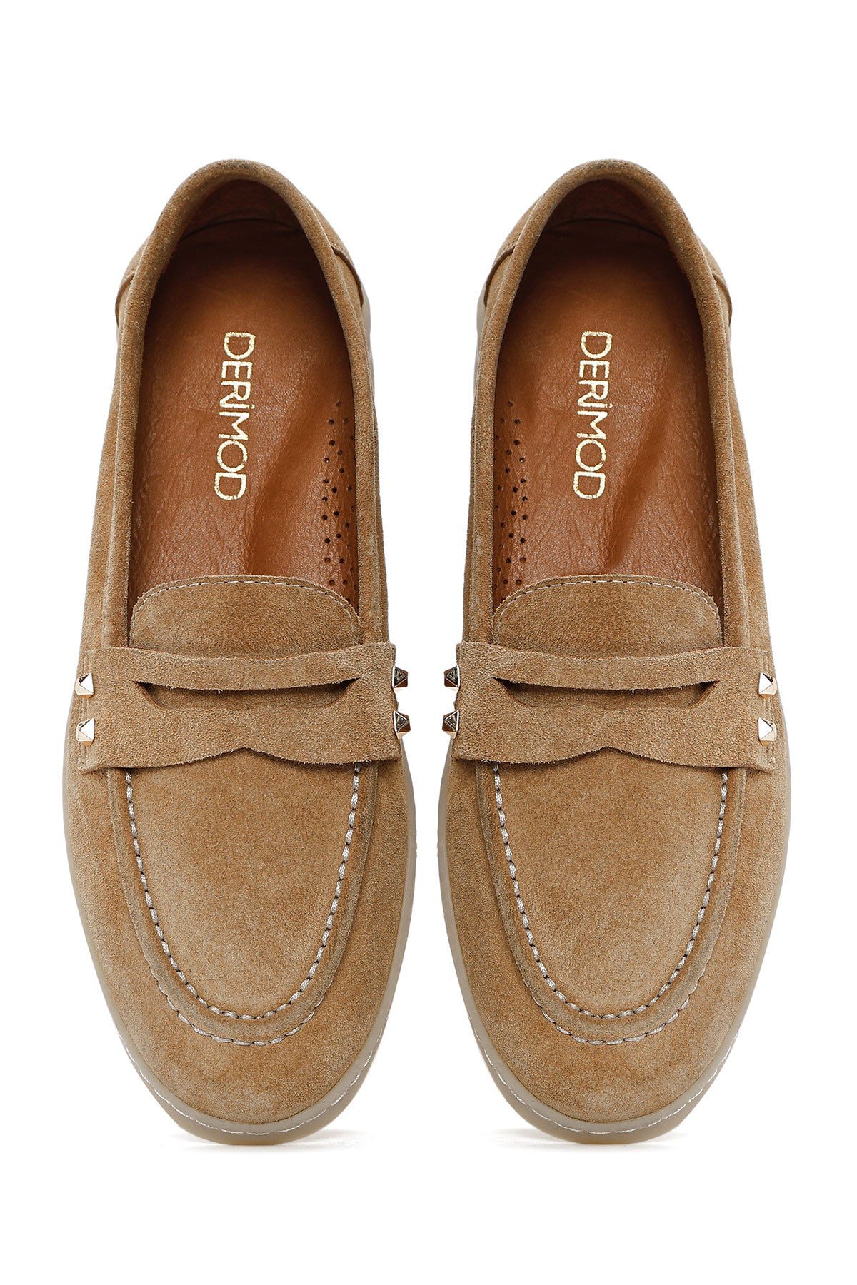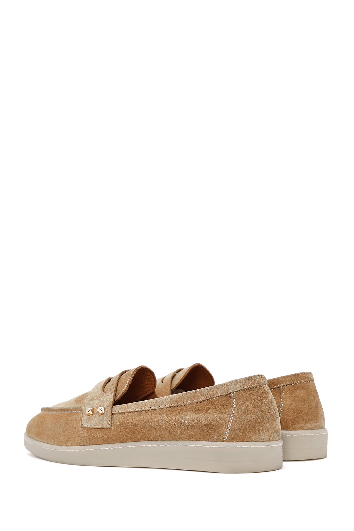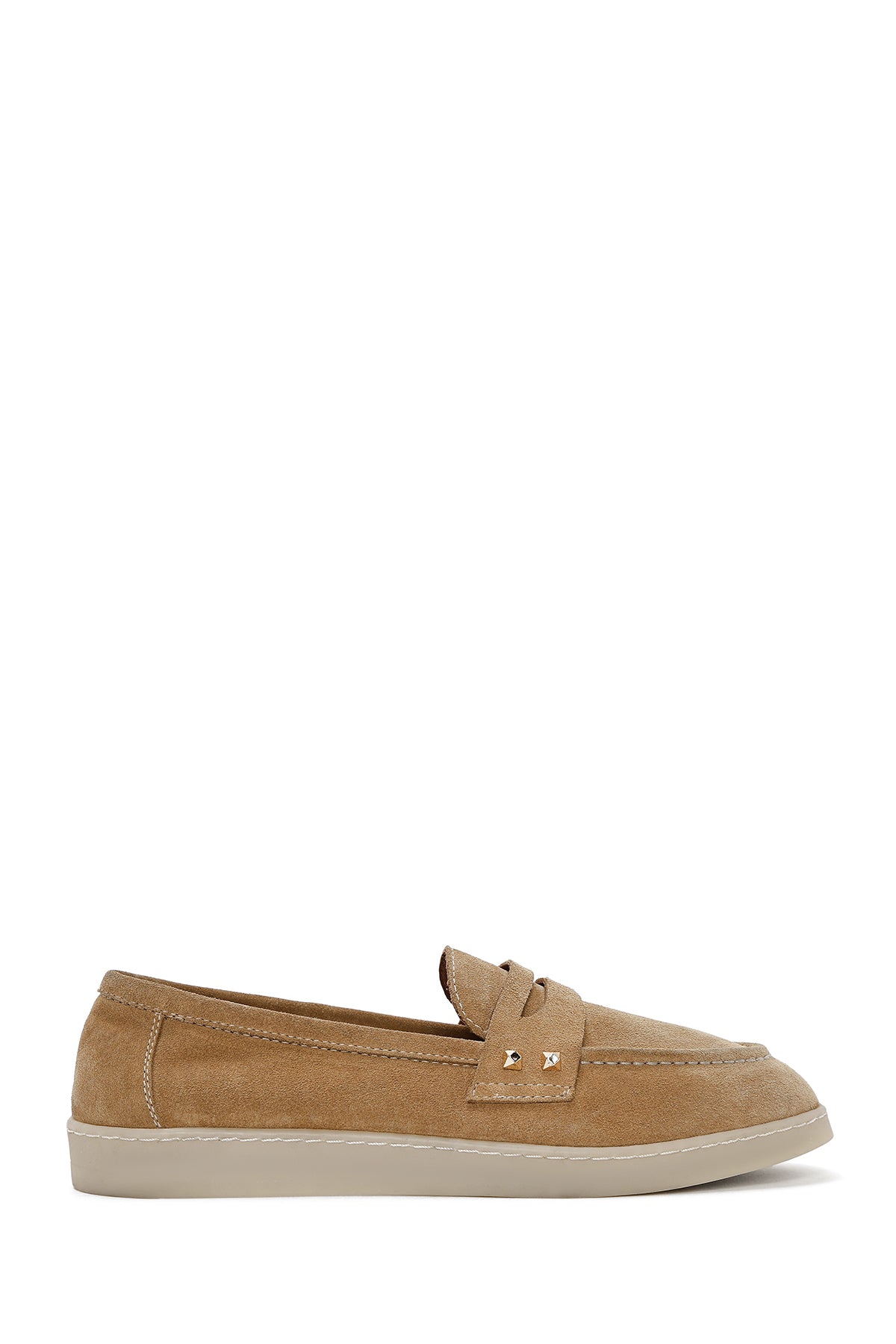Kadın Bej Taş Detaylı Süet Deri Loafer